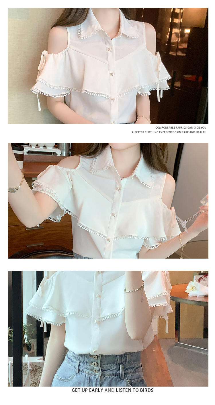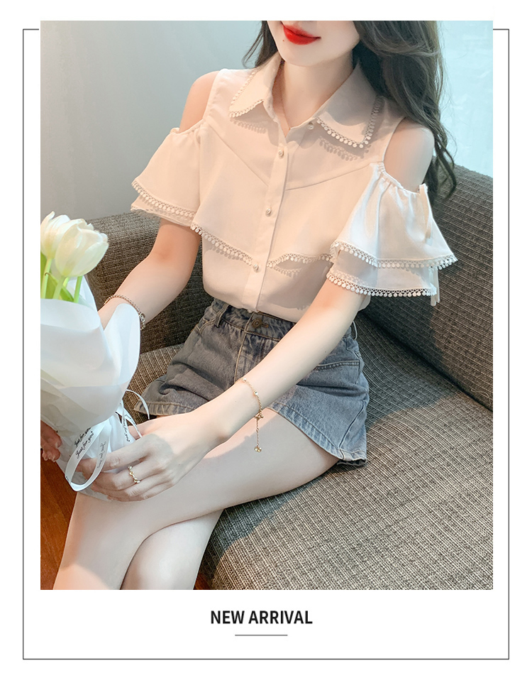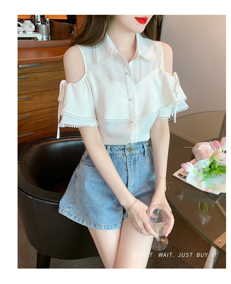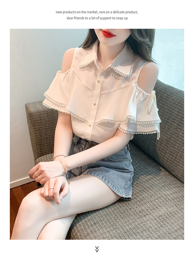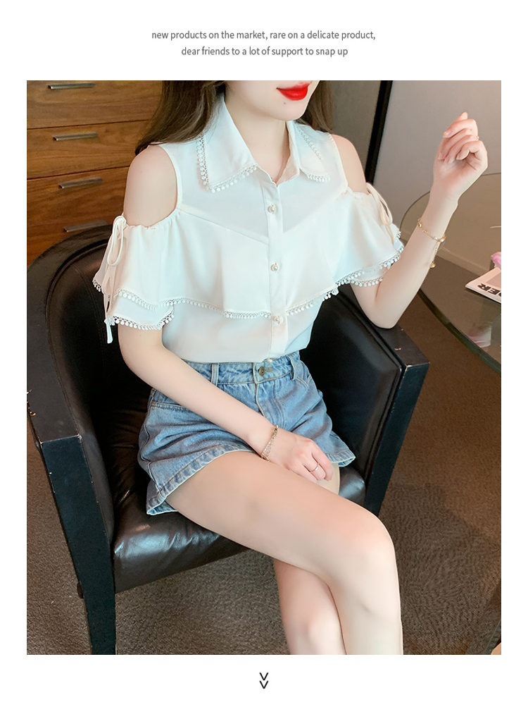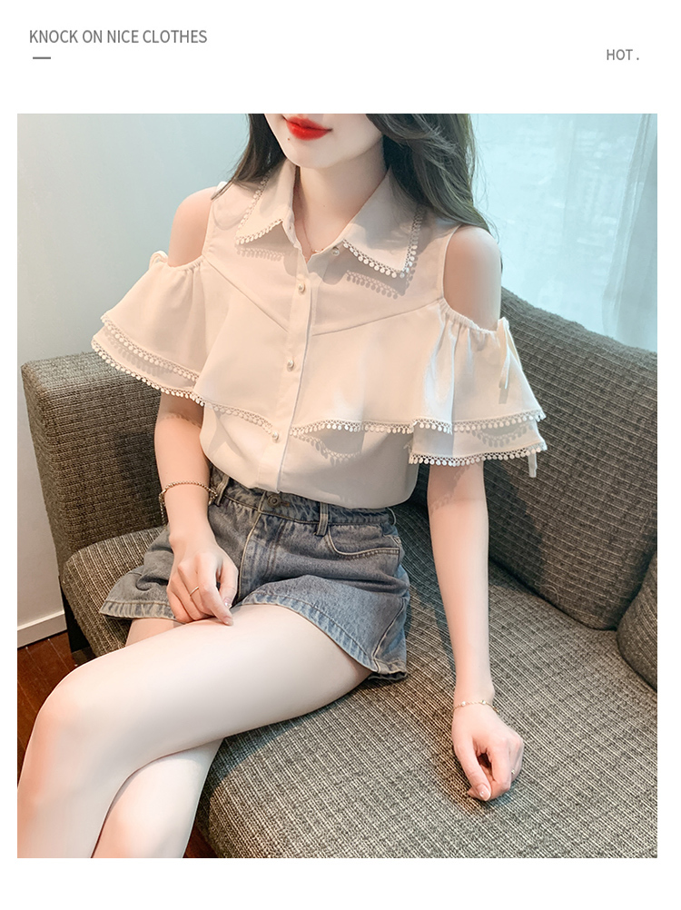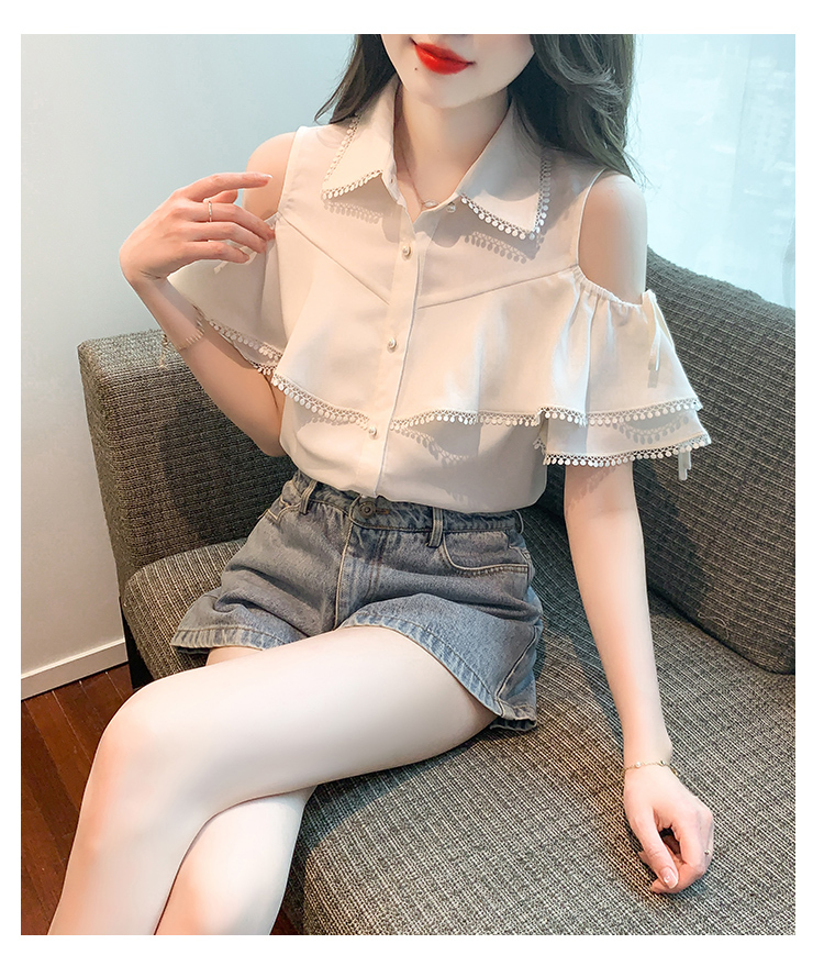 限量特惠|氣質花邊翻領露肩荷葉邊雪紡衫(05H3628)