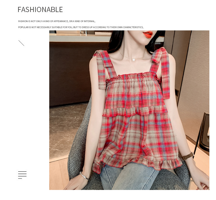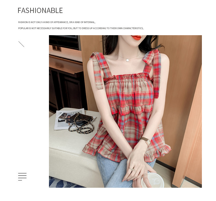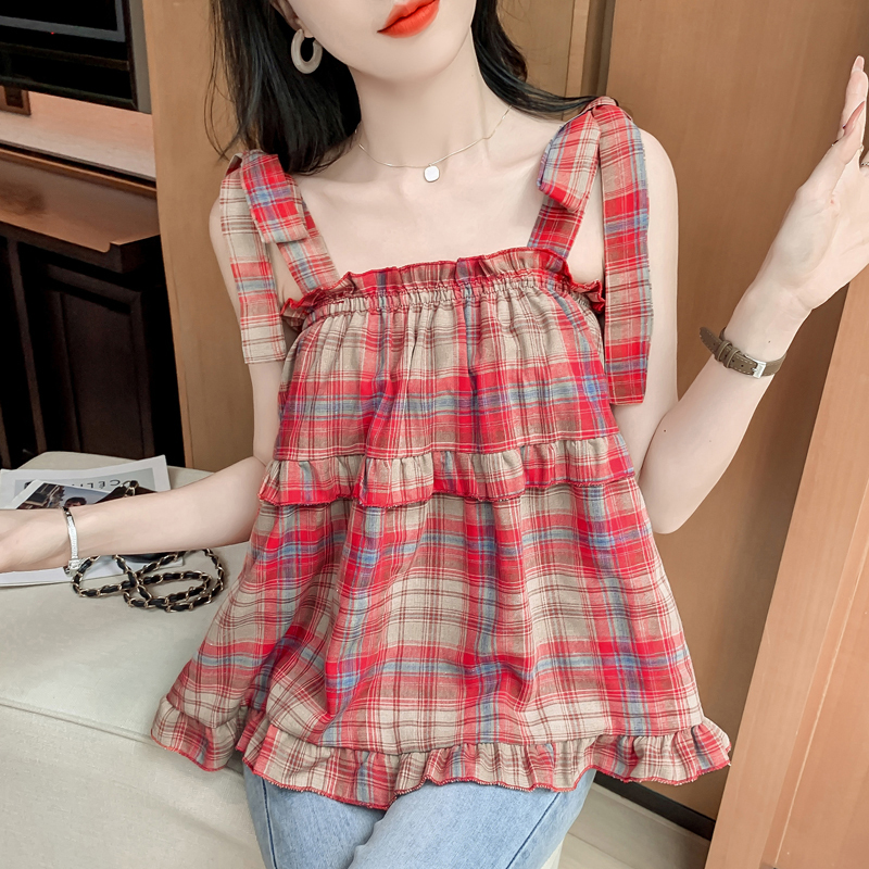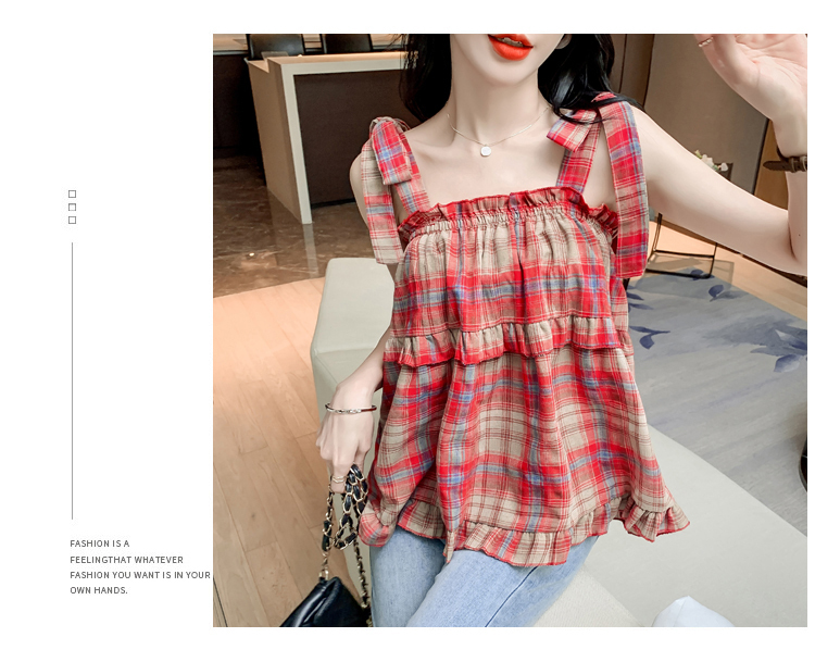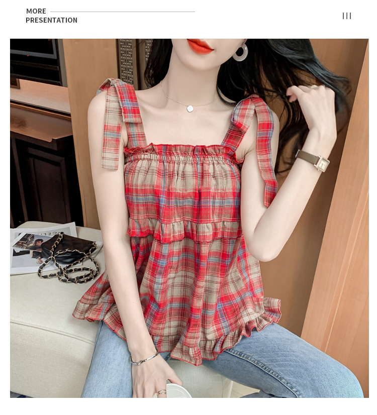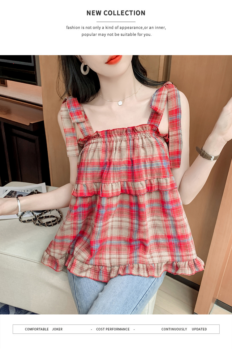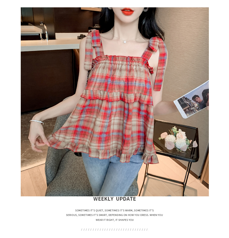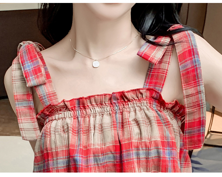 限量特惠|清新甜美繫帶格紋吊帶(05H3657)