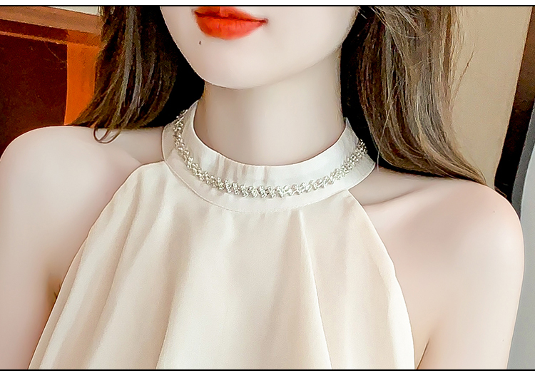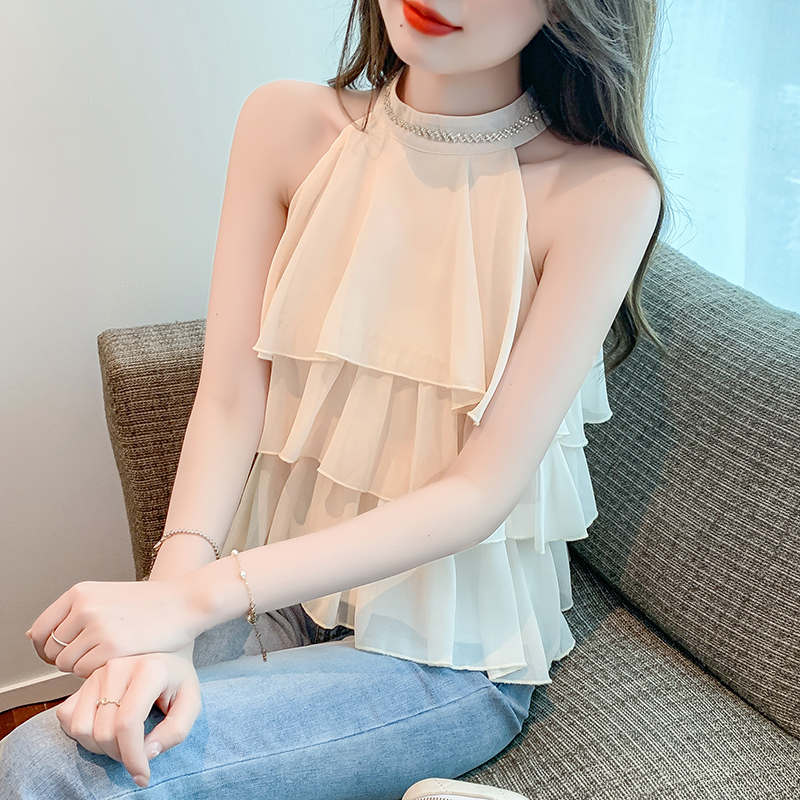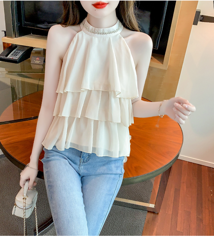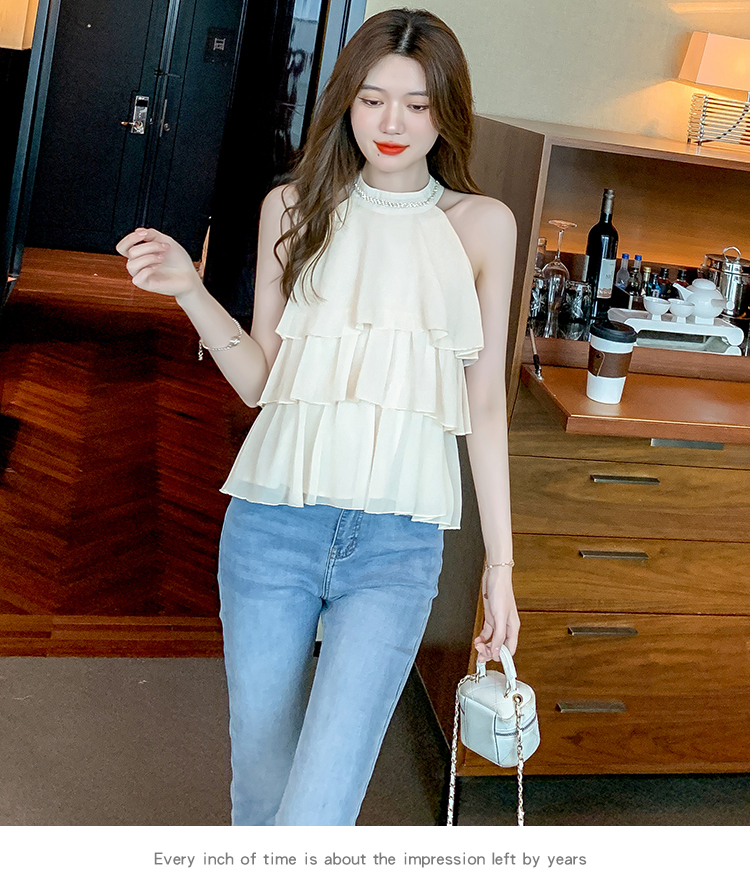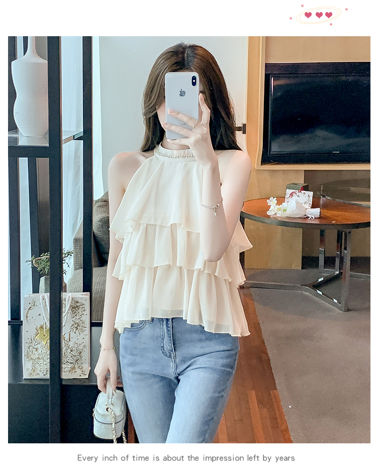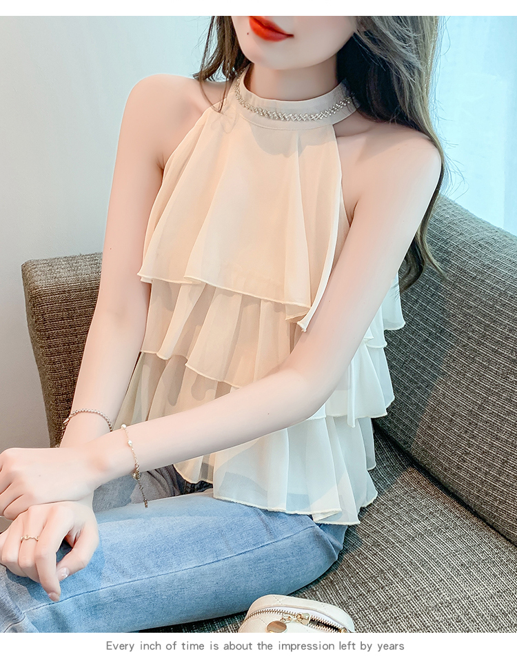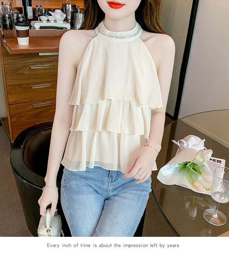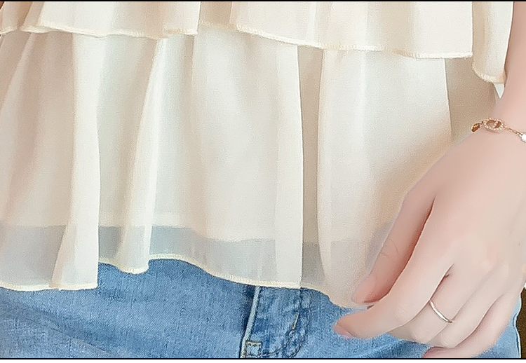 限量特惠|氣質荷葉邊掛脖露肩雪紡衫(05H3660)