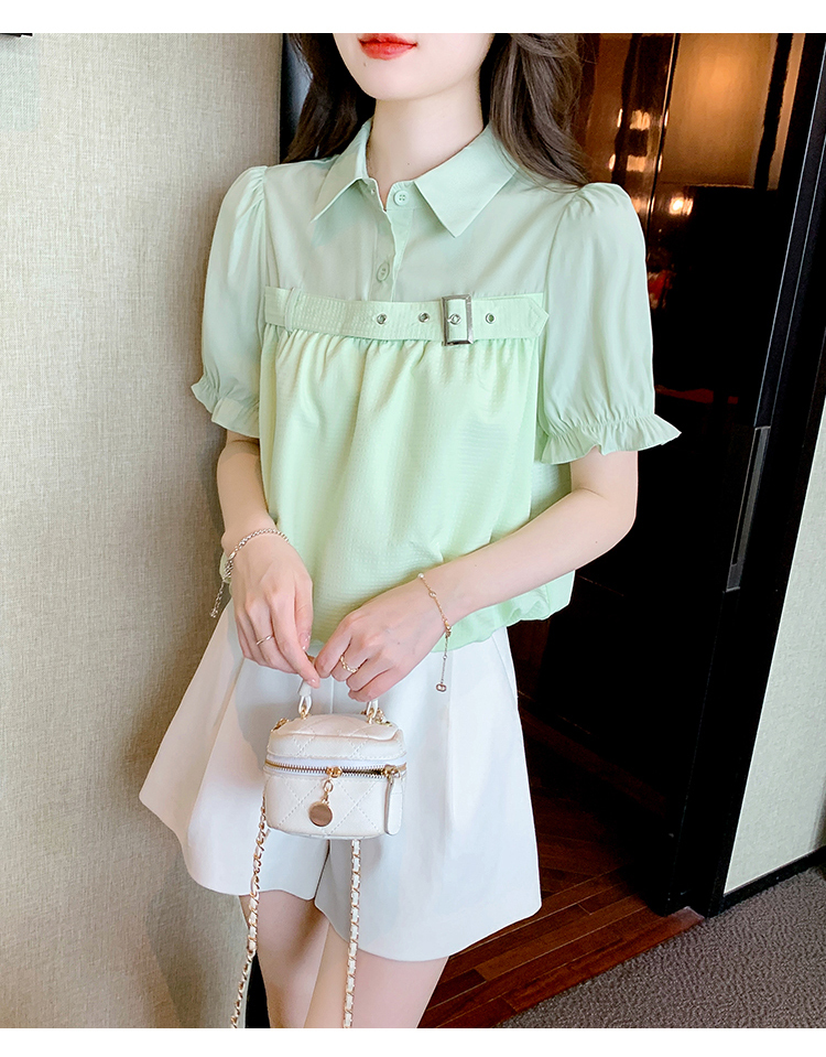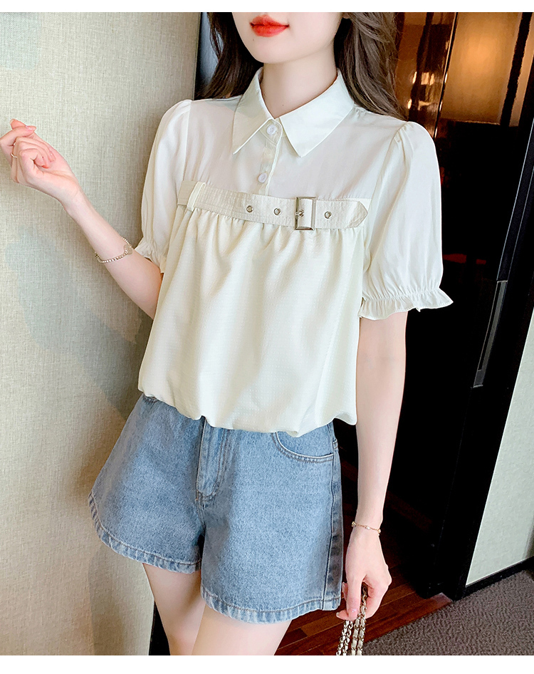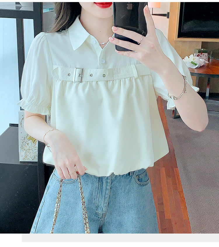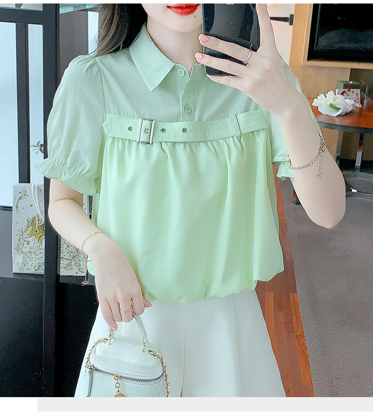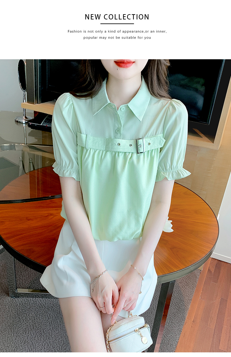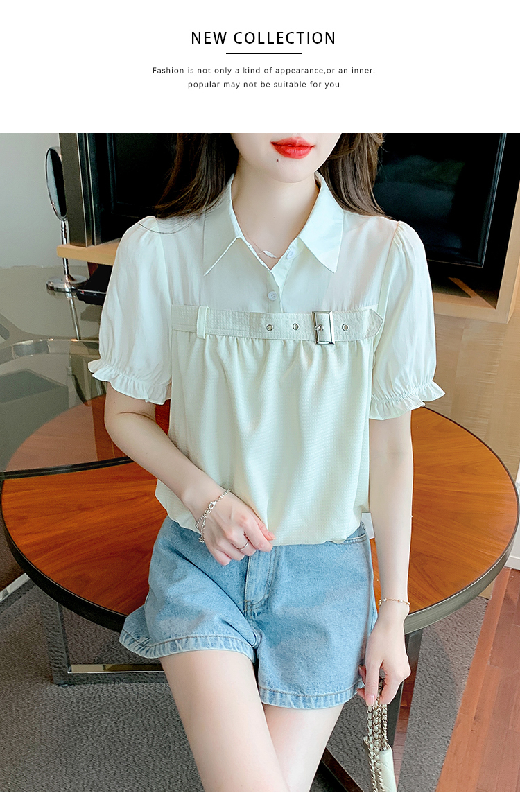 限量特惠|氣質翻領裝飾扣雪紡衫-2色(05H3671)