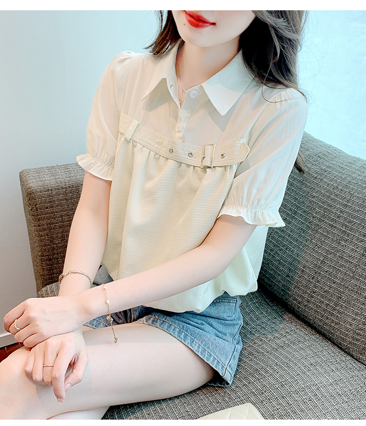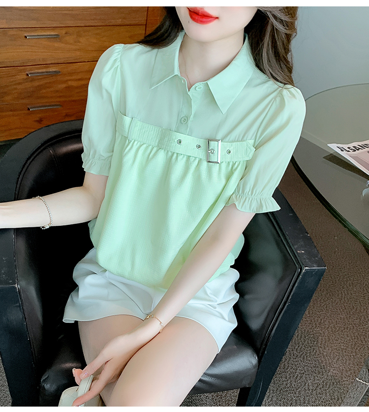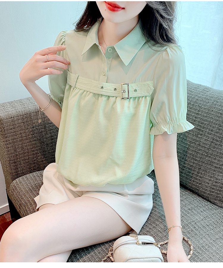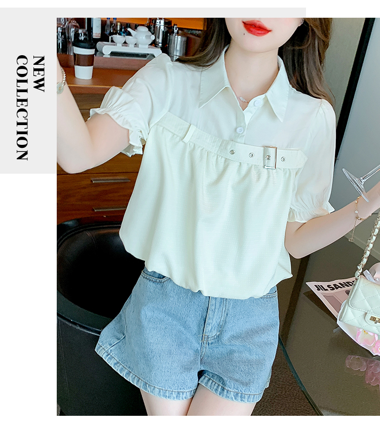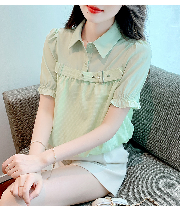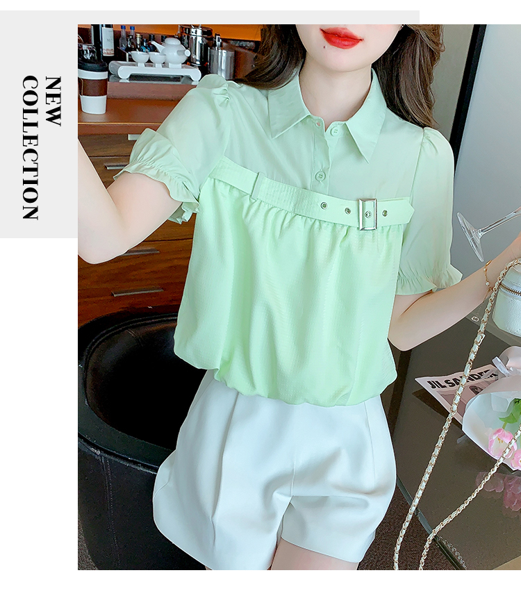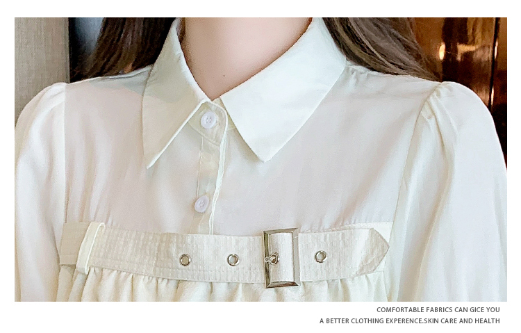 限量特惠|氣質翻領裝飾扣雪紡衫-2色(05H3671)