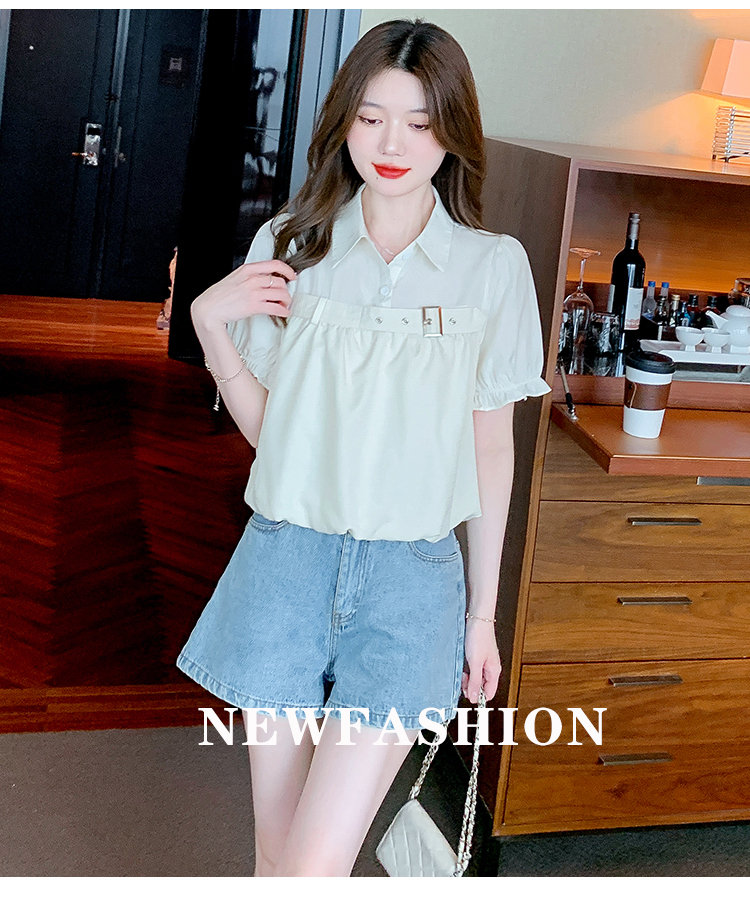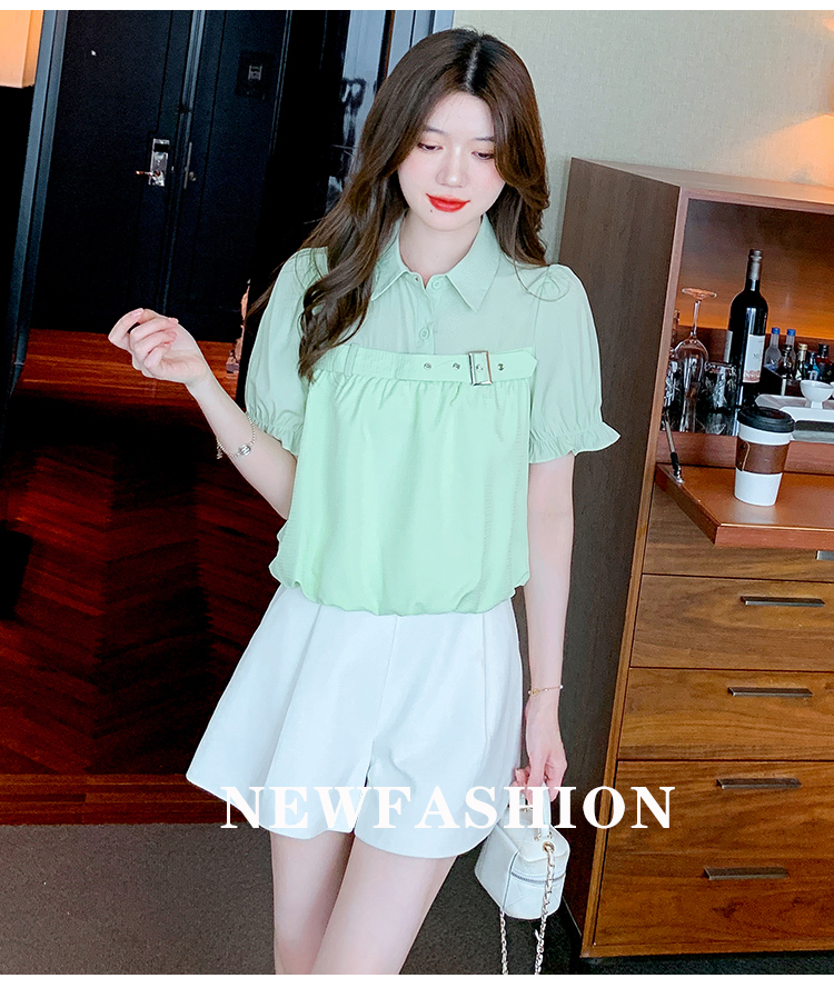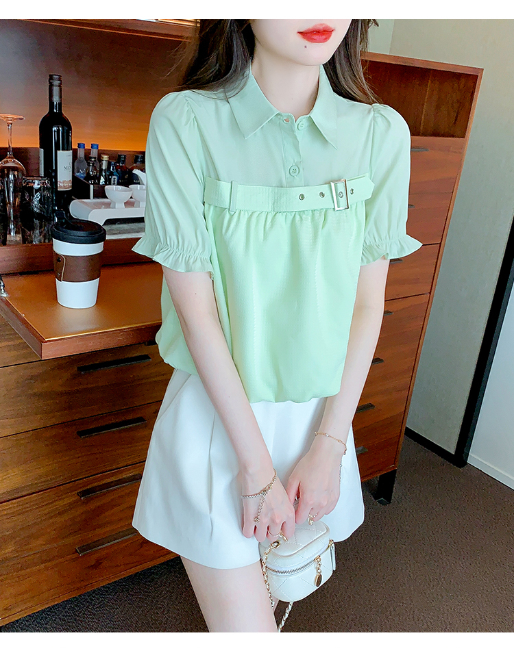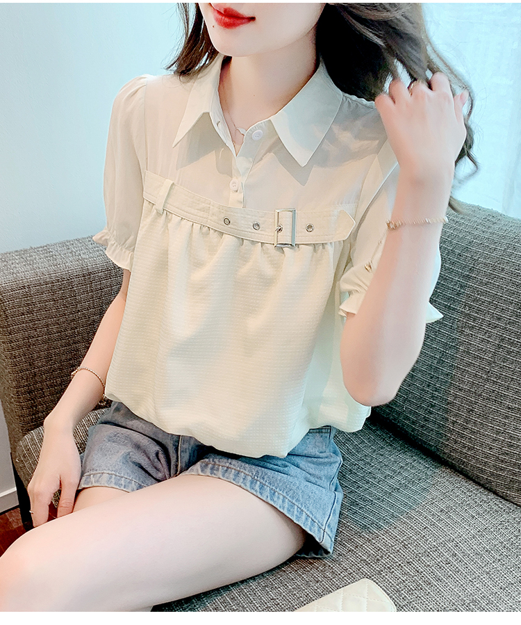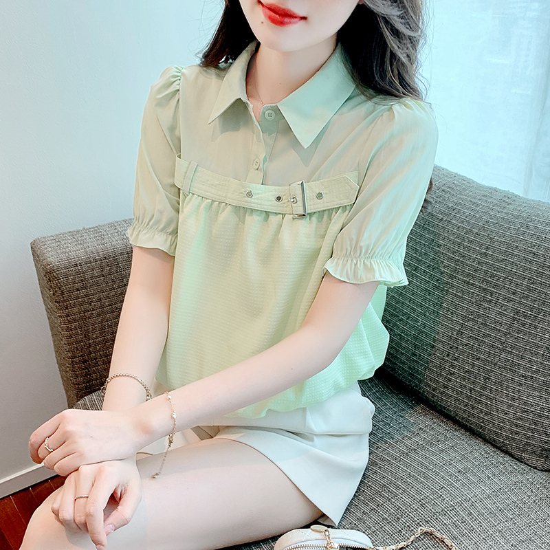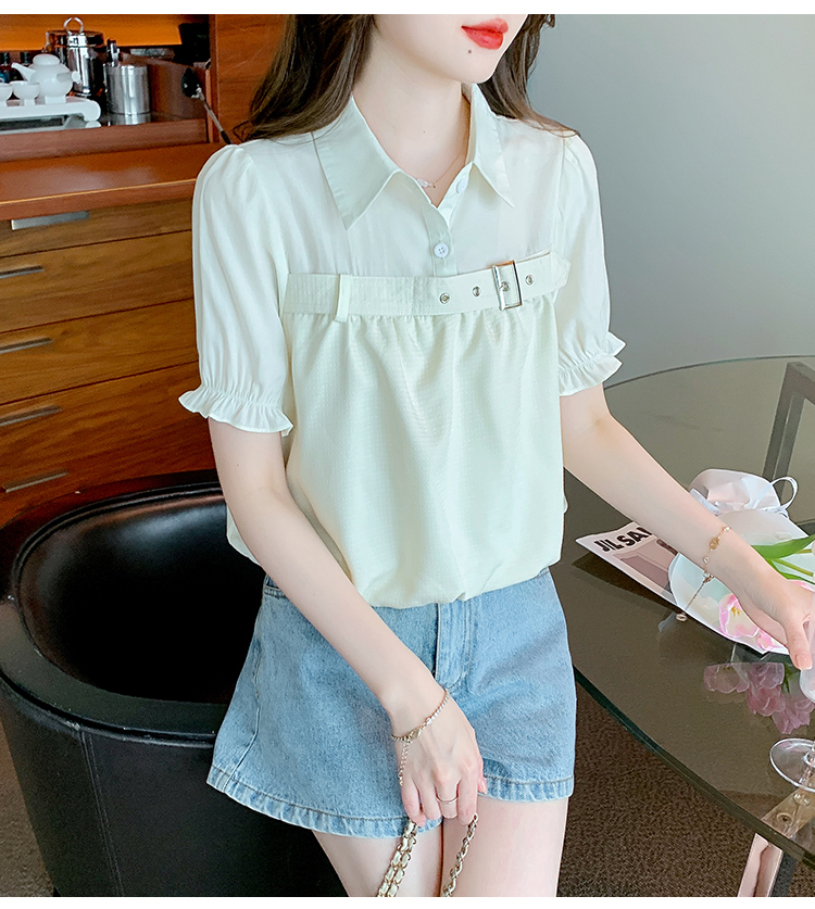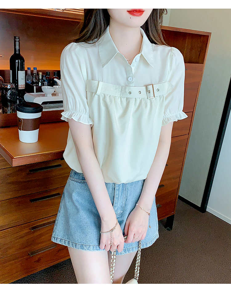 限量特惠|氣質翻領裝飾扣雪紡衫-2色(05H3671)