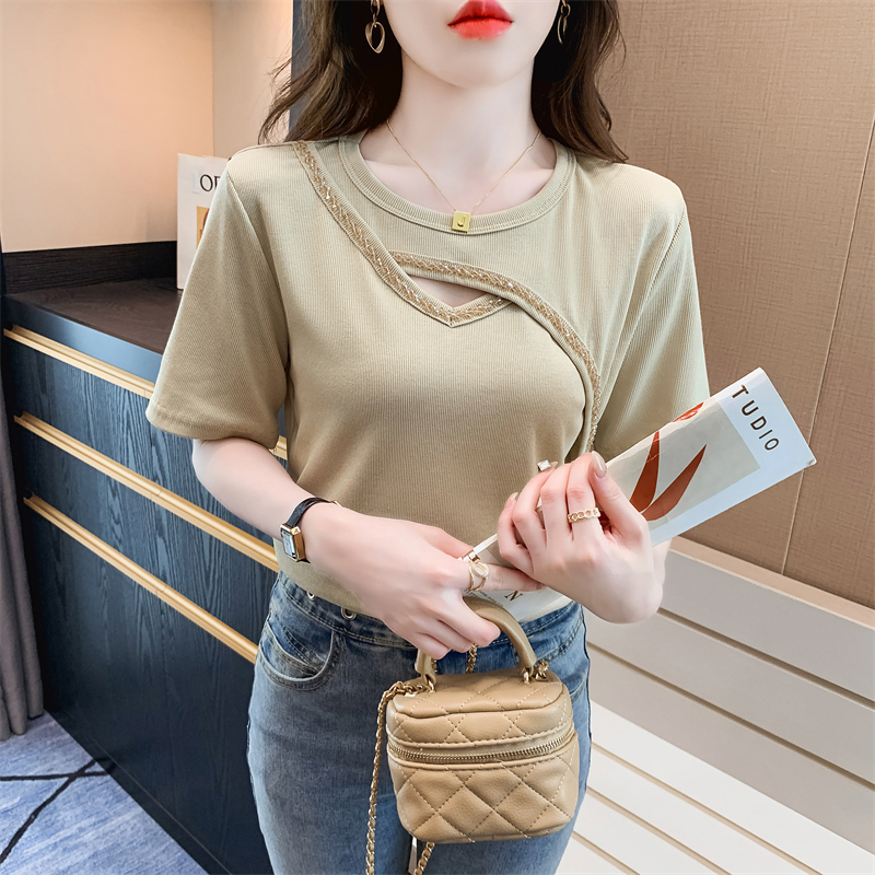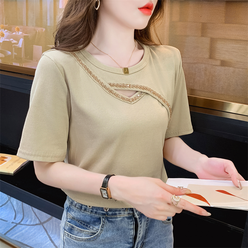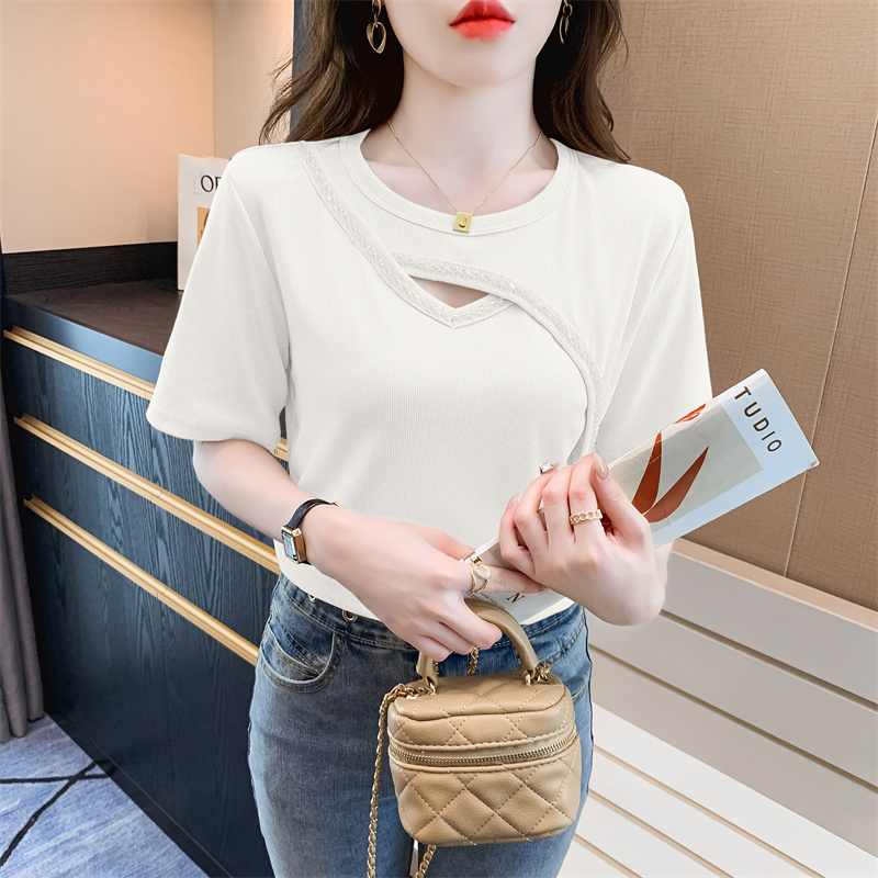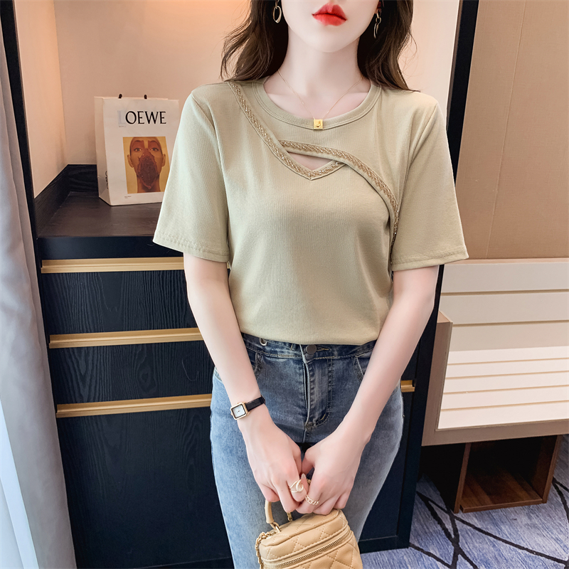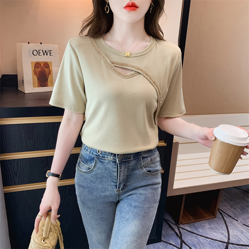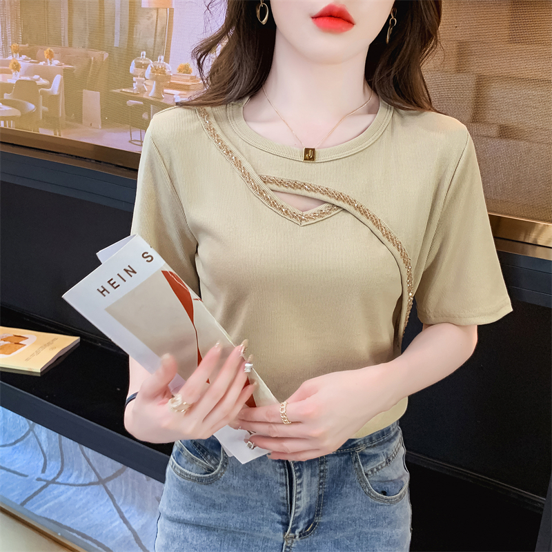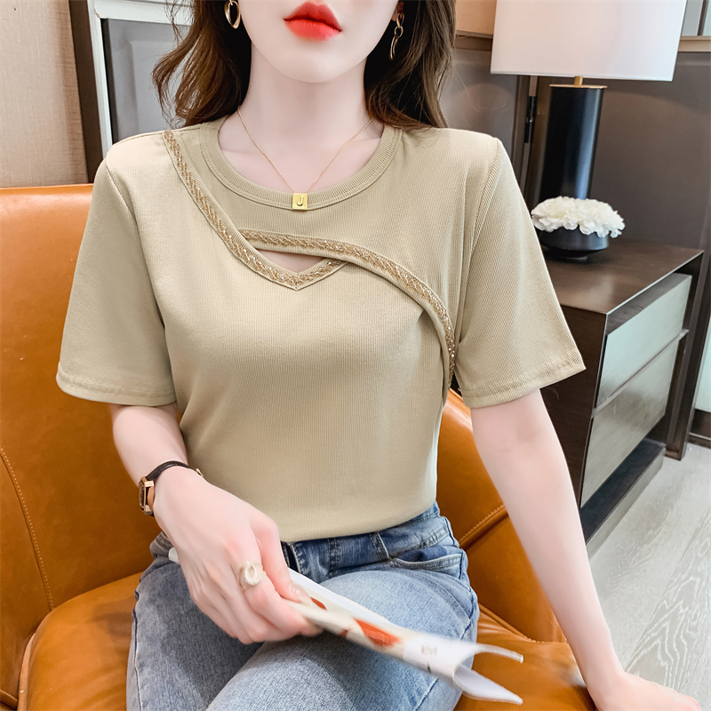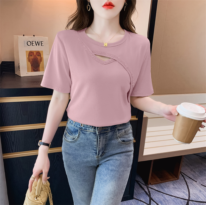 限量特惠|微性感重工鑲鑽鏤空T恤-4色(05H3677)