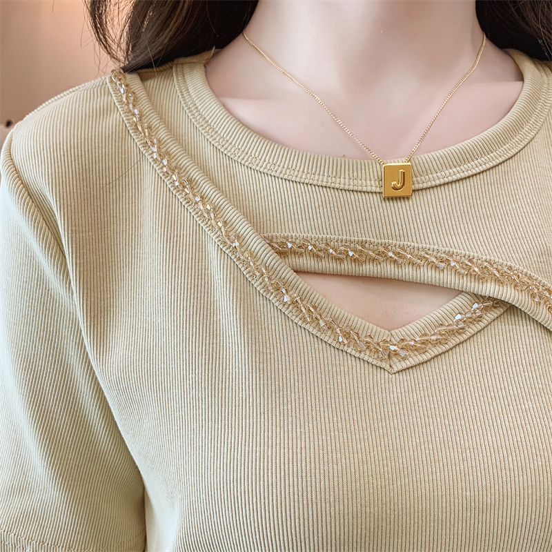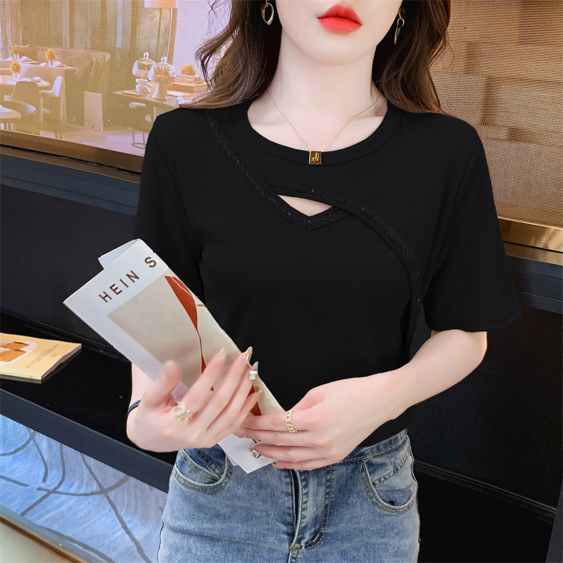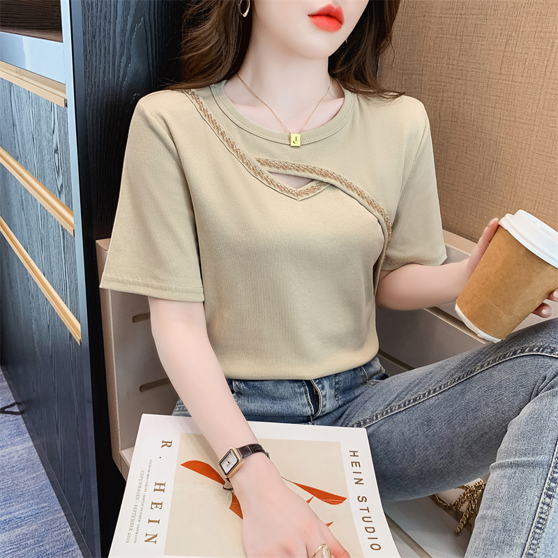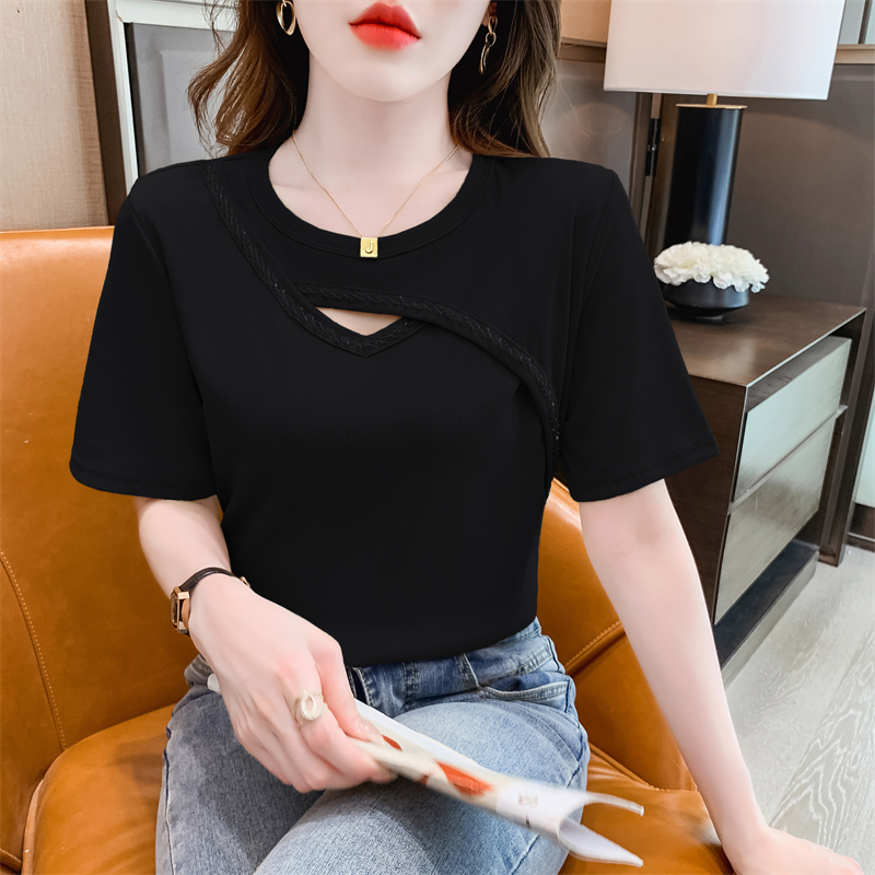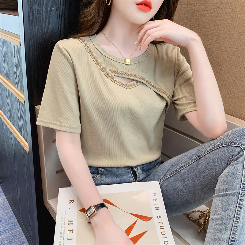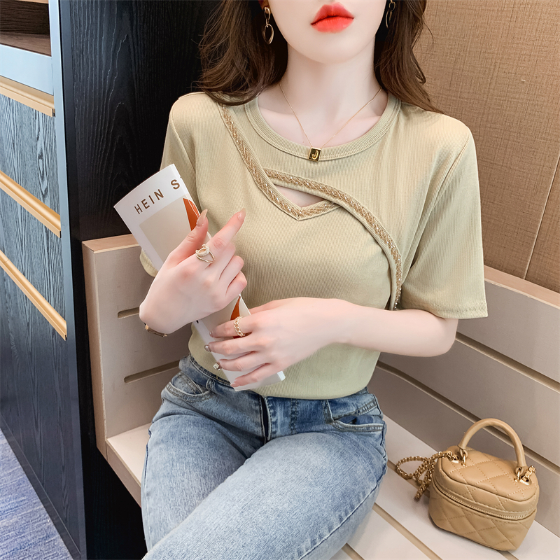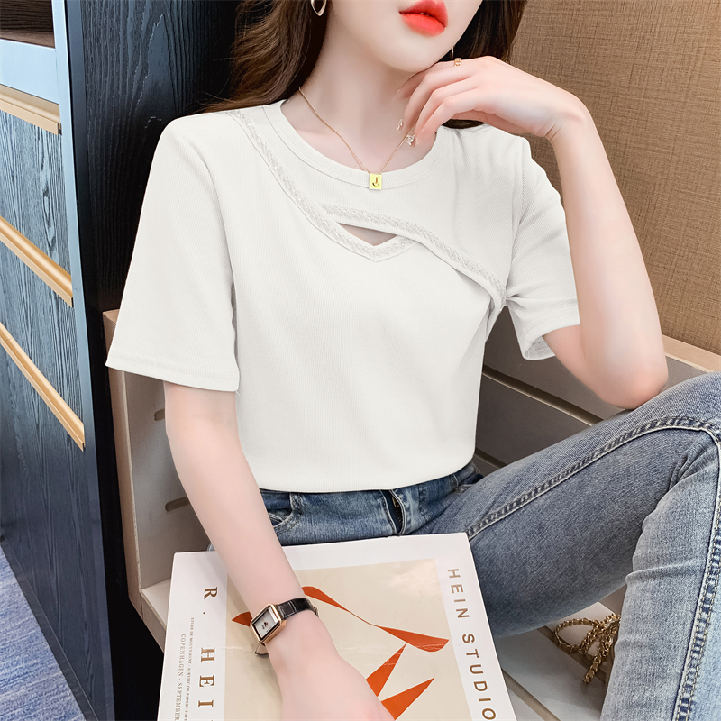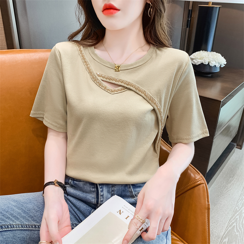 限量特惠|微性感重工鑲鑽鏤空T恤-4色(05H3677)