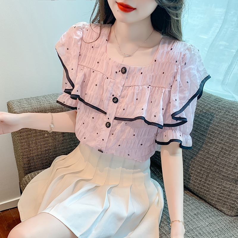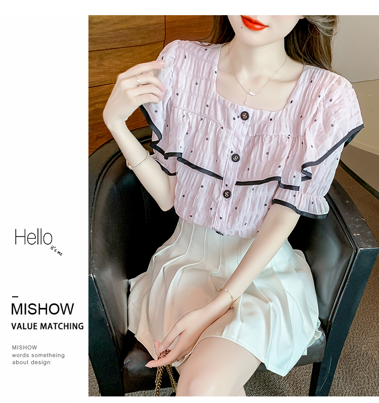 限量特惠|氣質拼接荷葉邊雪紡衫-2色(05H3700)