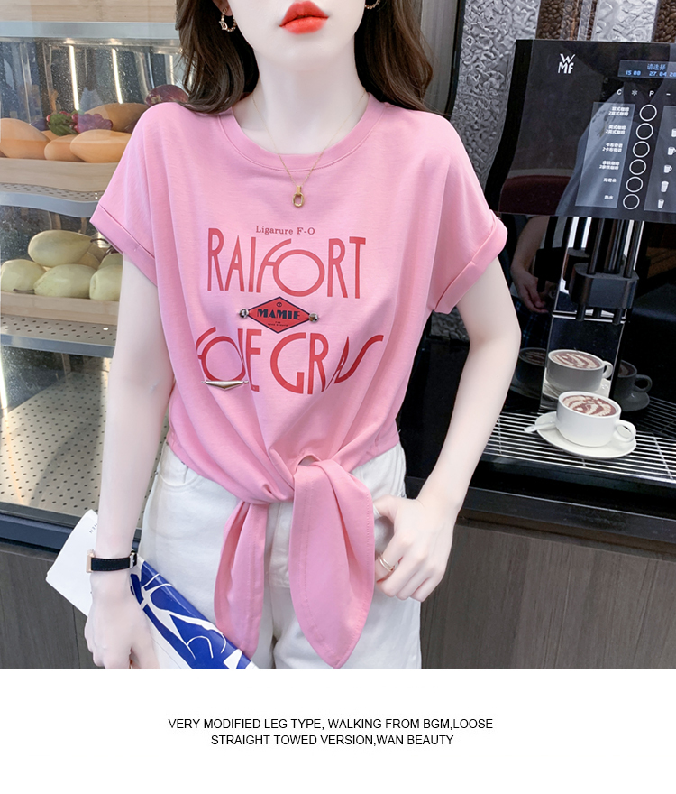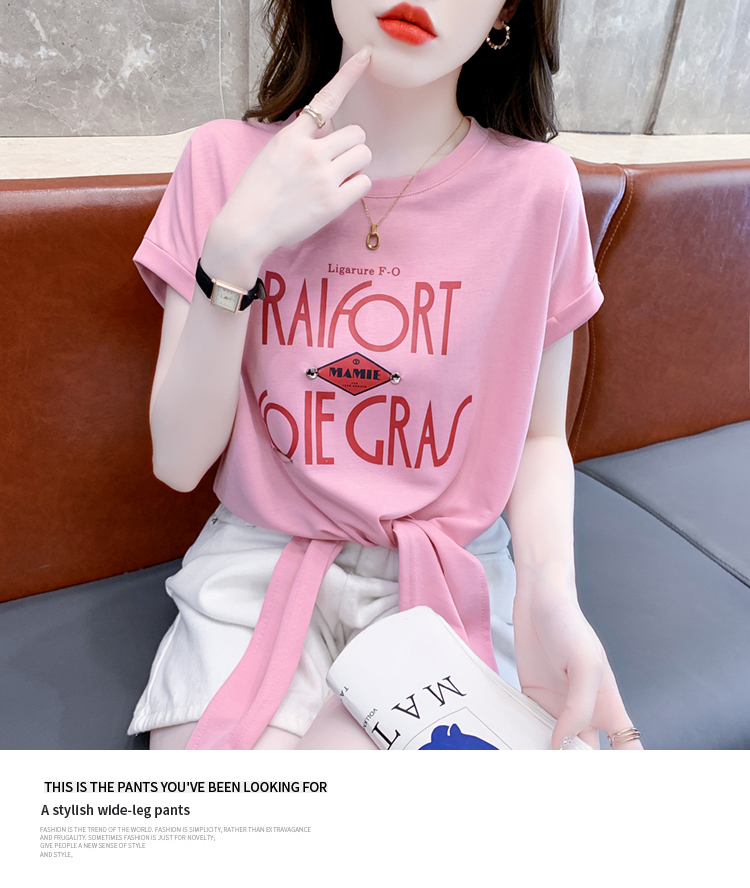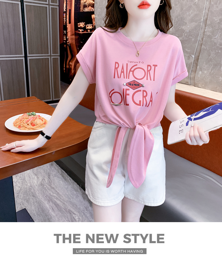 限量特惠|個性舒適字母印花繫帶T恤-2色(05H3701)