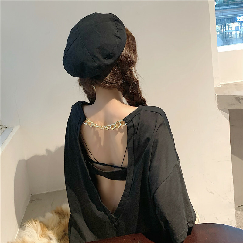 限量特惠|舒適性感後背縷空鍊條T恤-3色(05H3732)