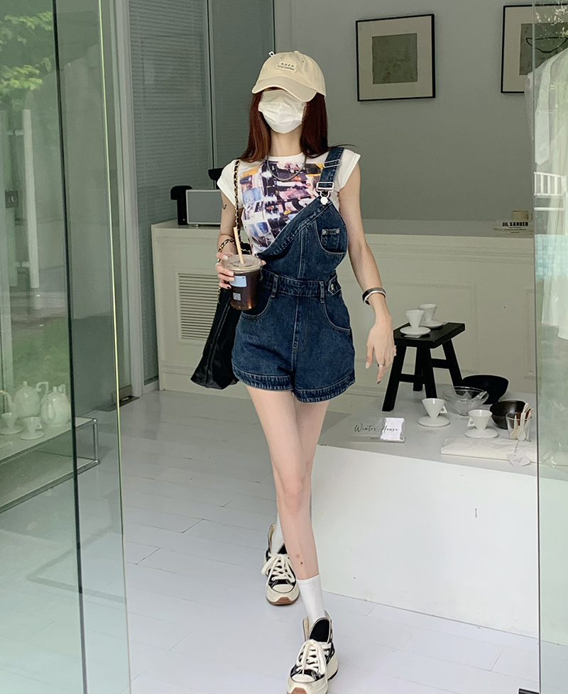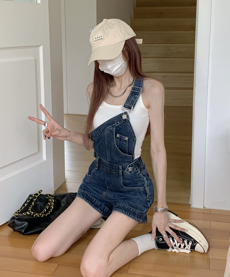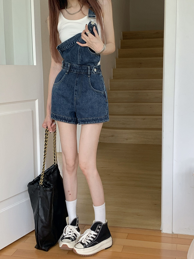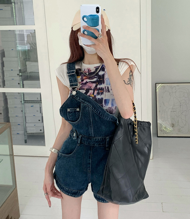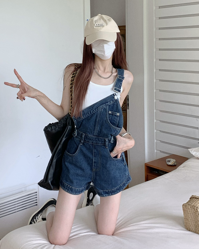 限量特惠|個性斜邊單肩帶牛仔吊帶褲(05H3736)