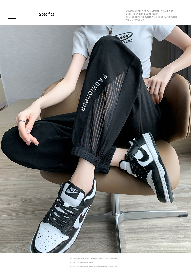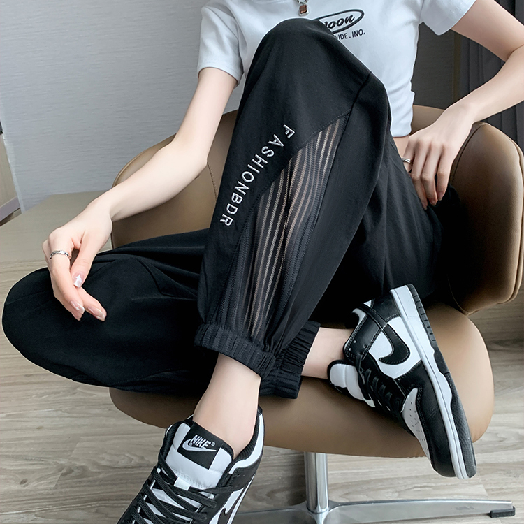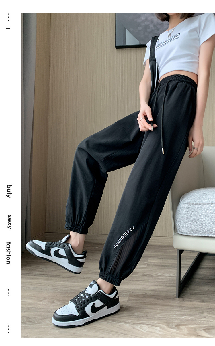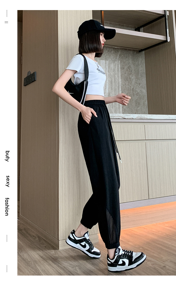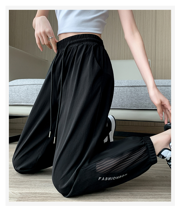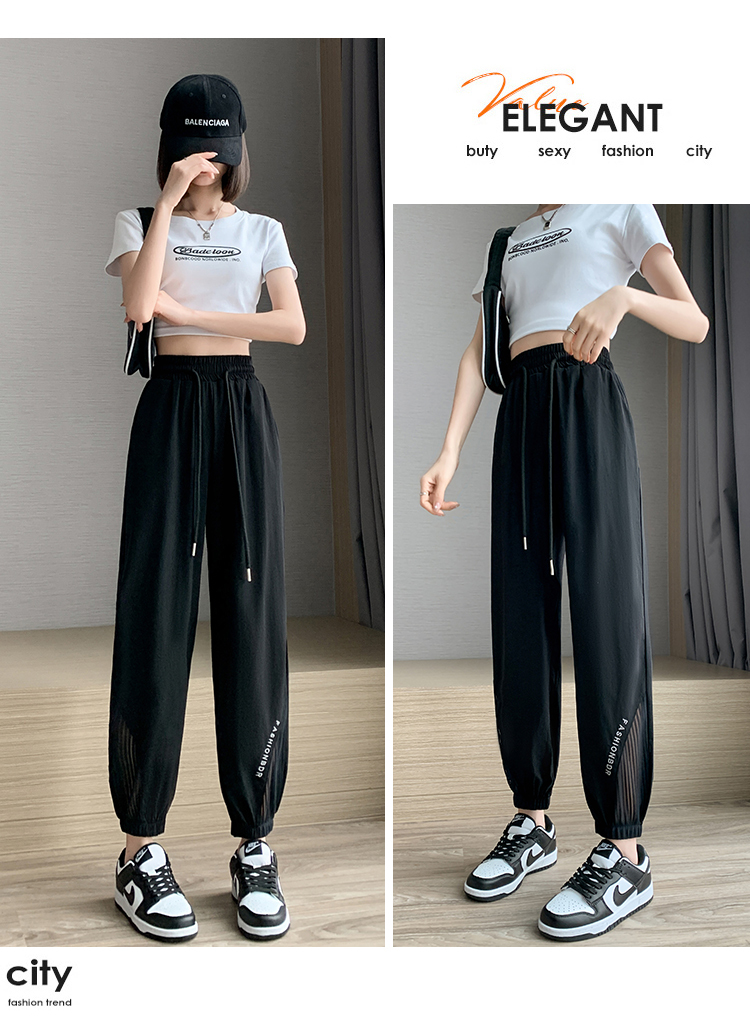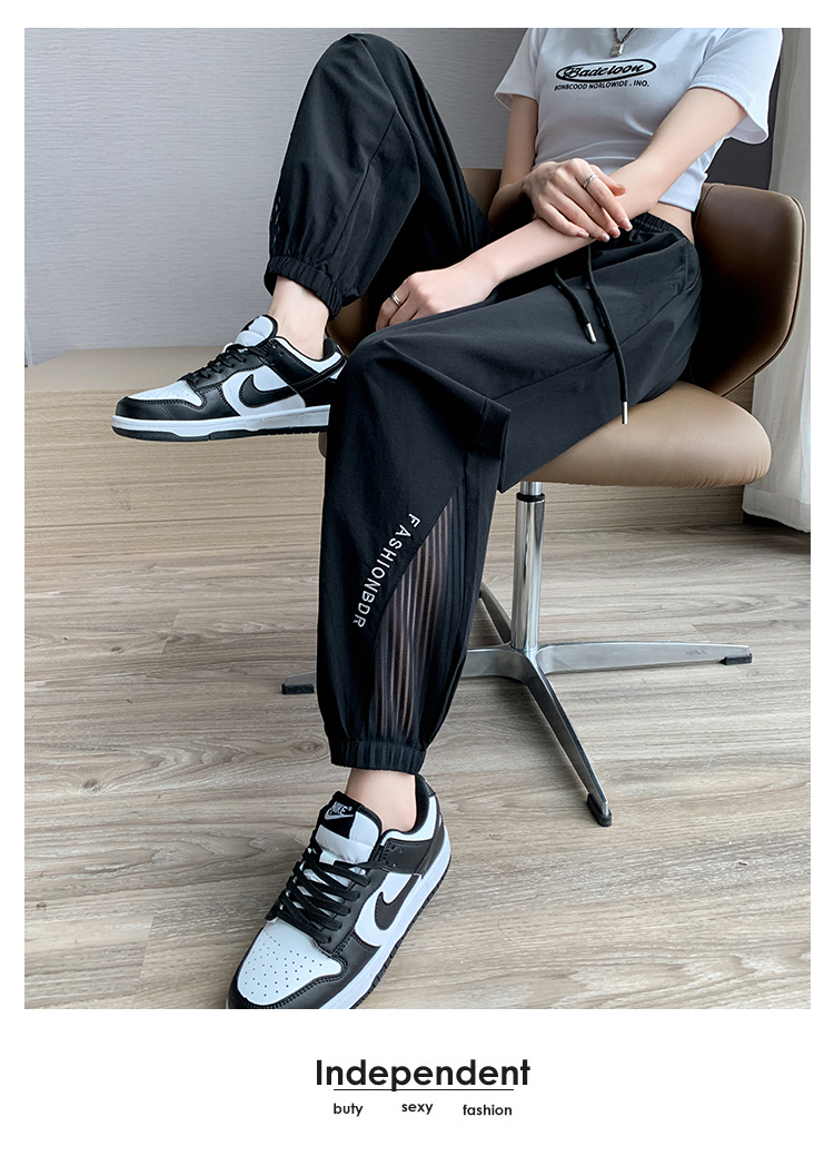 限量特惠|率性舒適網紗拼接九分束腳冰絲褲-2色(05H3750)