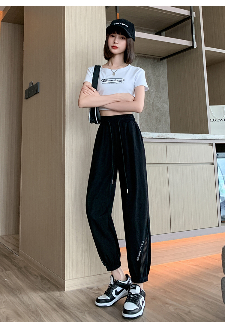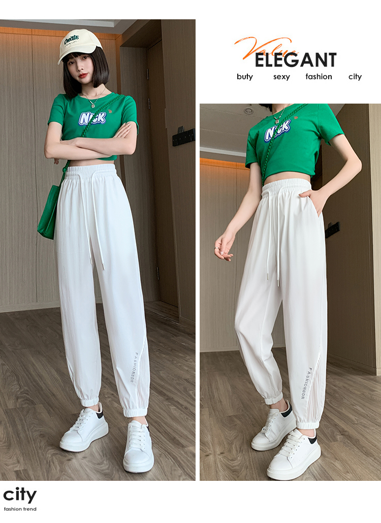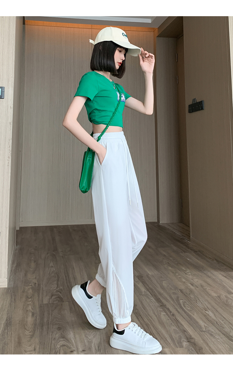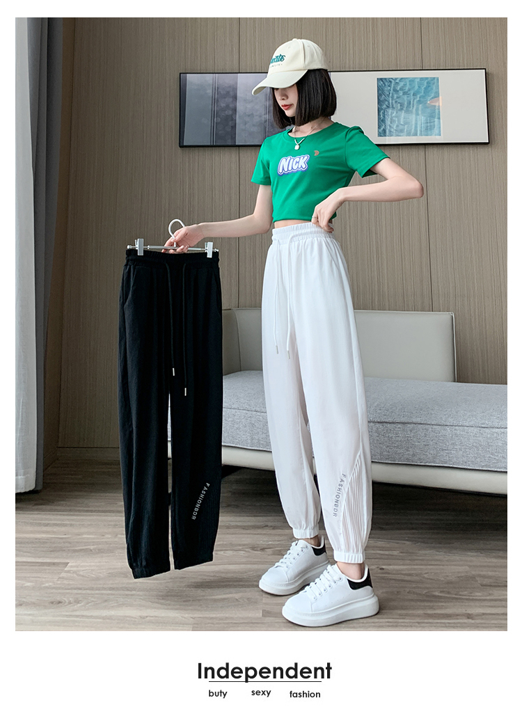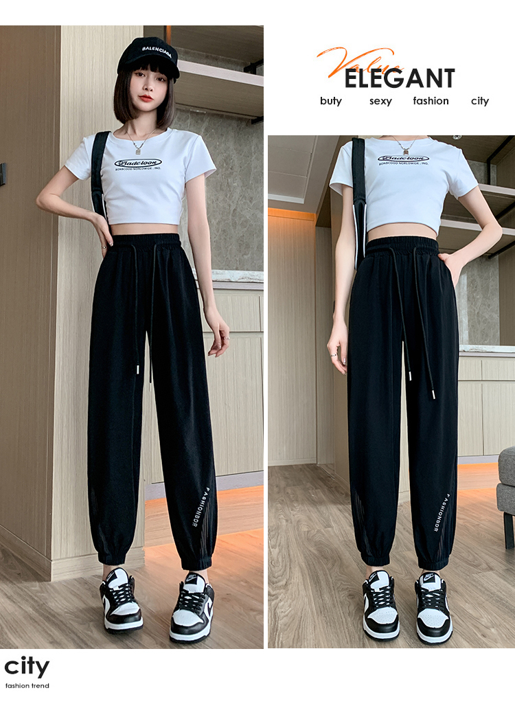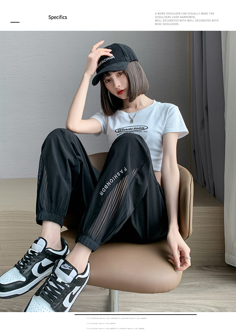限量特惠|率性舒適網紗拼接九分束腳冰絲褲-2色(05H3750)