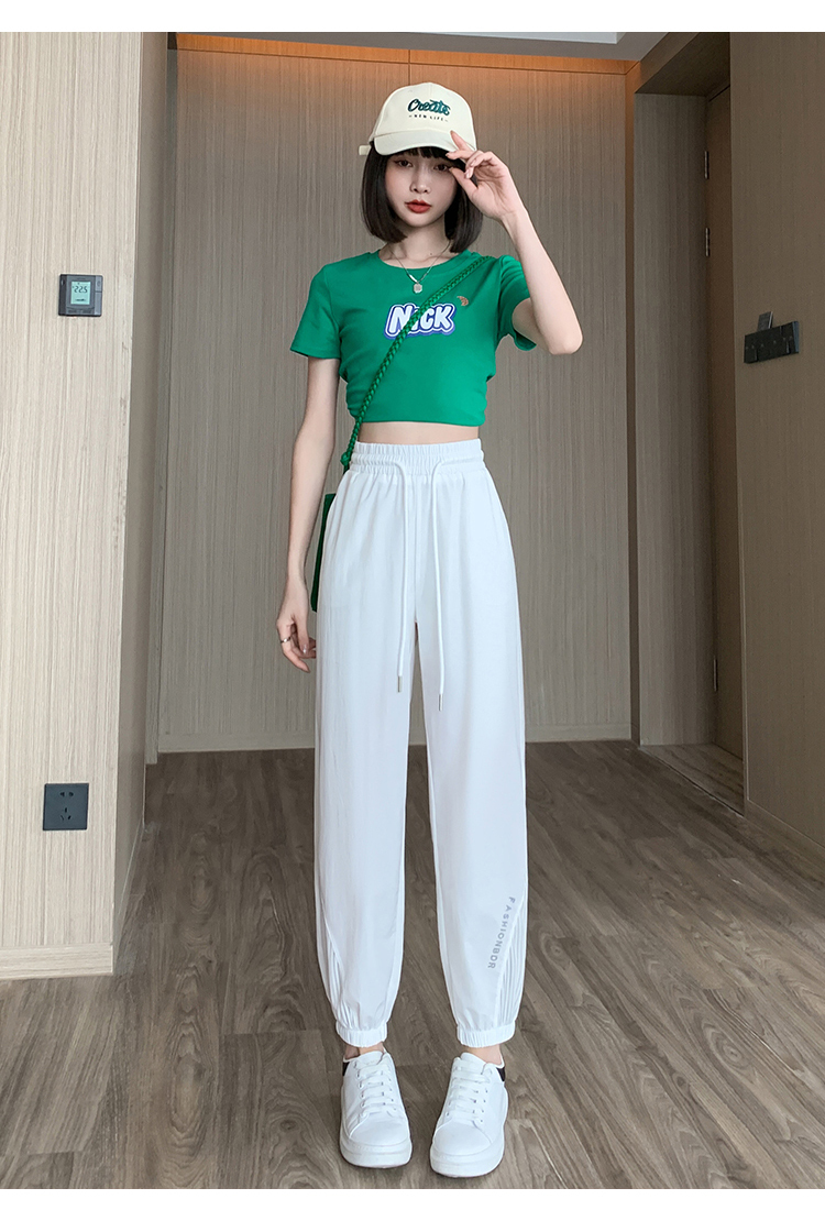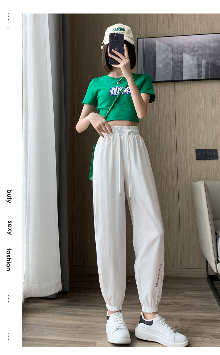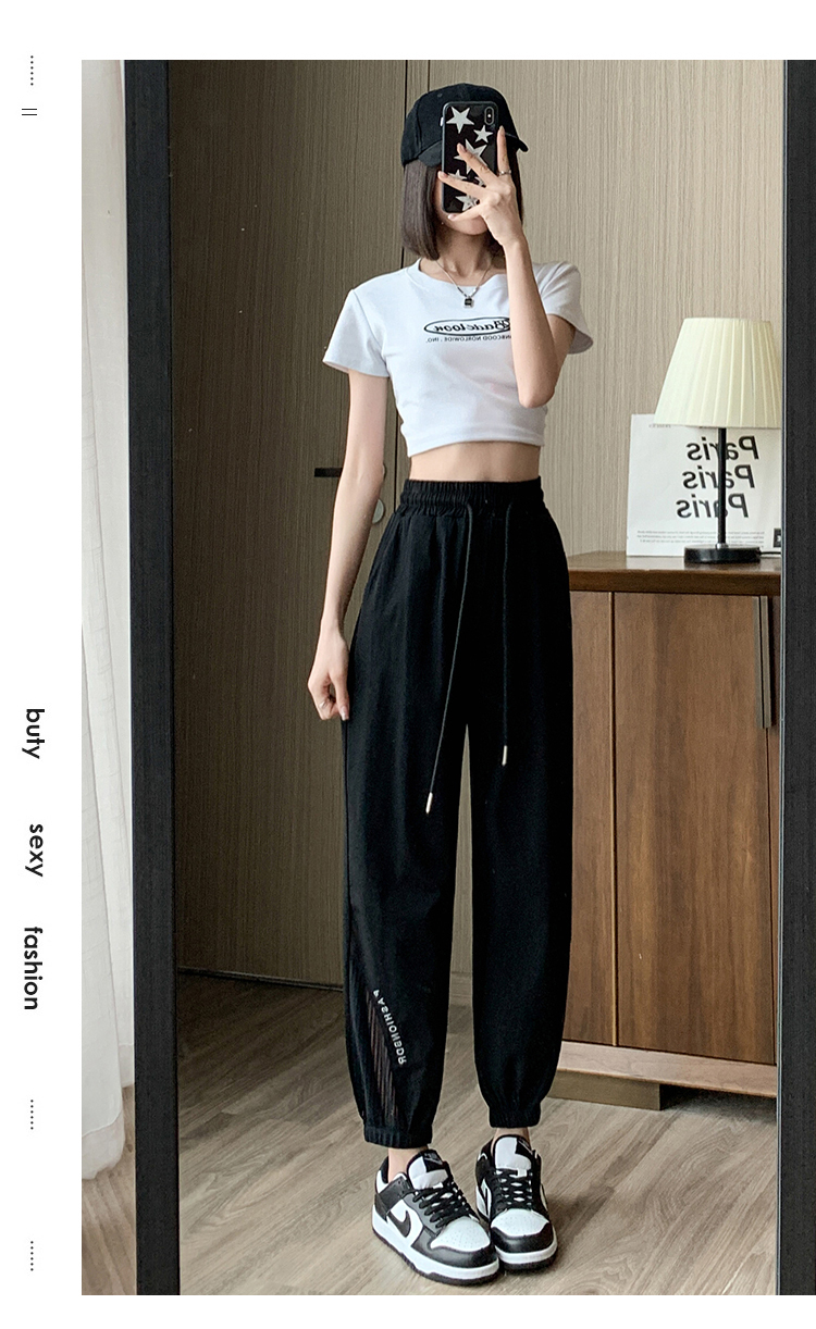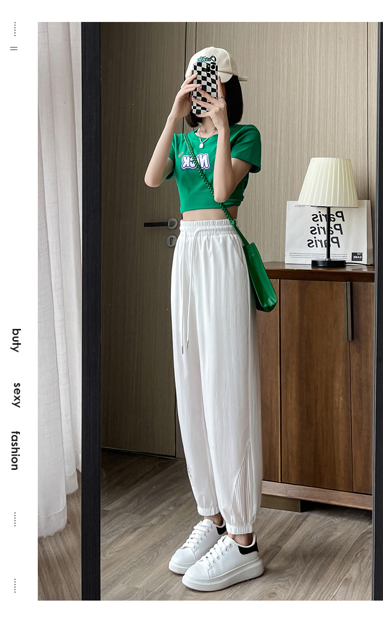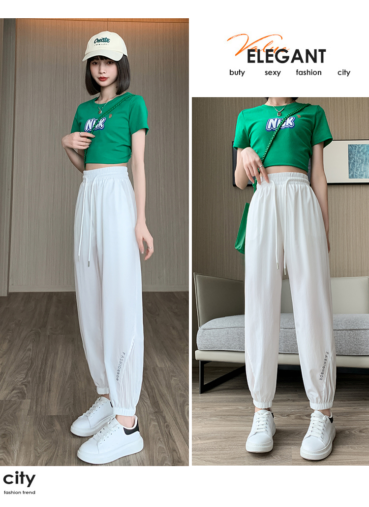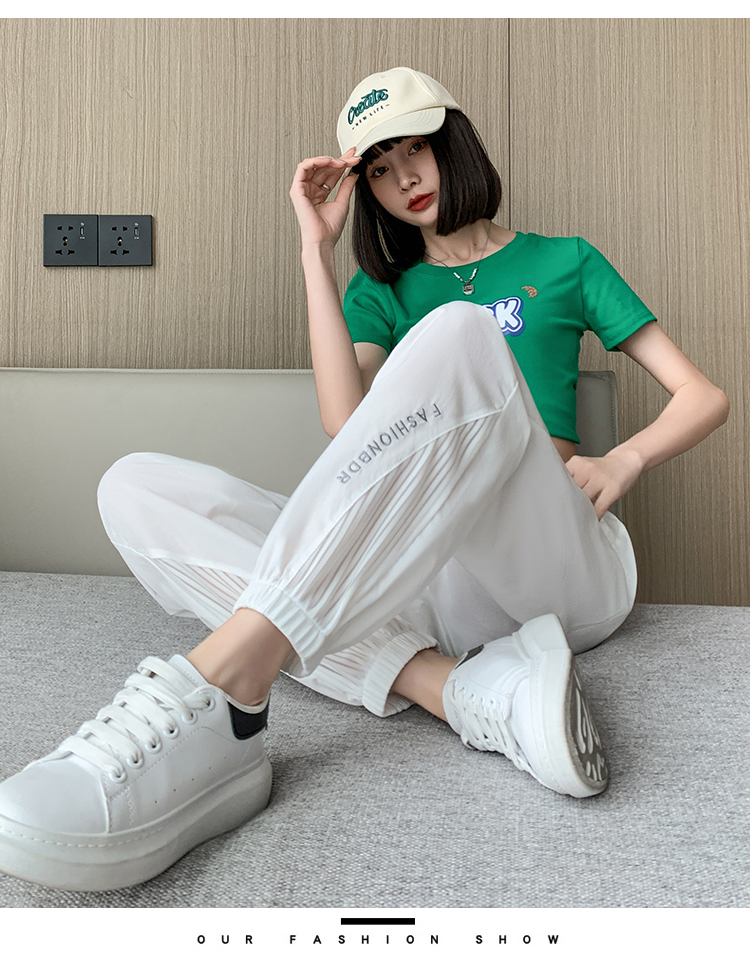 限量特惠|率性舒適網紗拼接九分束腳冰絲褲-2色(05H3750)