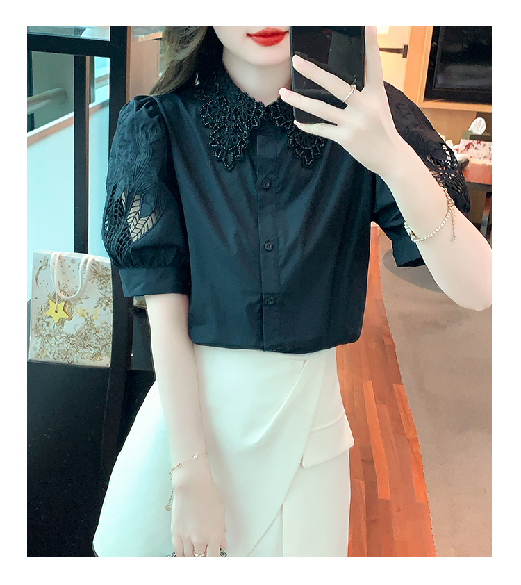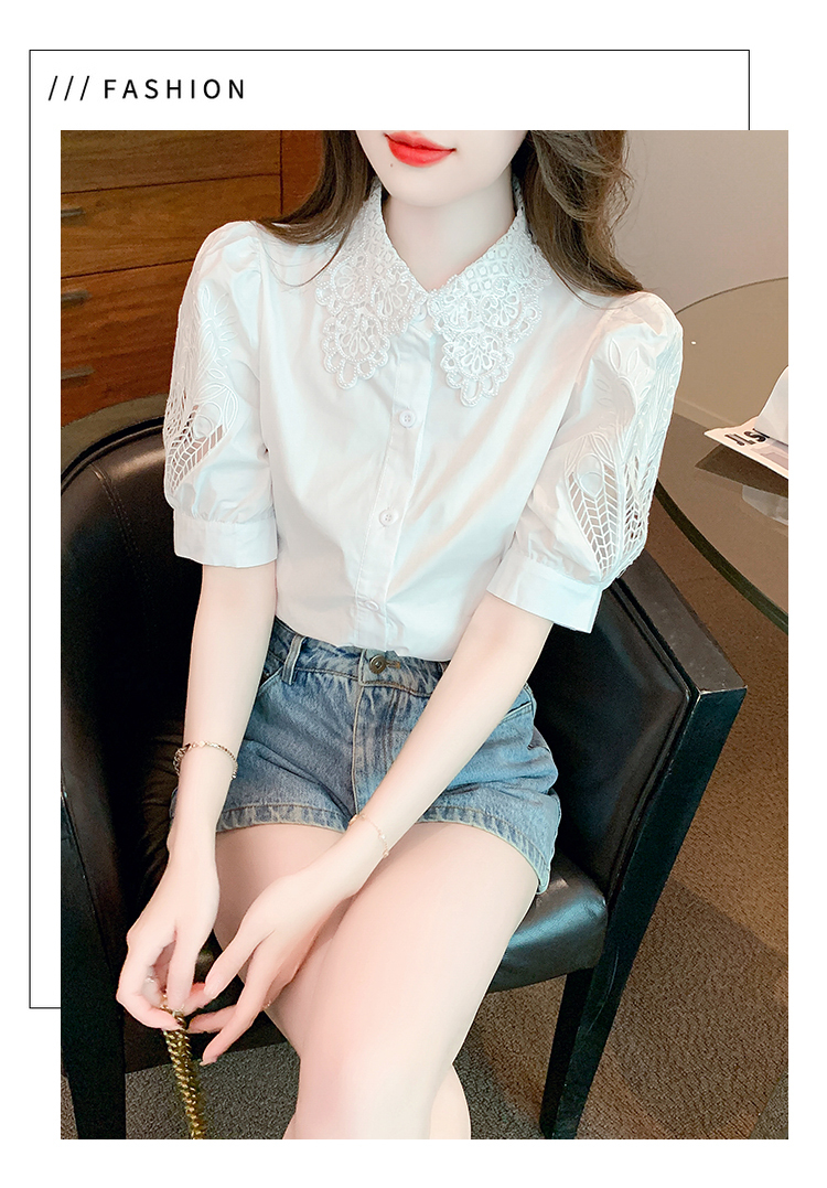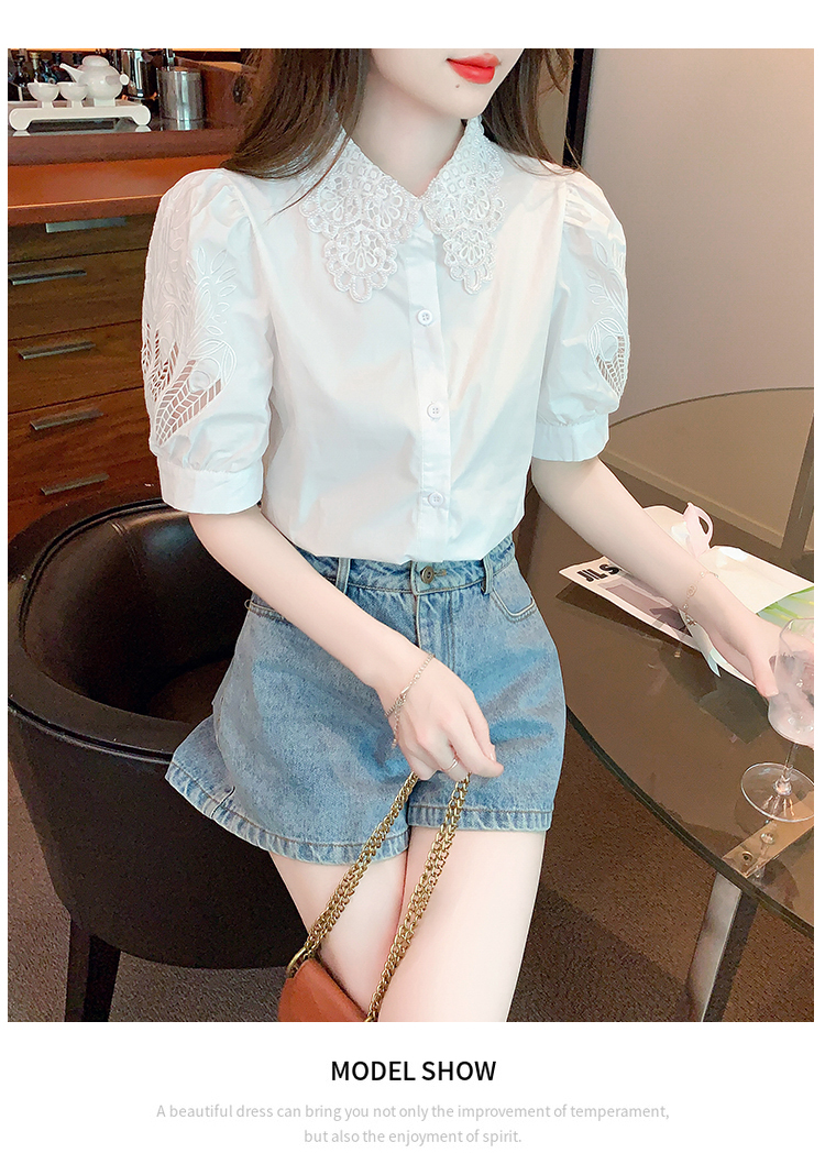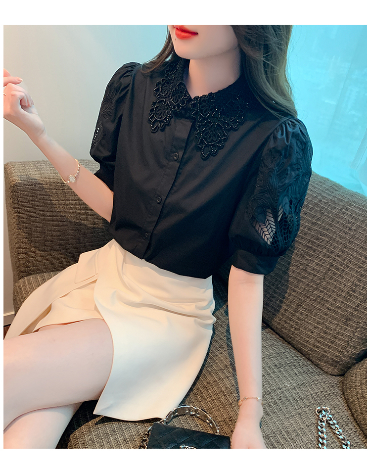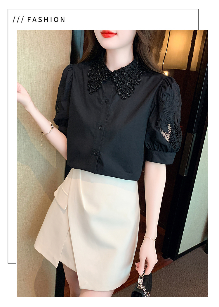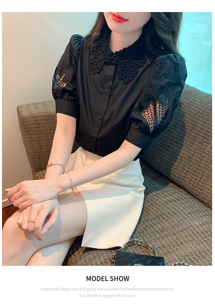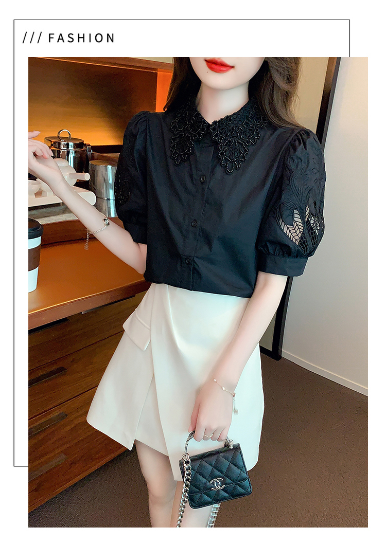 限量特惠|氣質縷空袖鈎花翻領襯衫-2色(05H3782)