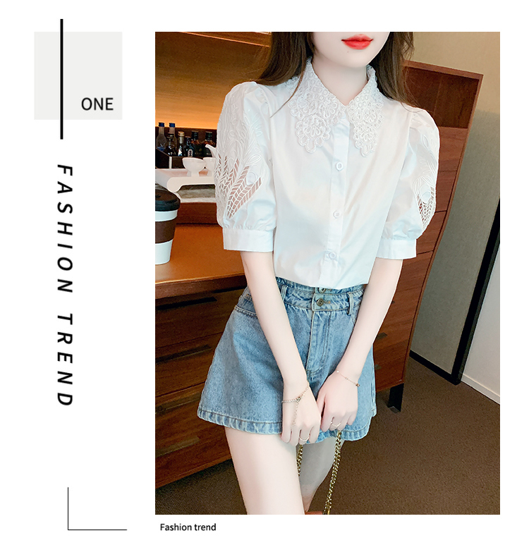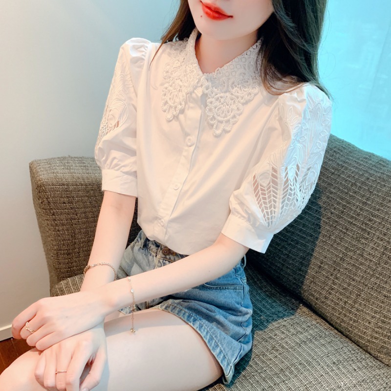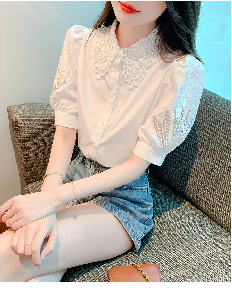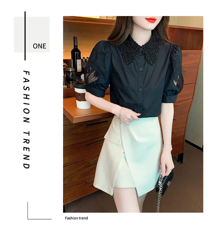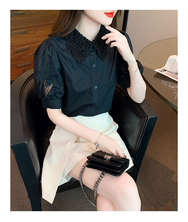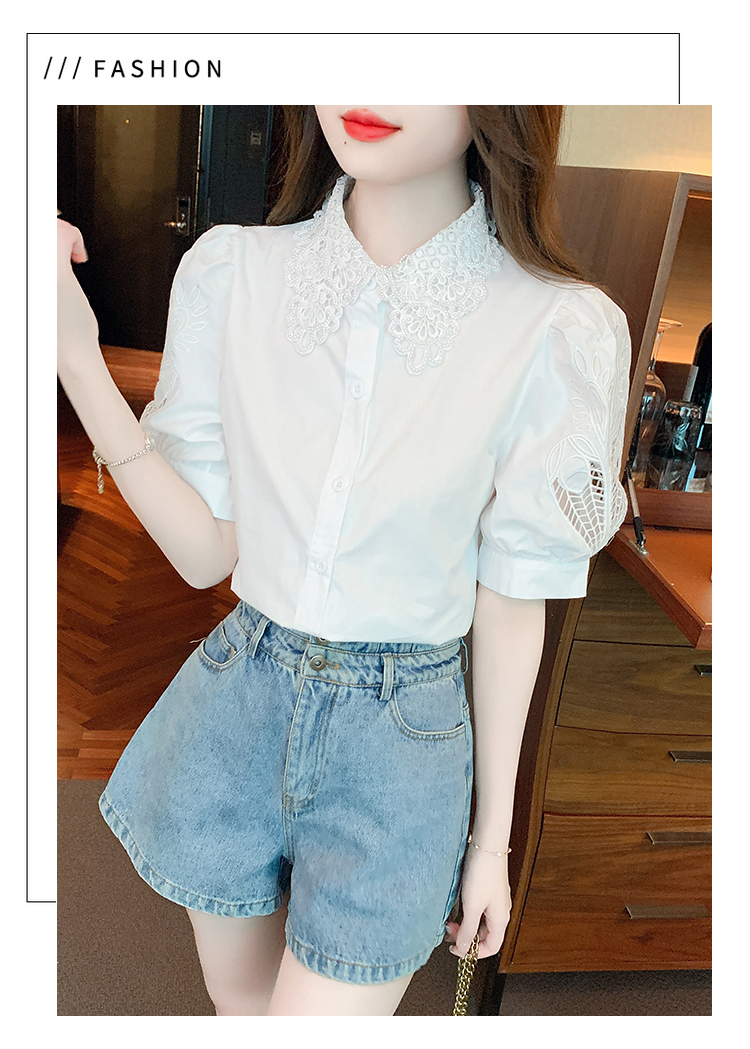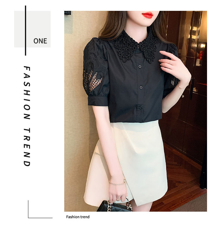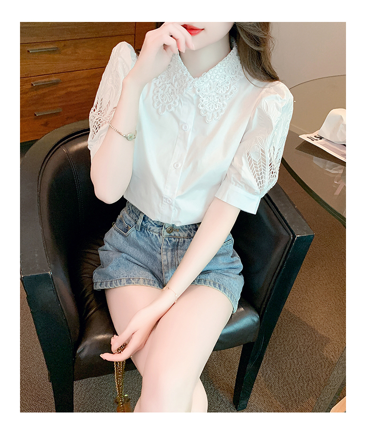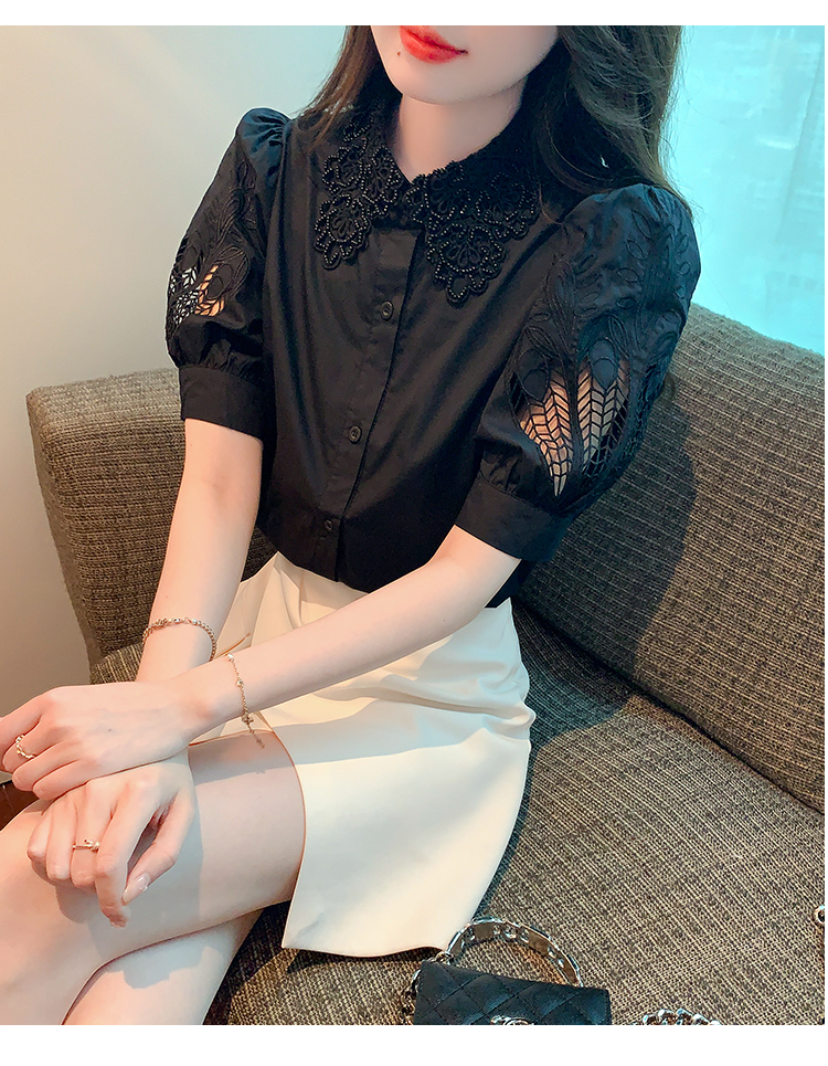 限量特惠|氣質縷空袖鈎花翻領襯衫-2色(05H3782)