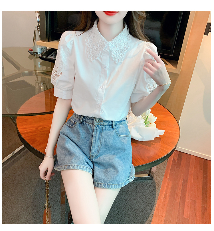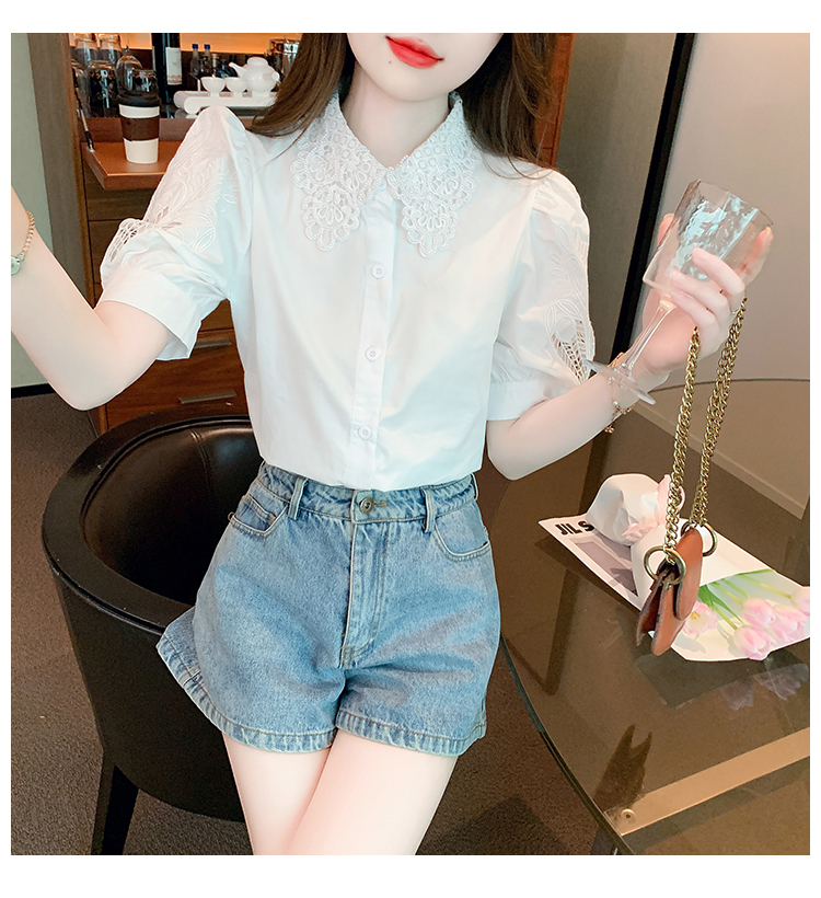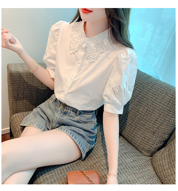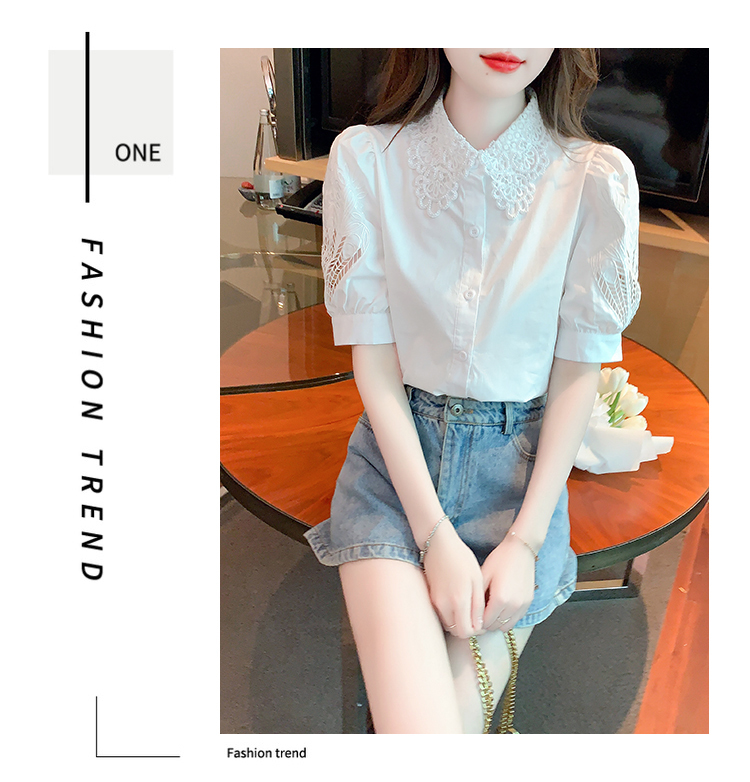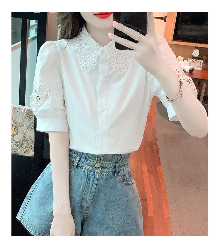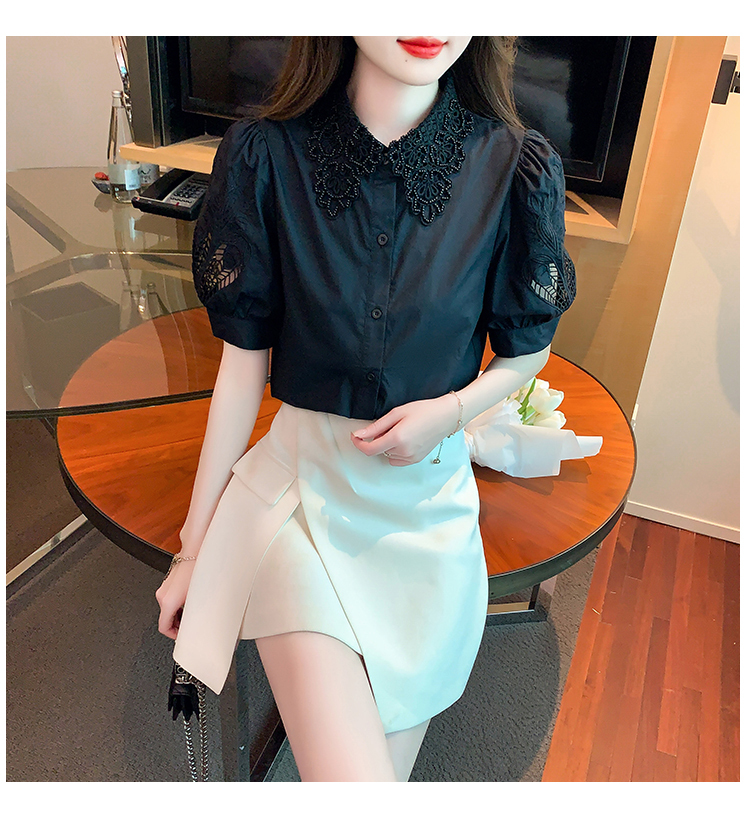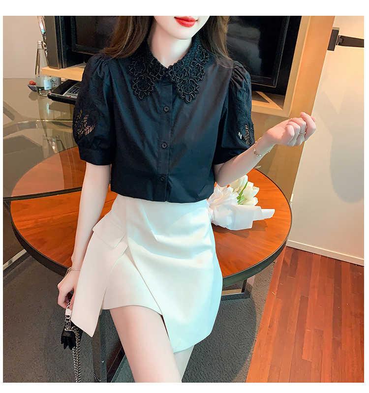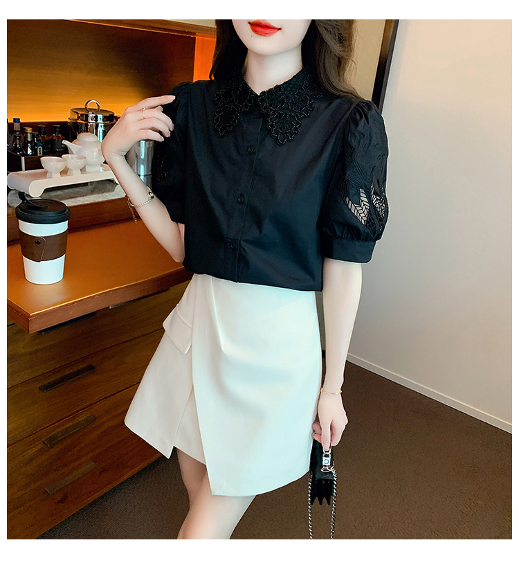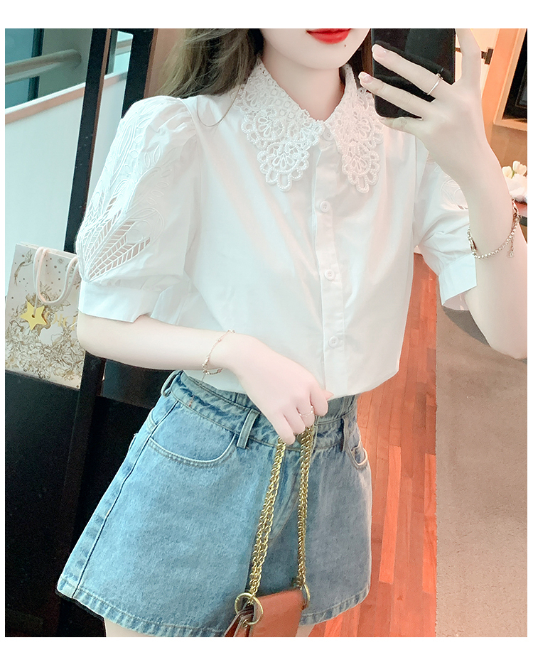 限量特惠|氣質縷空袖鈎花翻領襯衫-2色(05H3782)