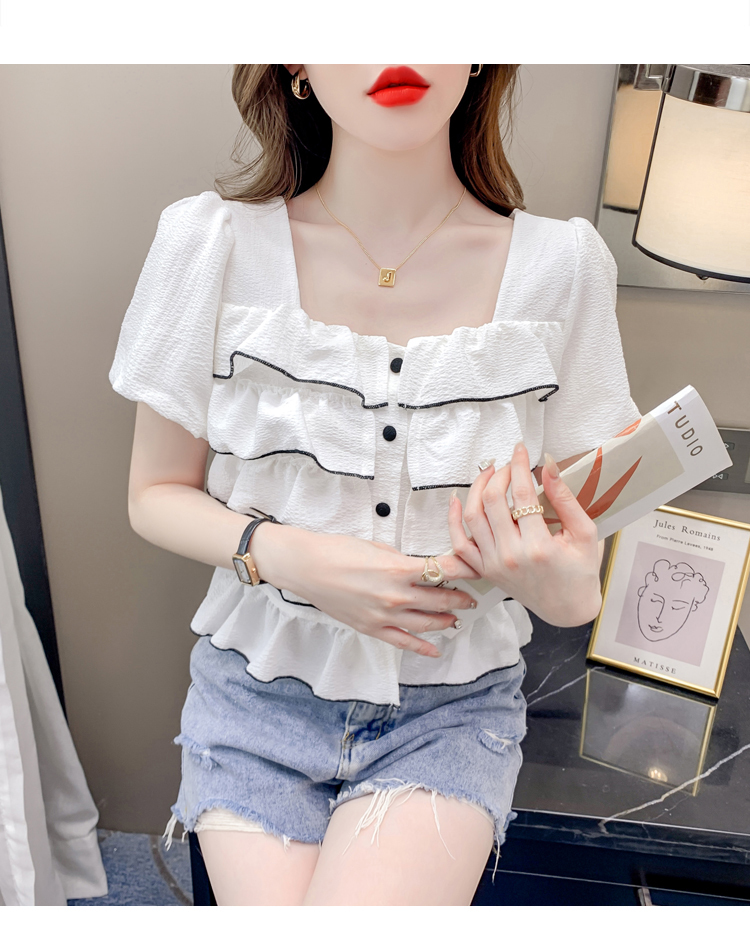 限量特惠|小清新荷葉邊雪紡娃娃衫-2色(05H3804)