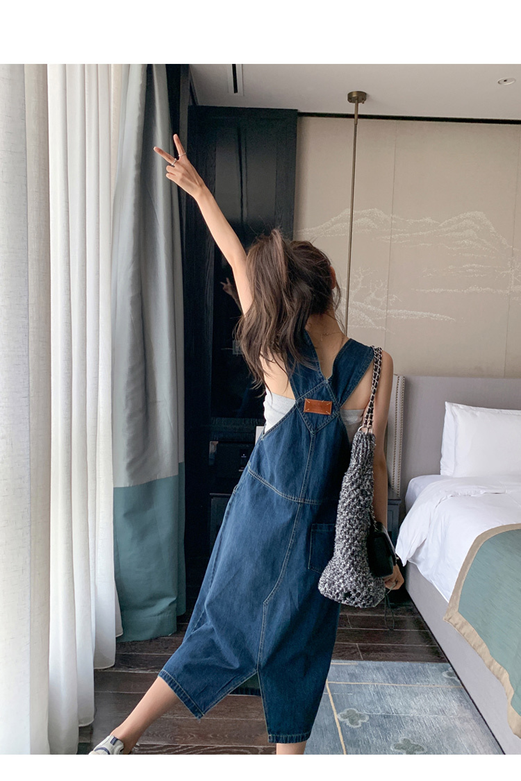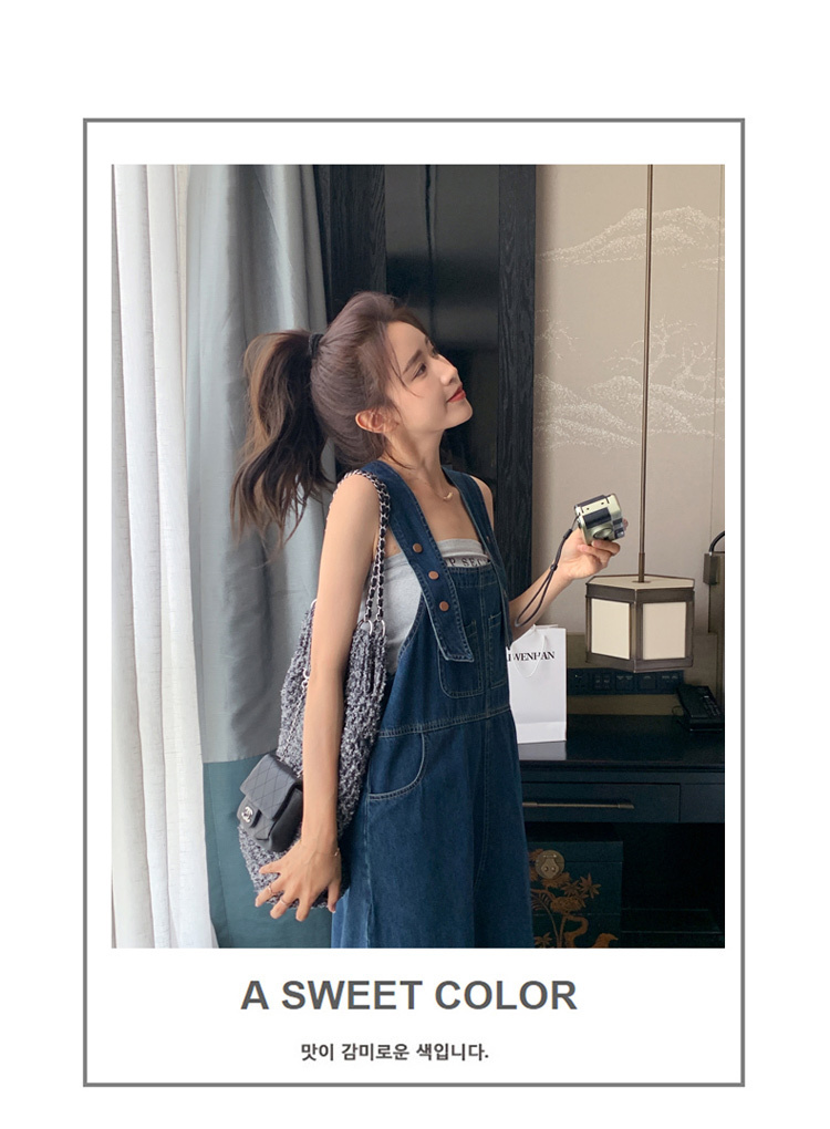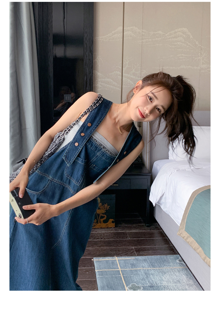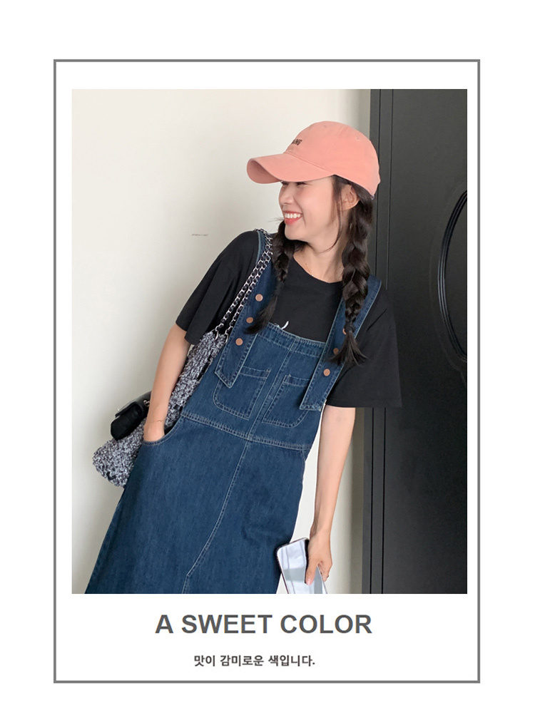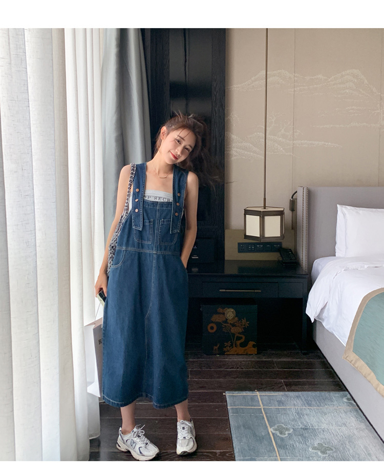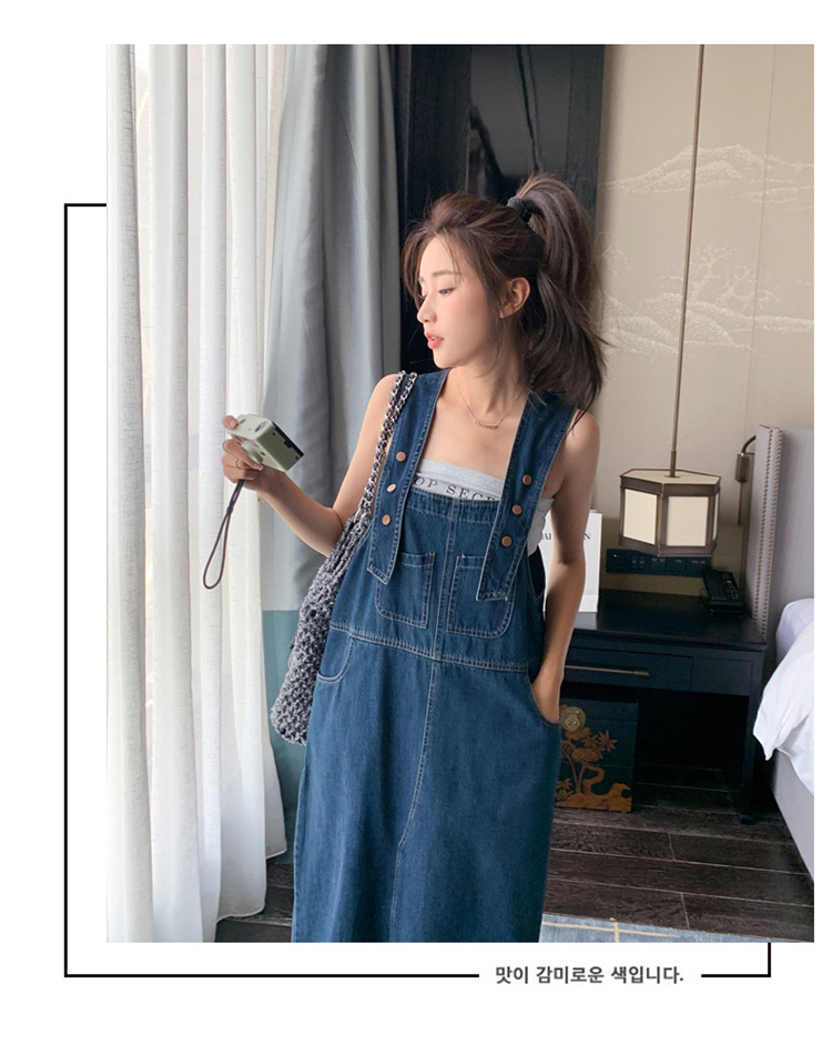 獨家訂製│韓系甜酷風開叉釘釦牛仔吊帶裙(05H3814)