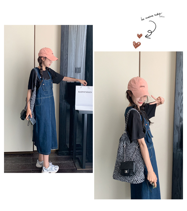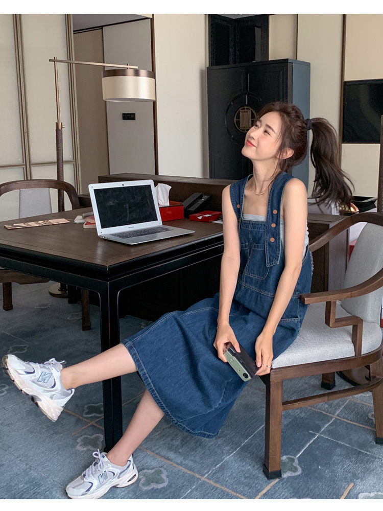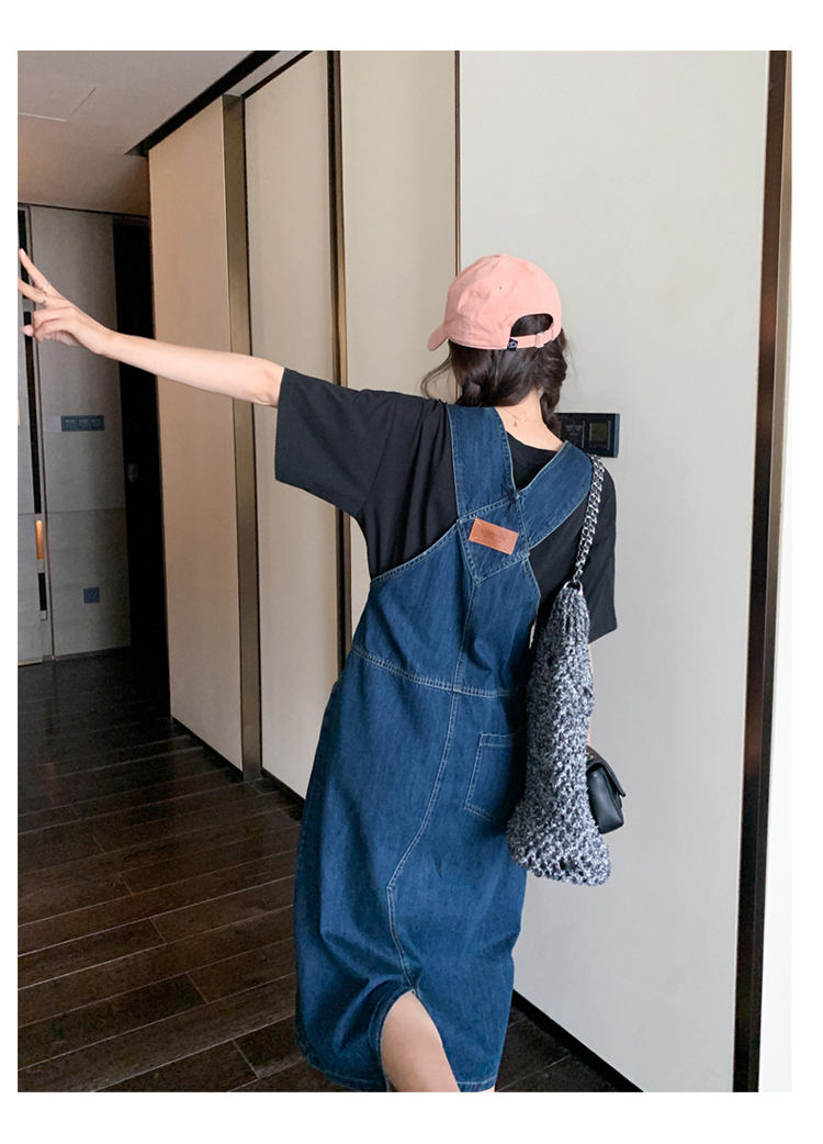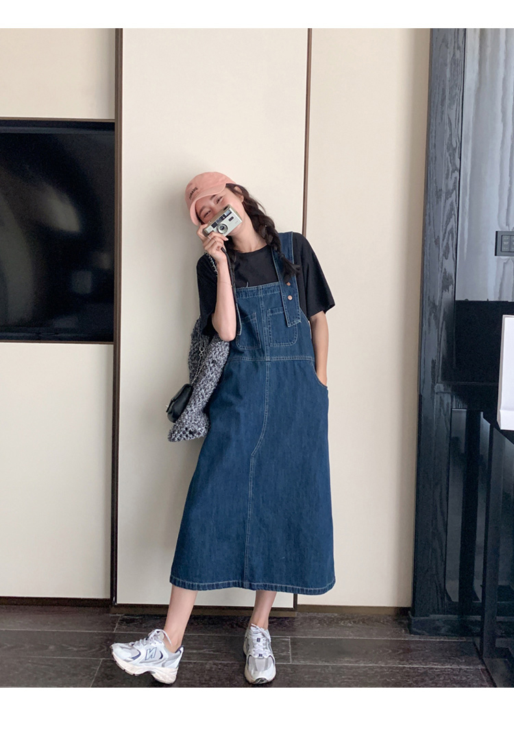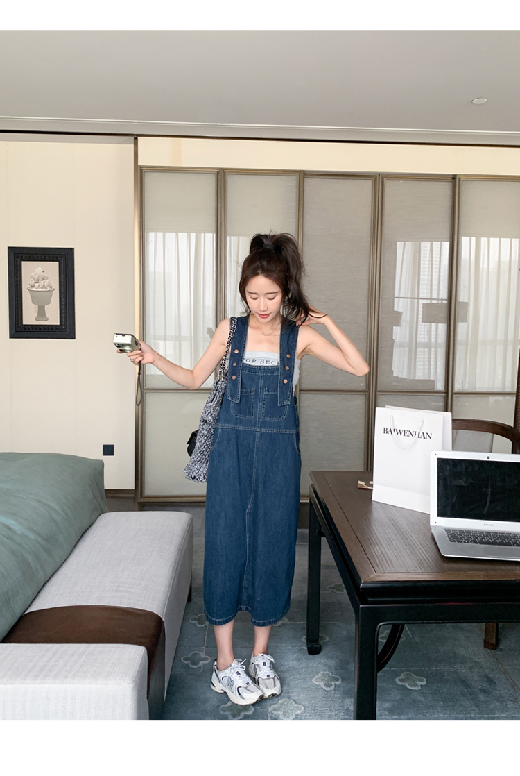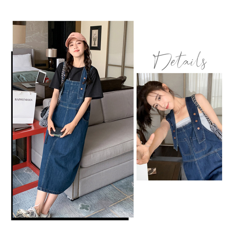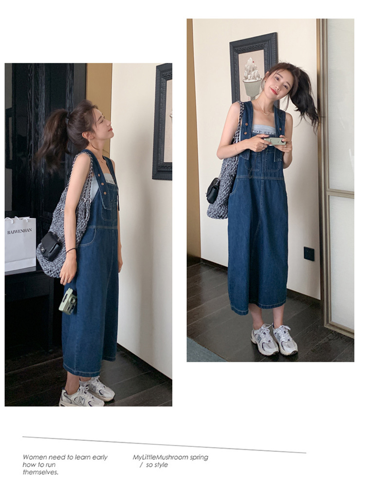 獨家訂製│韓系甜酷風開叉釘釦牛仔吊帶裙(05H3814)