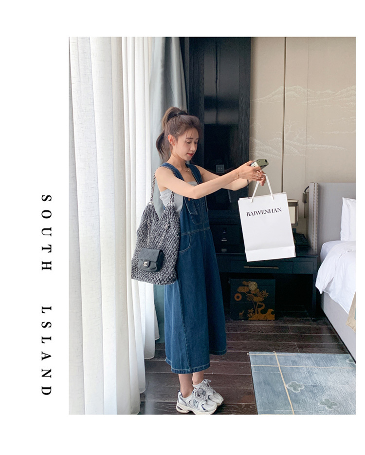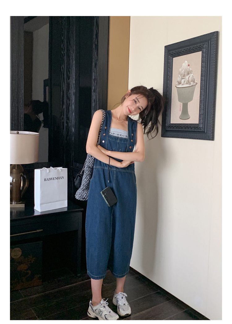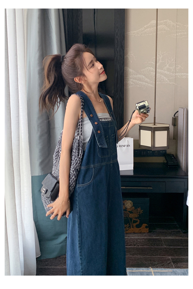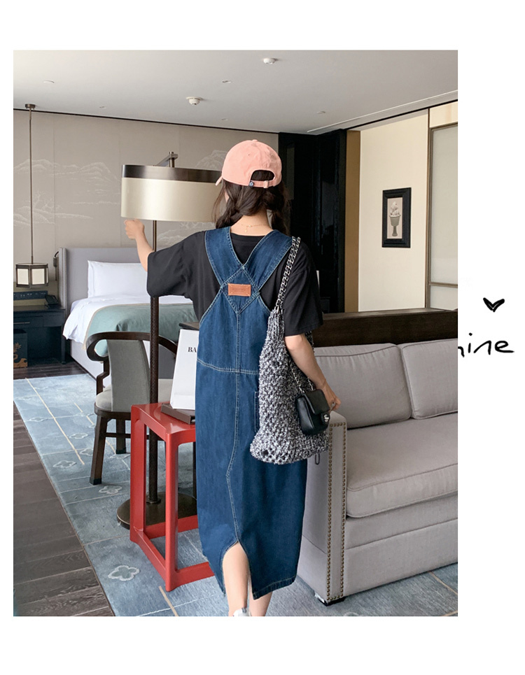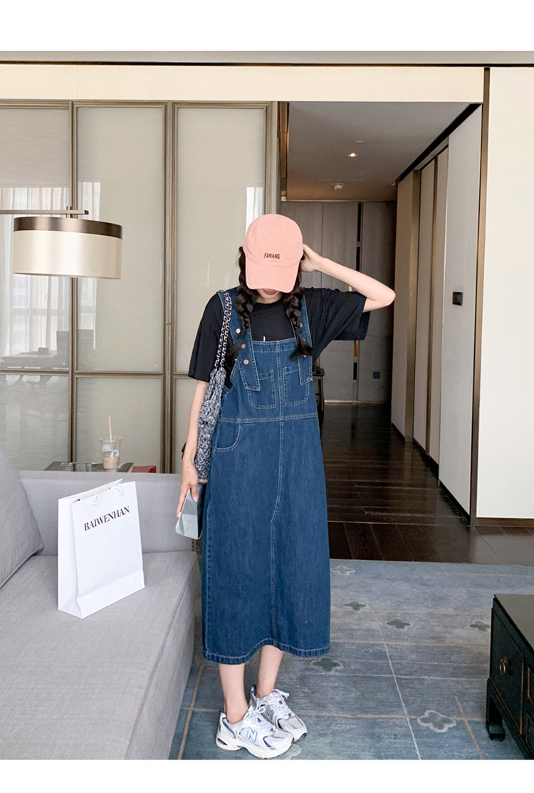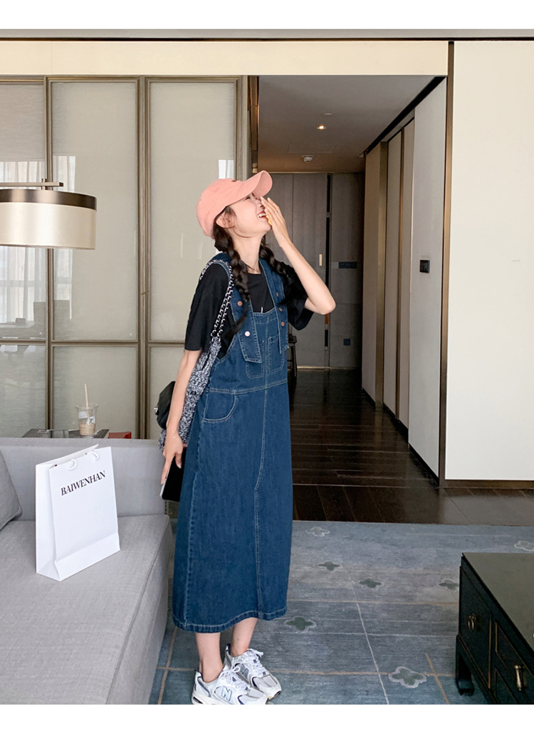 獨家訂製│韓系甜酷風開叉釘釦牛仔吊帶裙(05H3814)