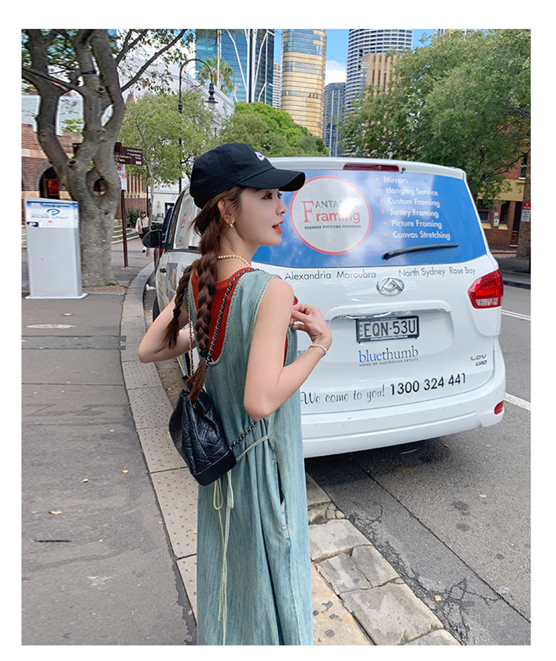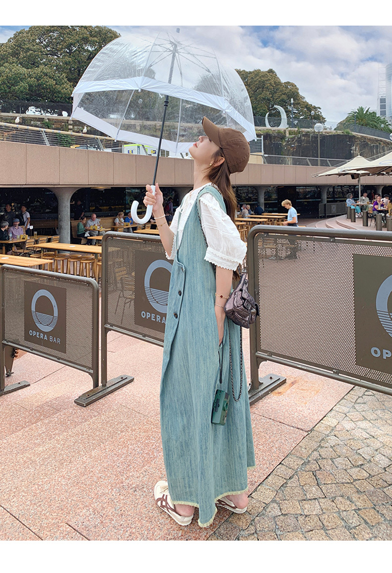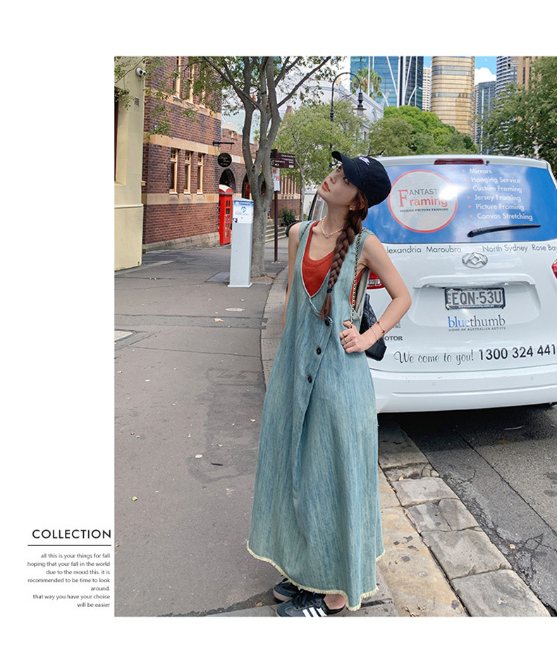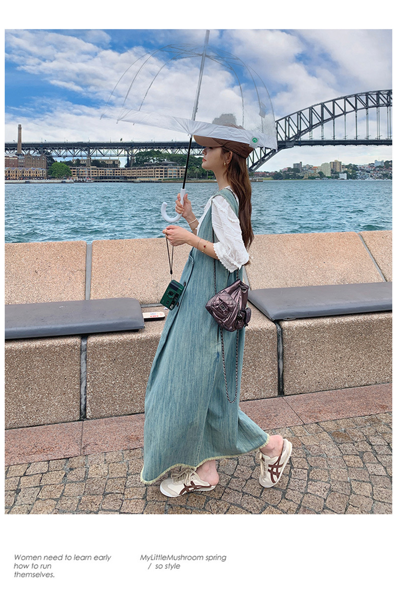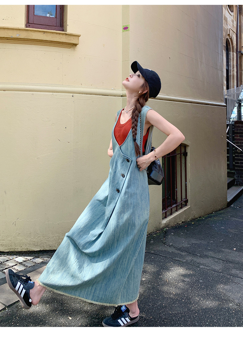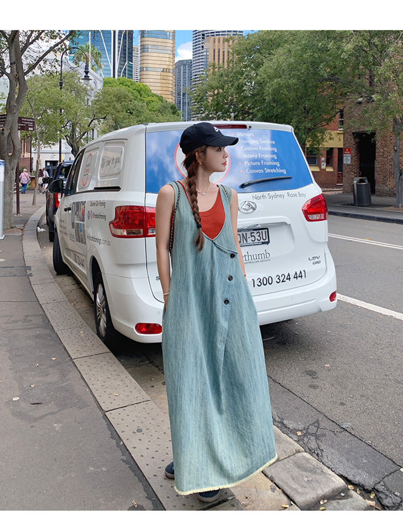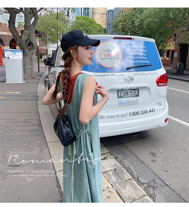 獨家訂製│韓系甜酷風斜釦繫帶刷色牛仔吊帶裙(05H3822)