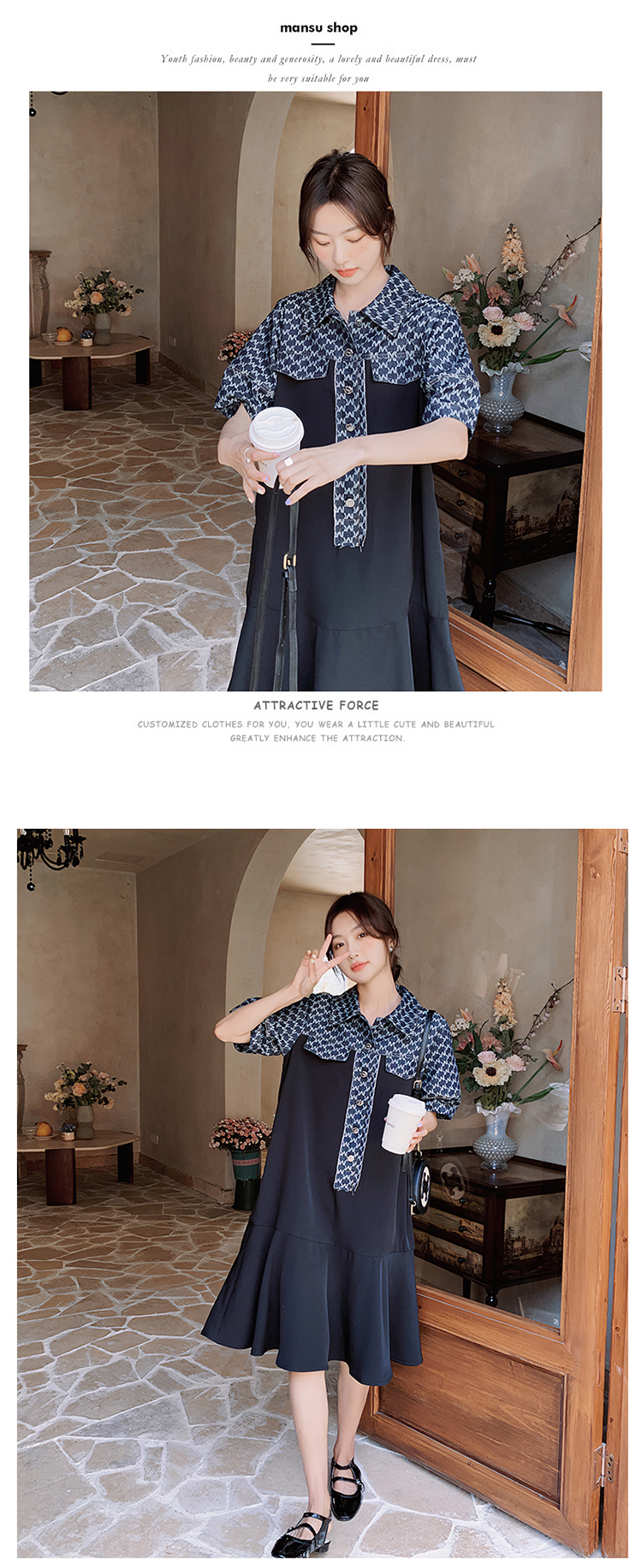 🔺面料:牛仔布+高絲雪紡