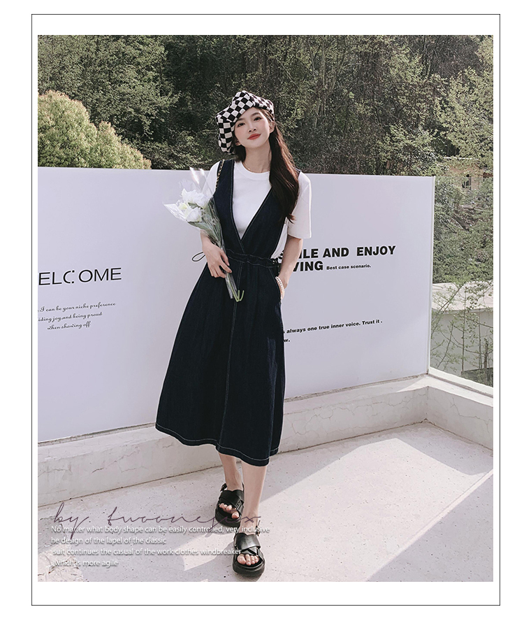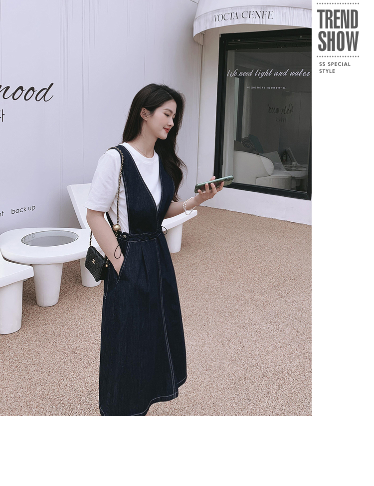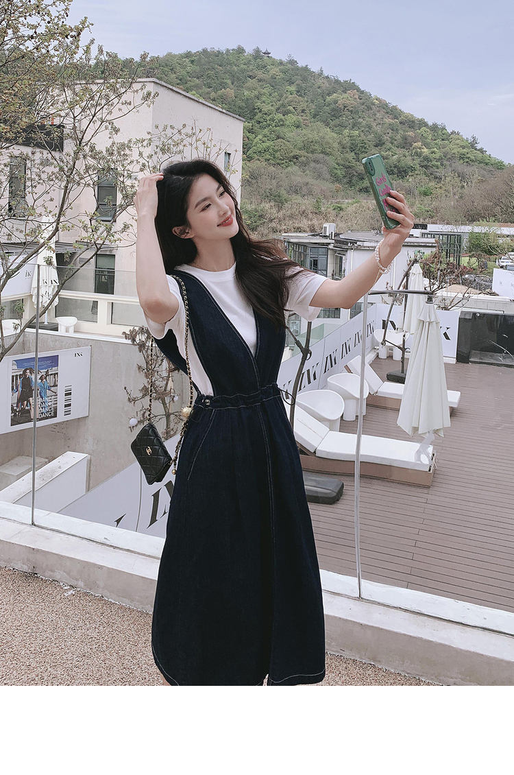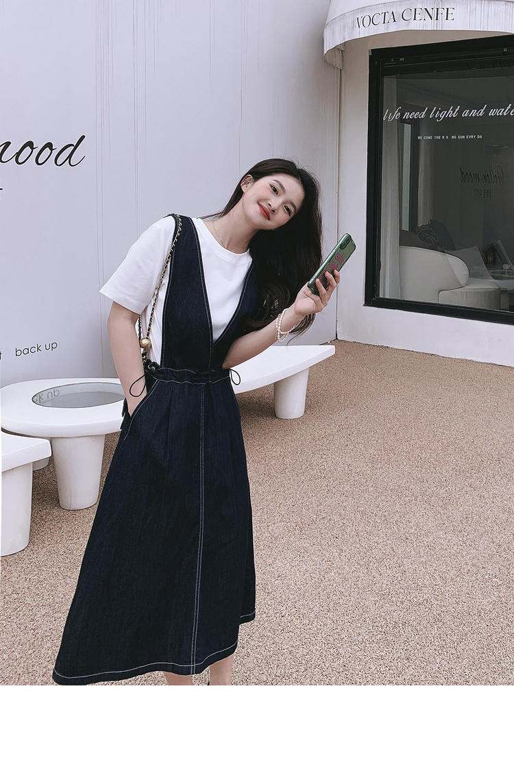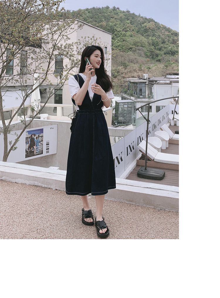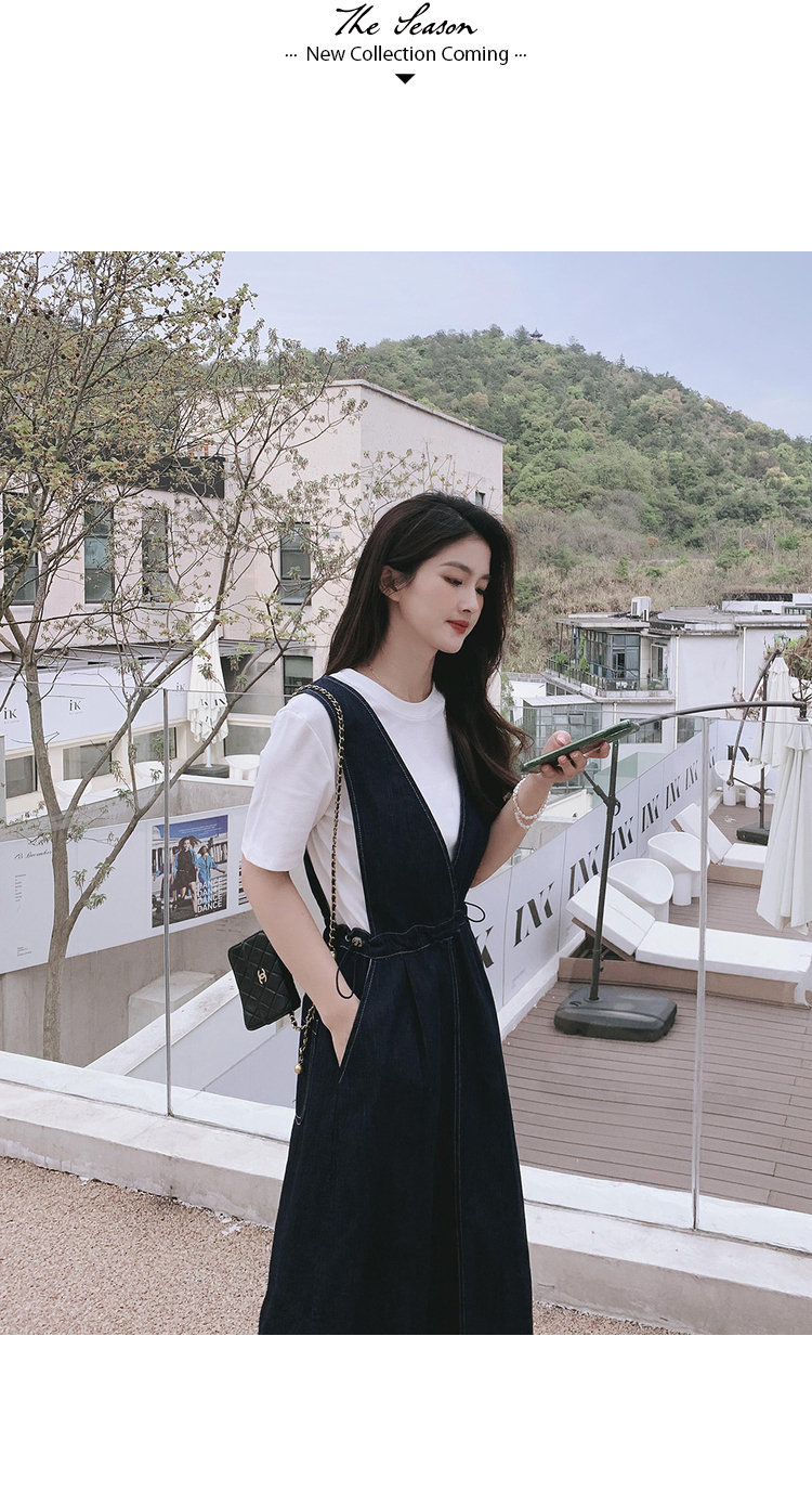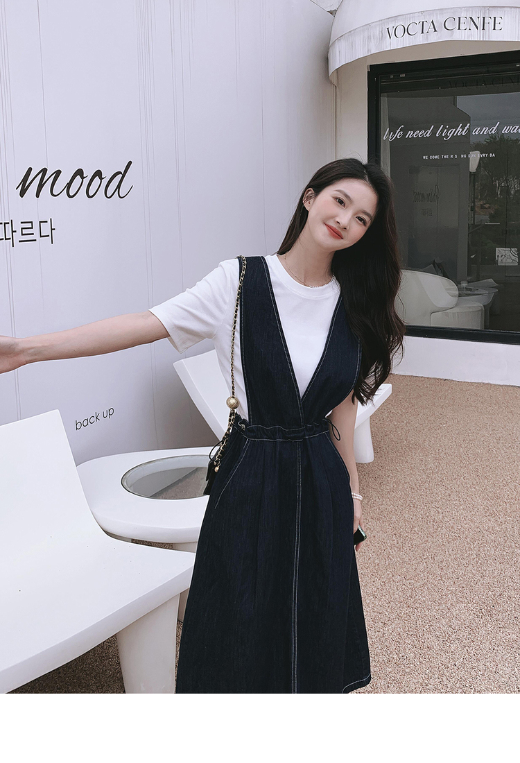 獨家訂製│韓系氣質感V字抽繩收腰修身牛仔吊帶裙(05H3841)