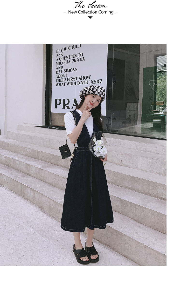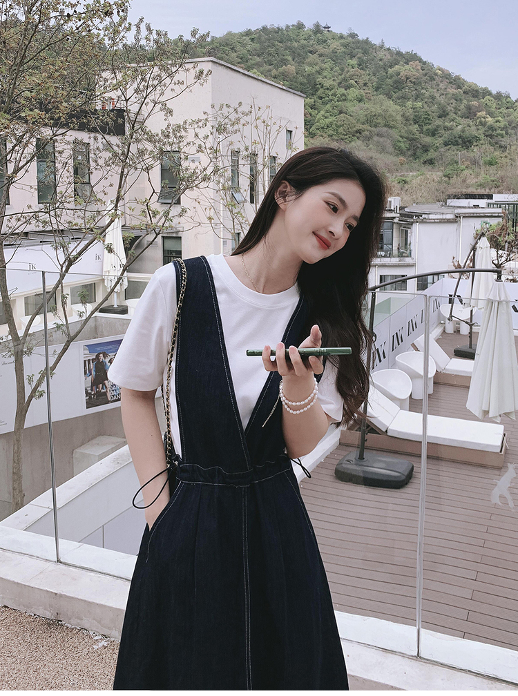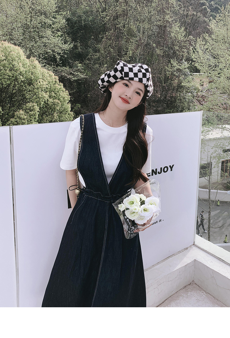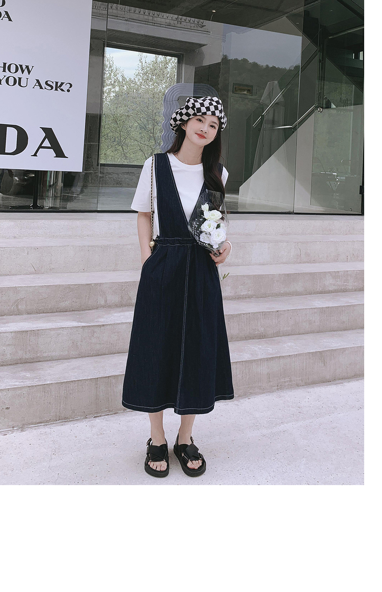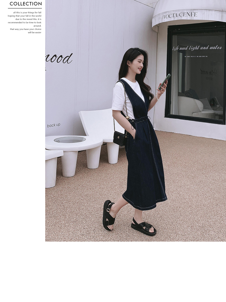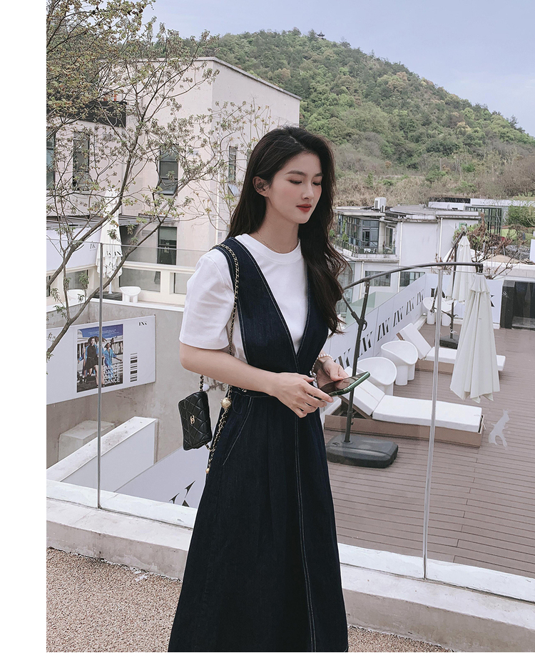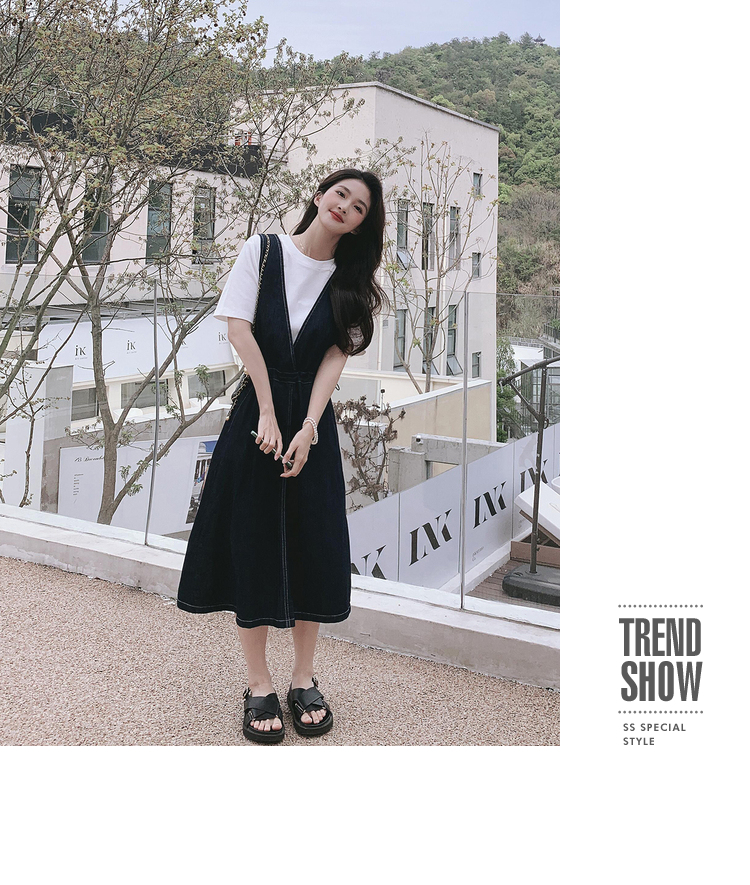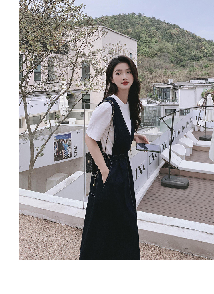獨家訂製│韓系氣質感V字抽繩收腰修身牛仔吊帶裙(05H3841)