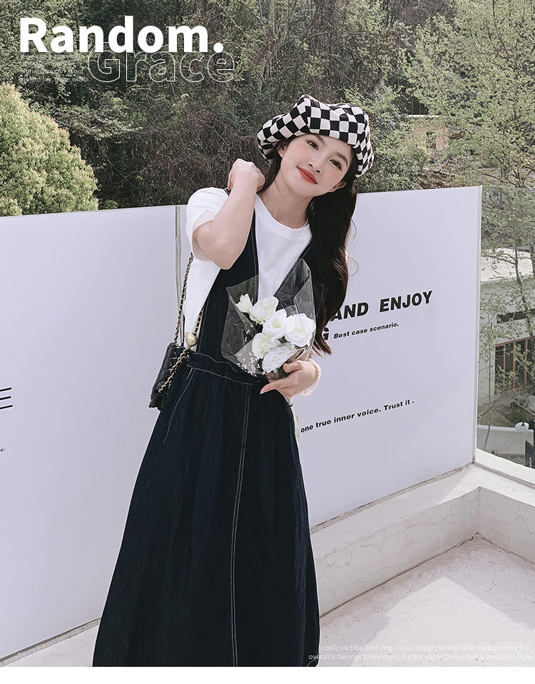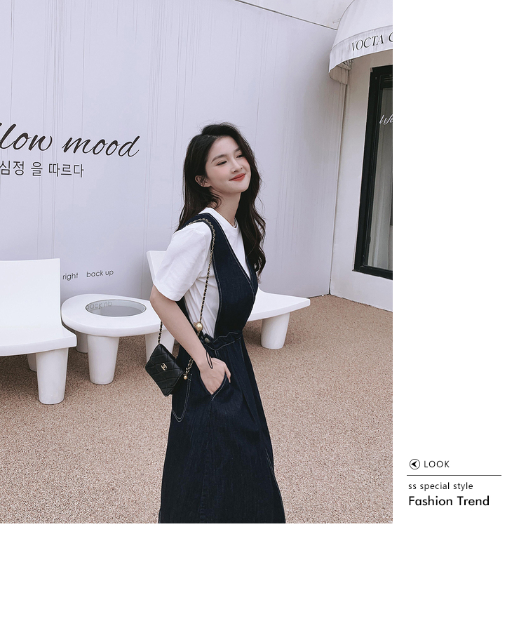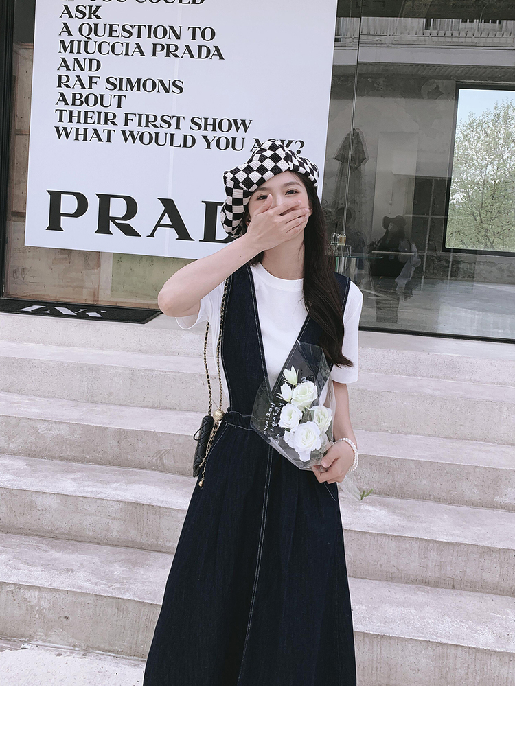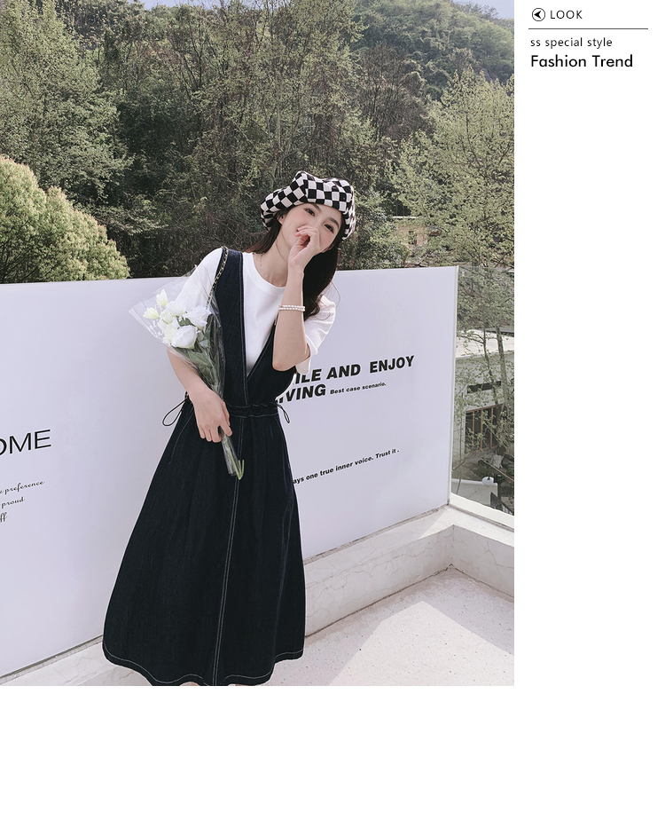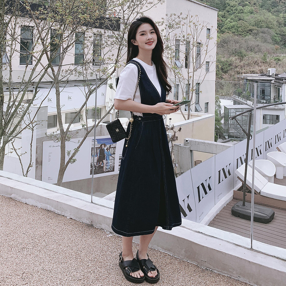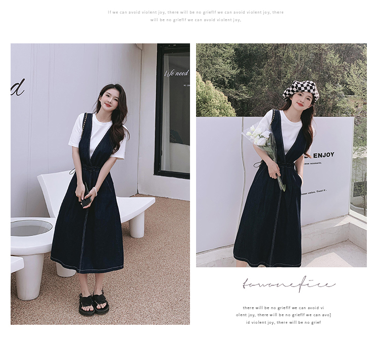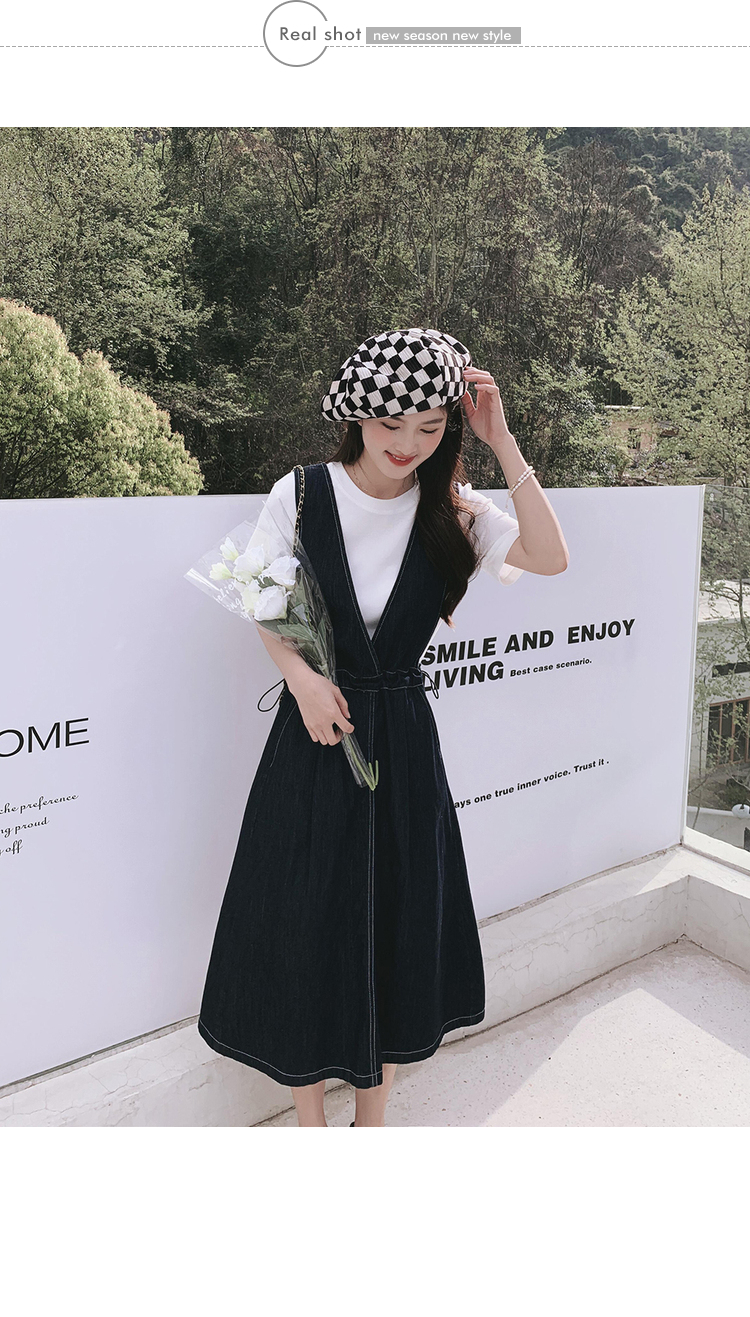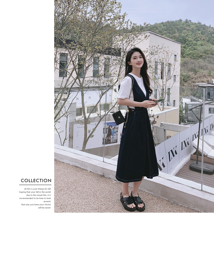 獨家訂製│韓系氣質感V字抽繩收腰修身牛仔吊帶裙(05H3841)