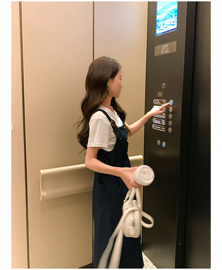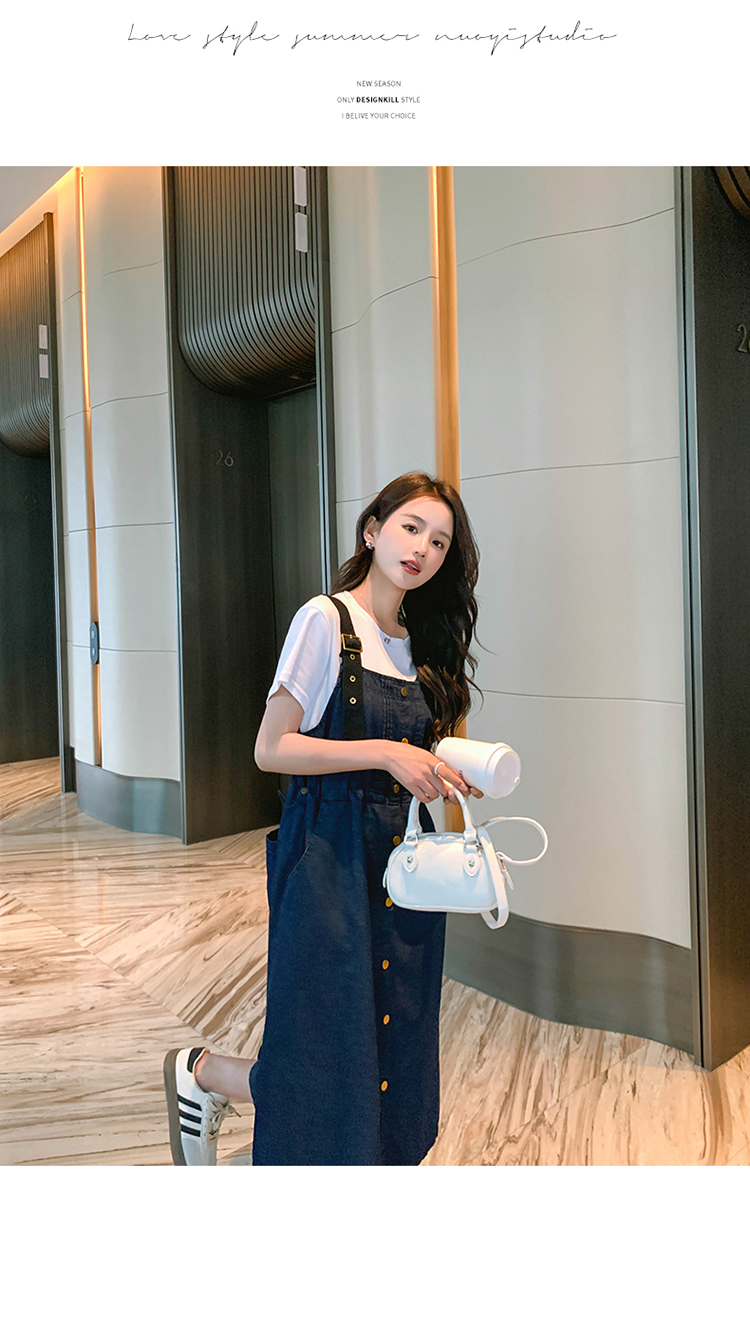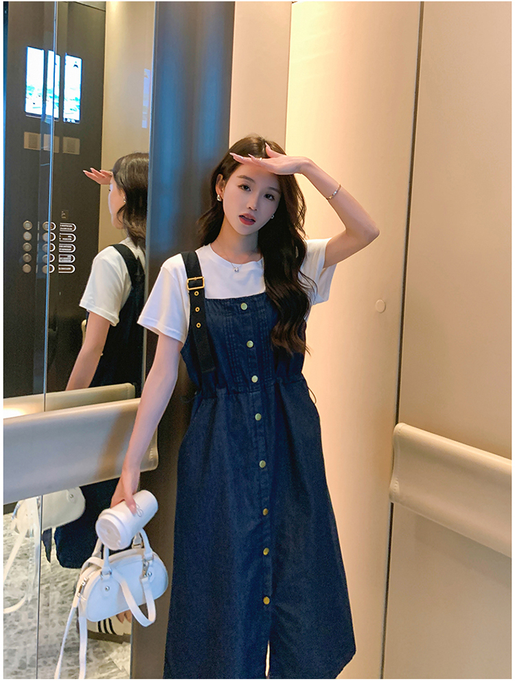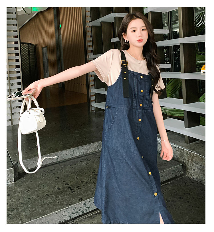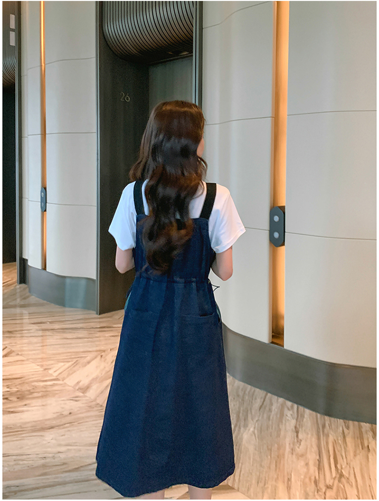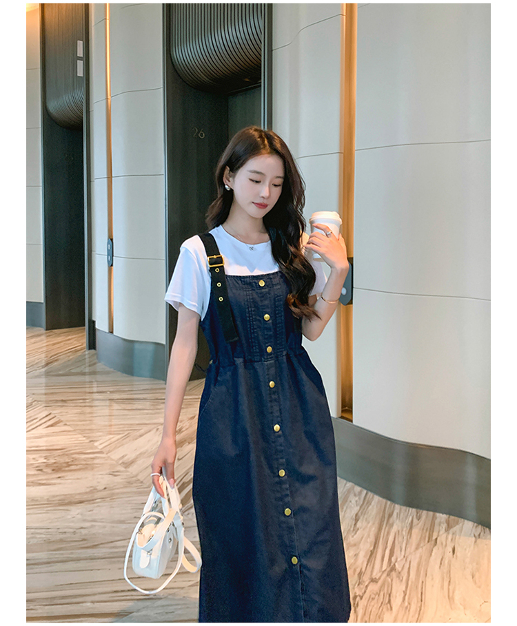 獨家訂製│韓系減齡感抽繩收腰單排釦牛仔吊帶裙(05H3858)