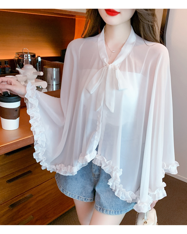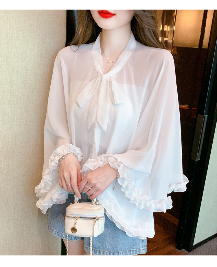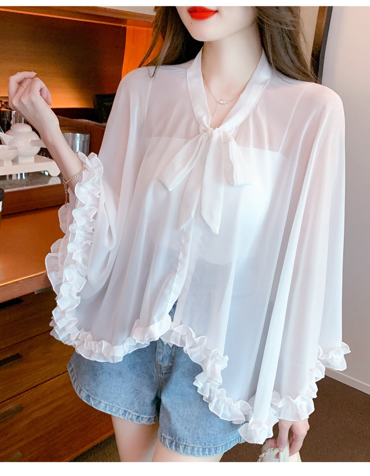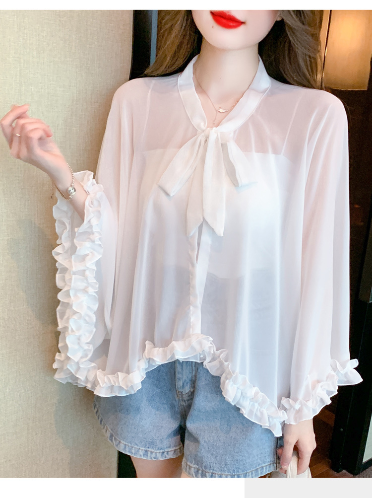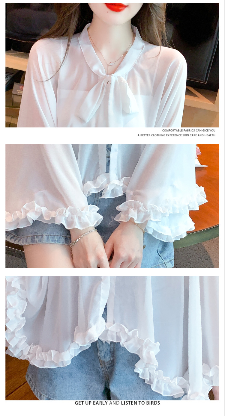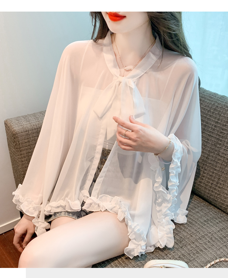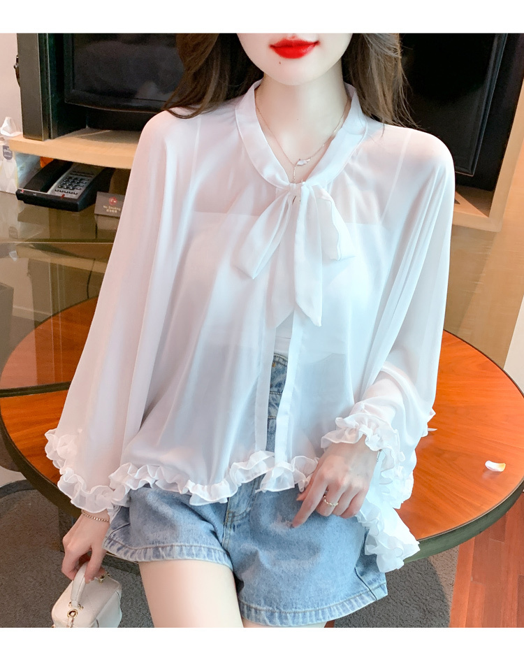 限量特惠|甜美木耳邊寬鬆雪紡罩衫(05H3865)