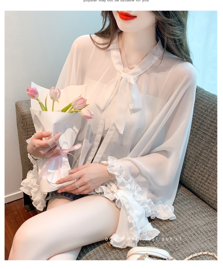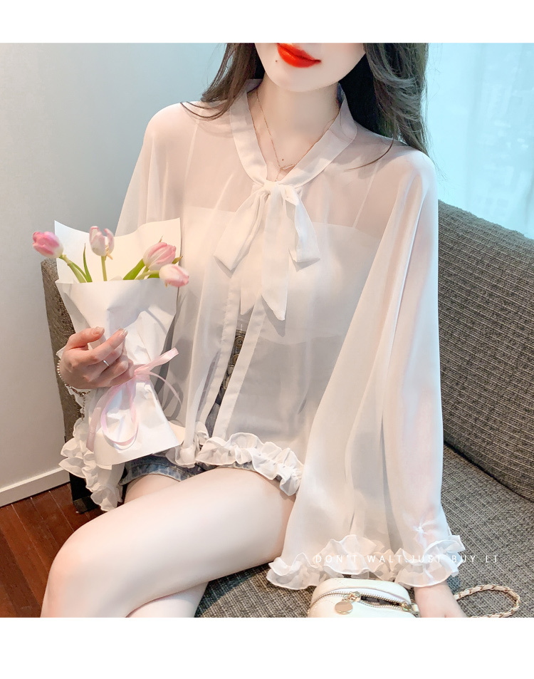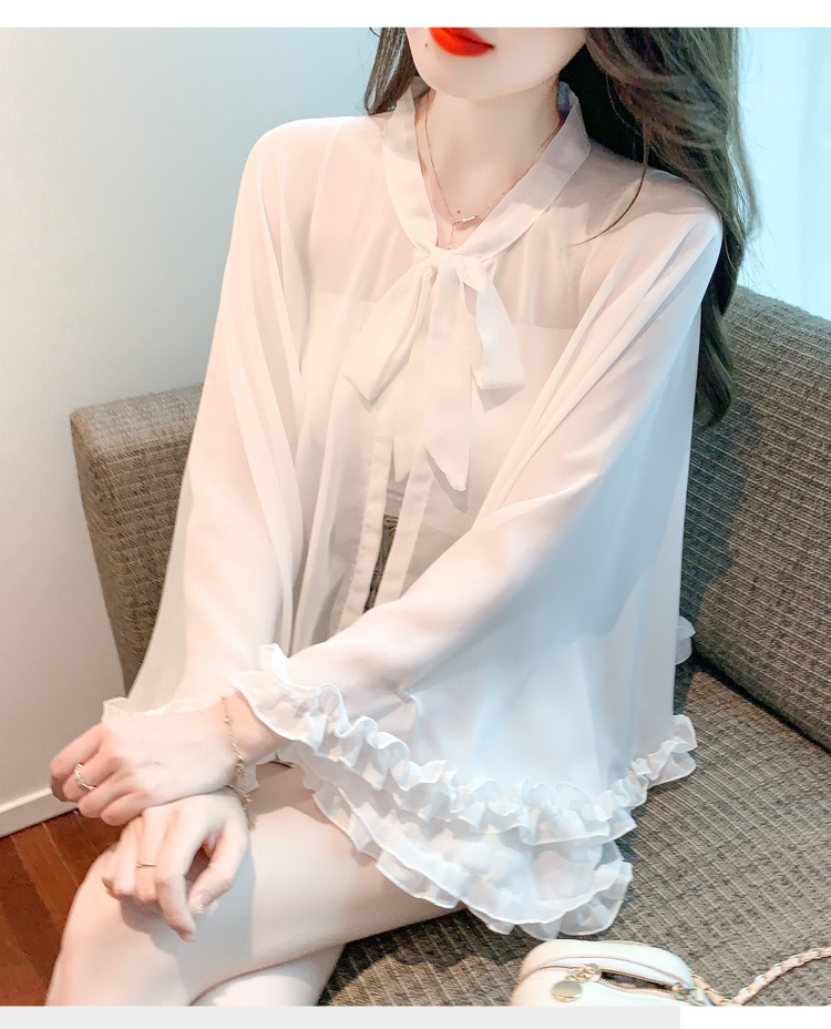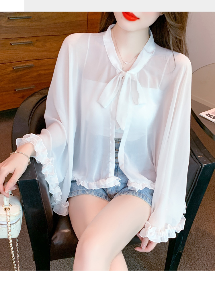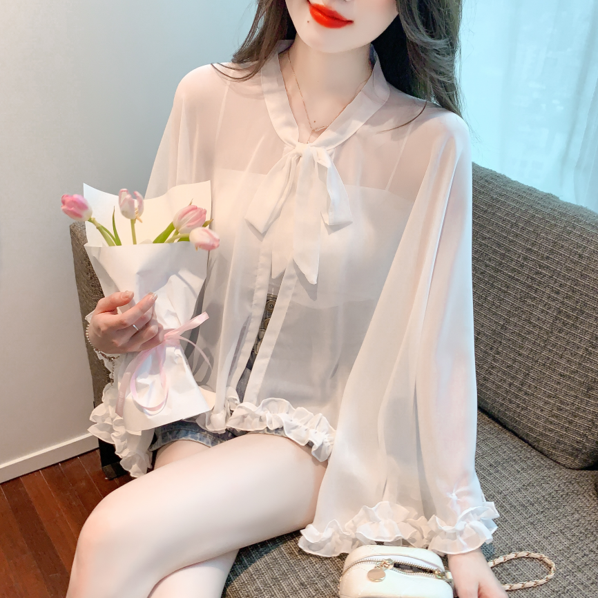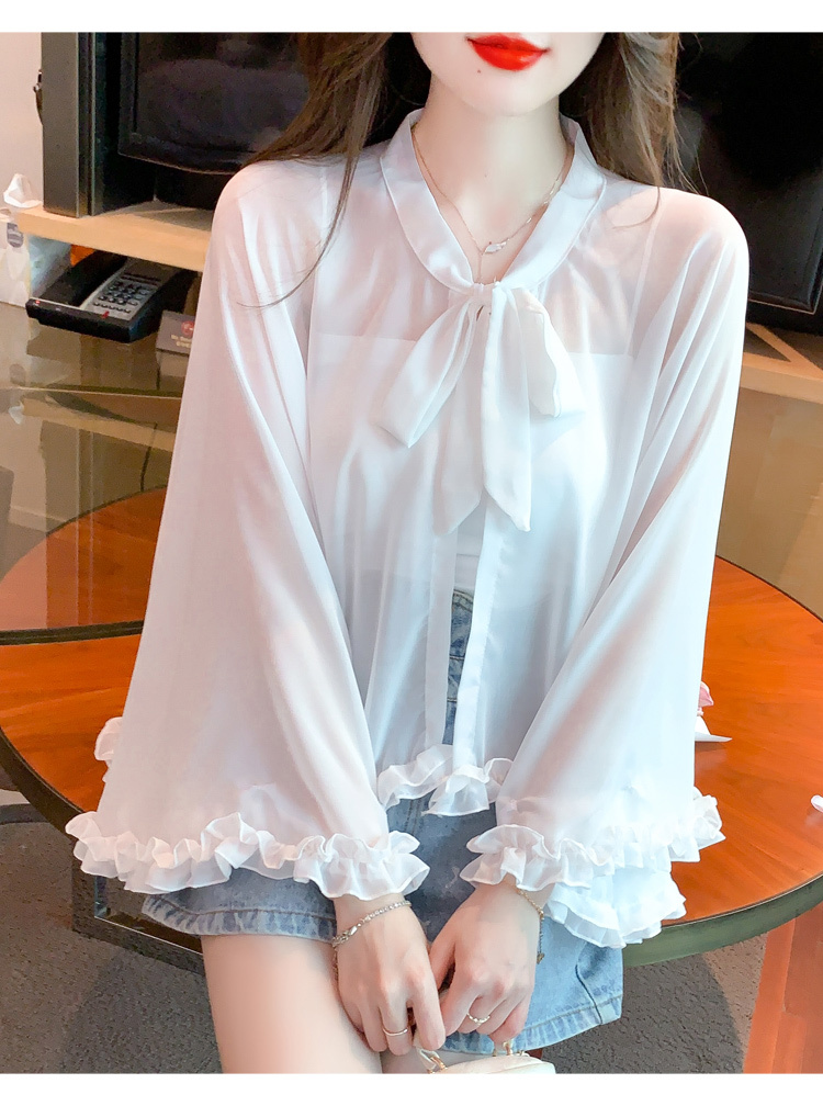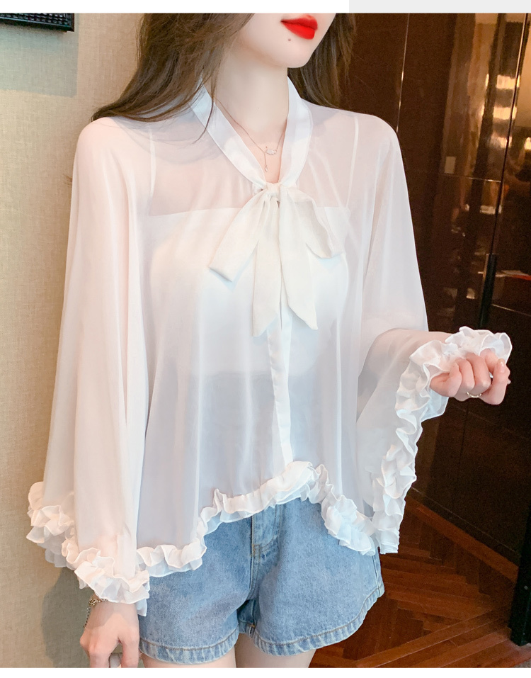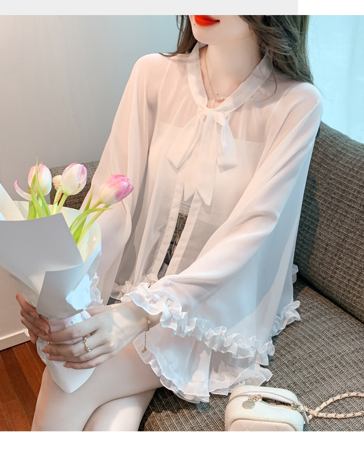 限量特惠|甜美木耳邊寬鬆雪紡罩衫(05H3865)