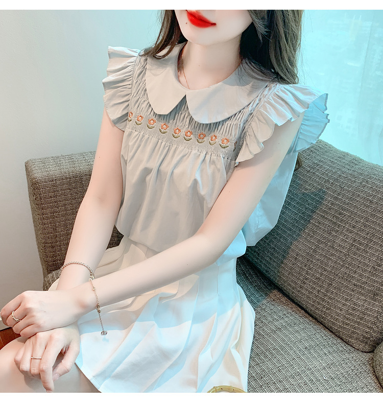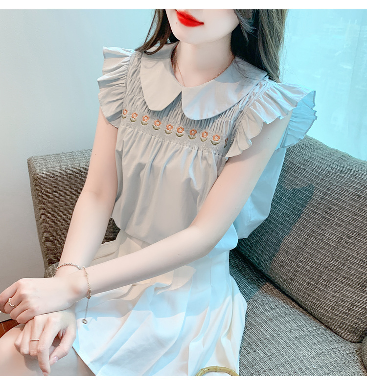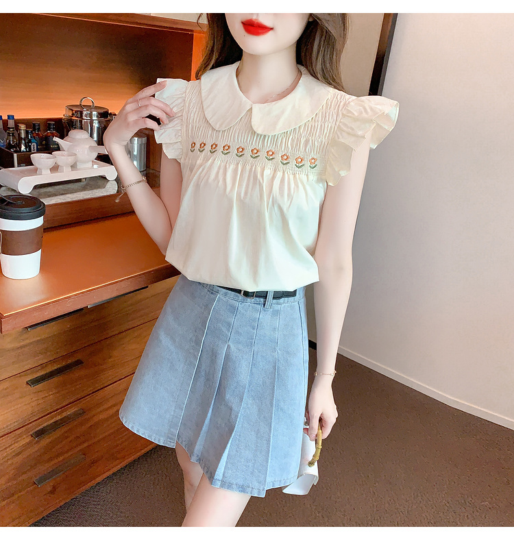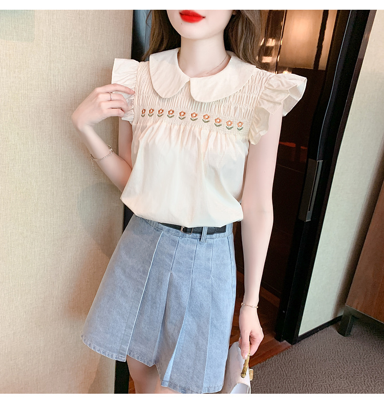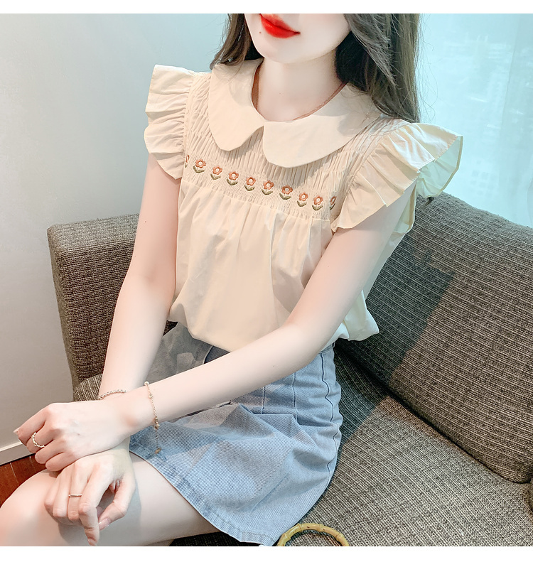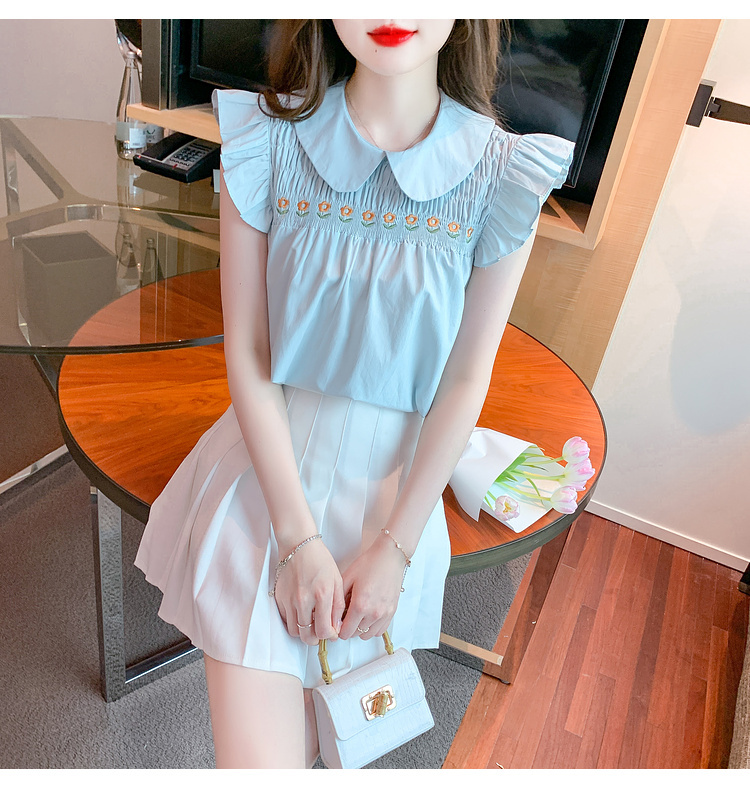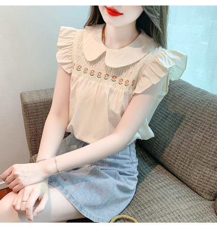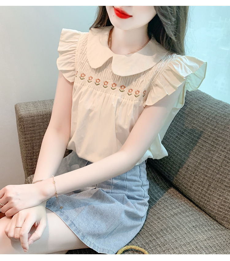 限量特惠|小清新甜美刺繡飛飛袖娃娃衫-2色(05H3868)