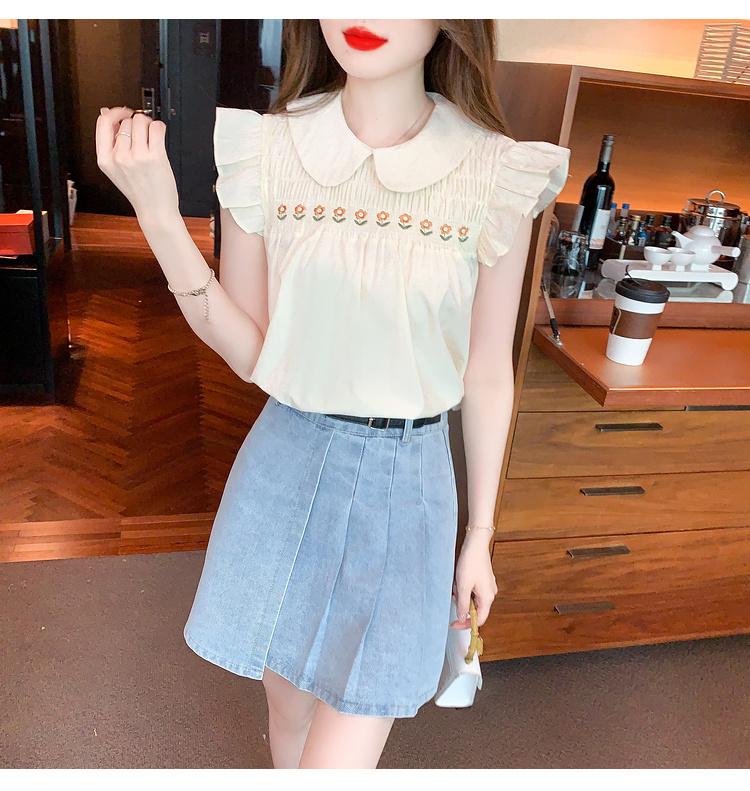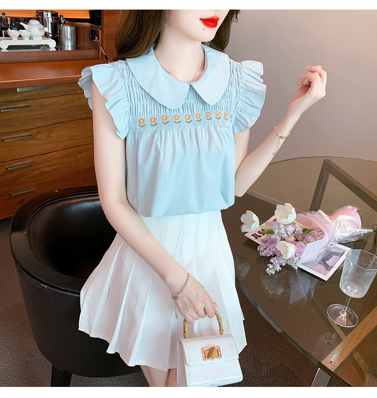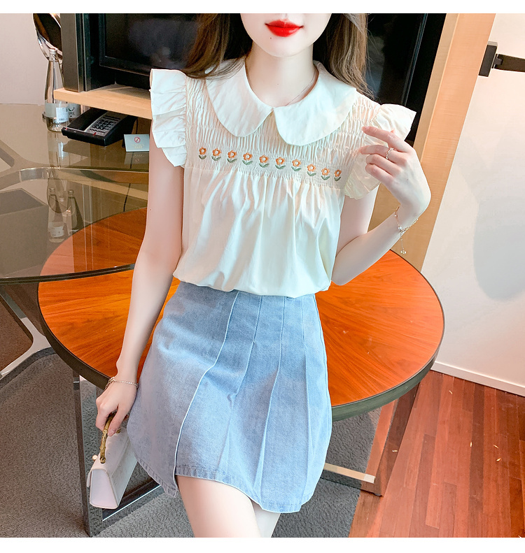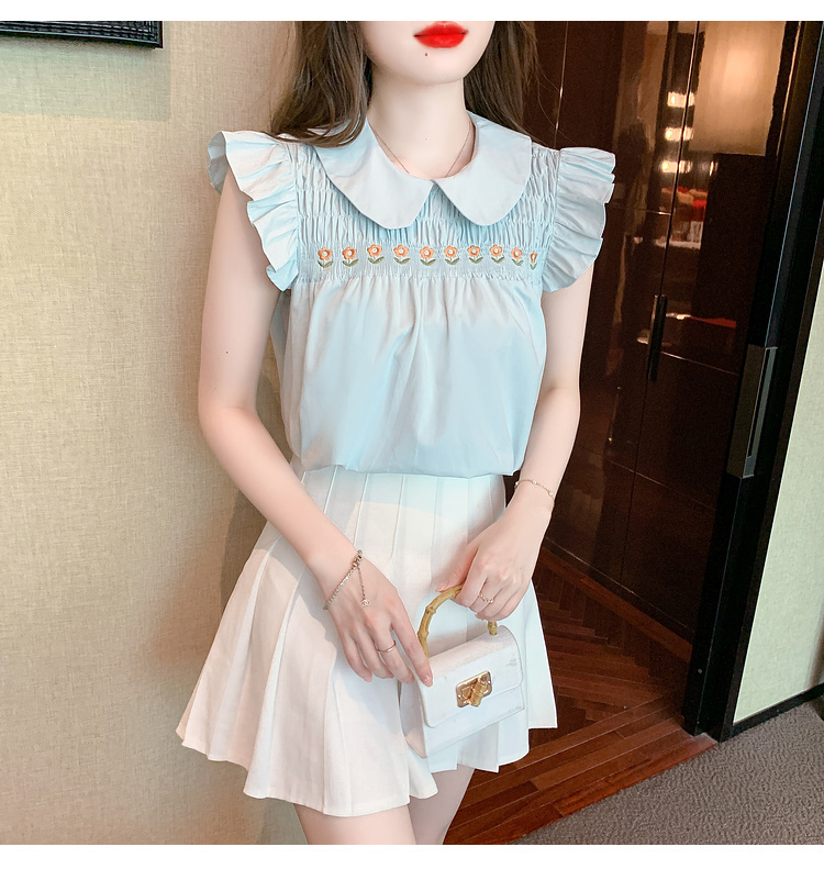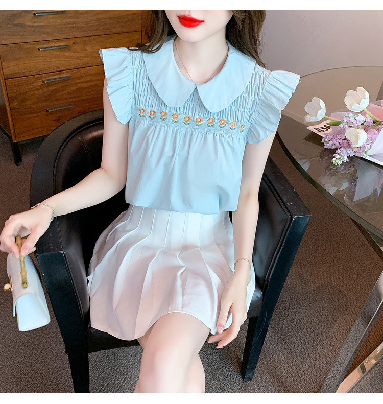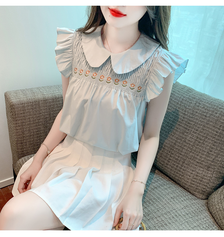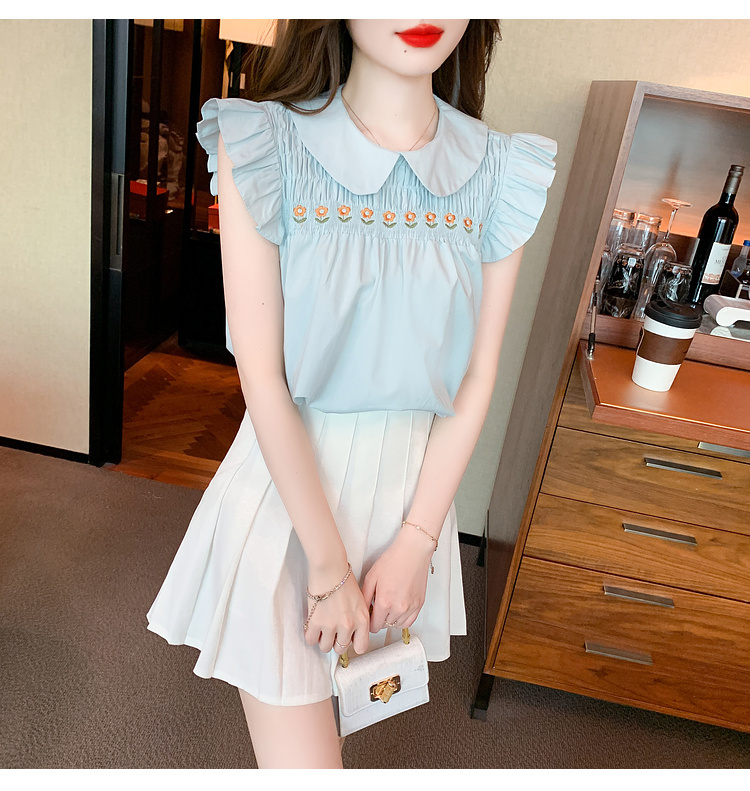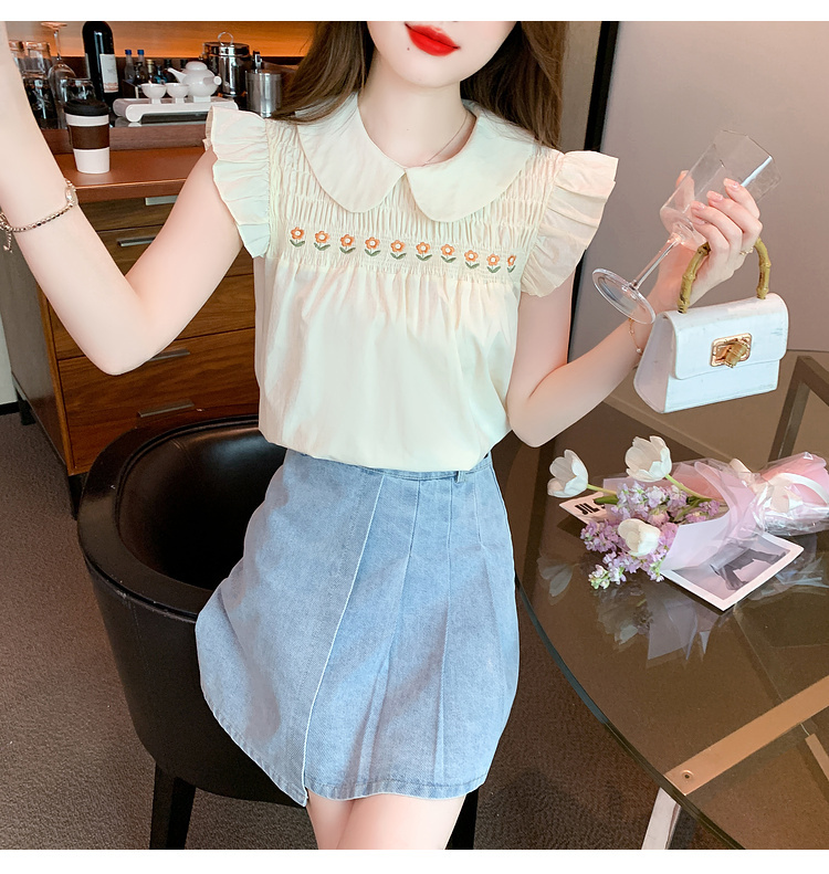 限量特惠|小清新甜美刺繡飛飛袖娃娃衫-2色(05H3868)