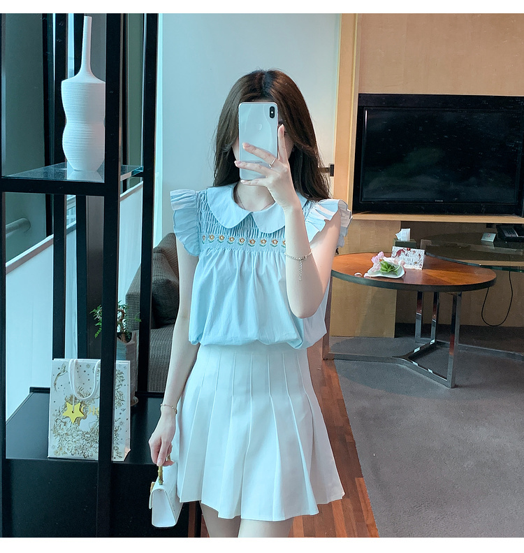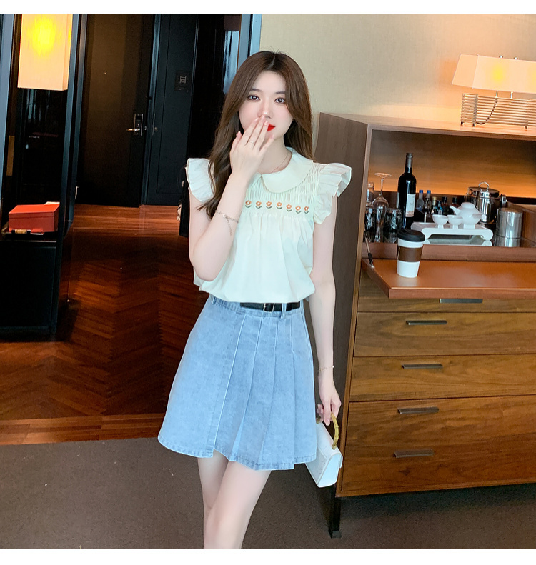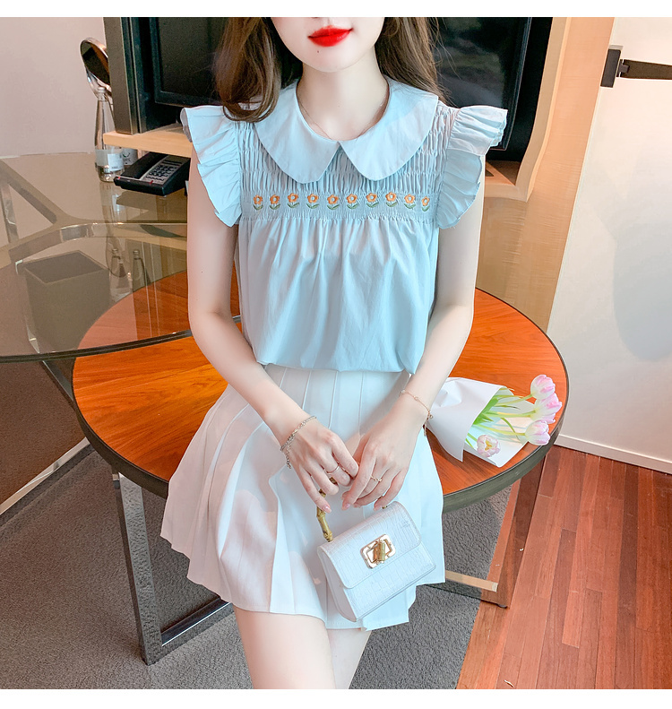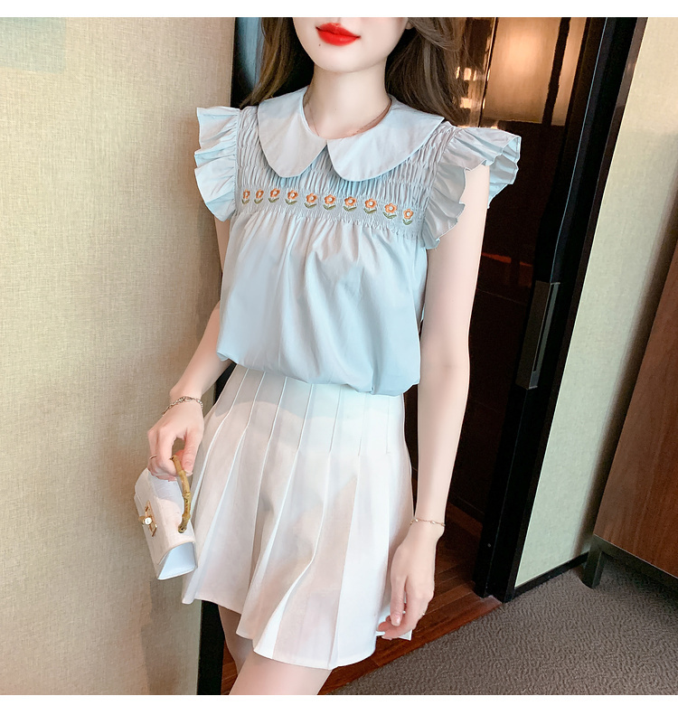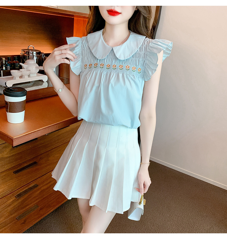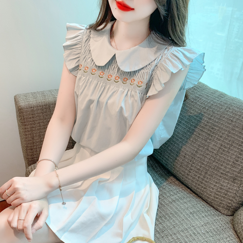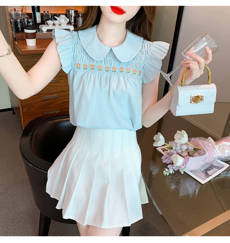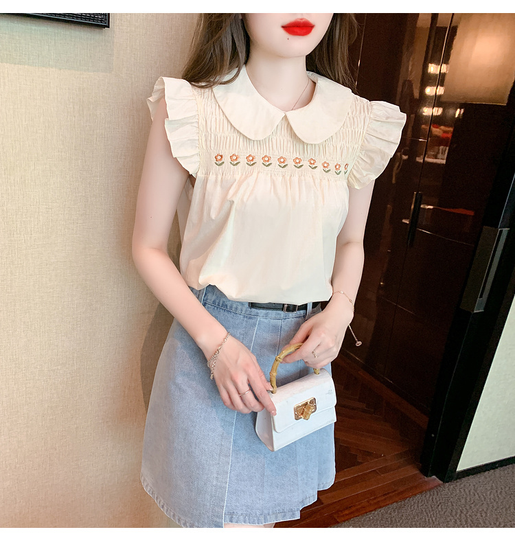限量特惠|小清新甜美刺繡飛飛袖娃娃衫-2色(05H3868)