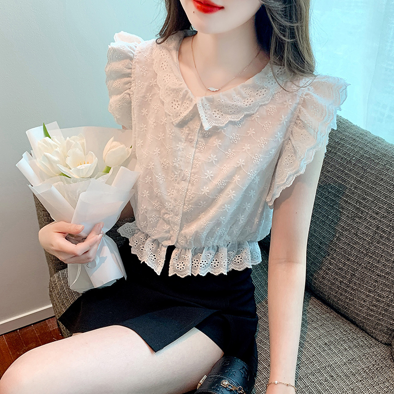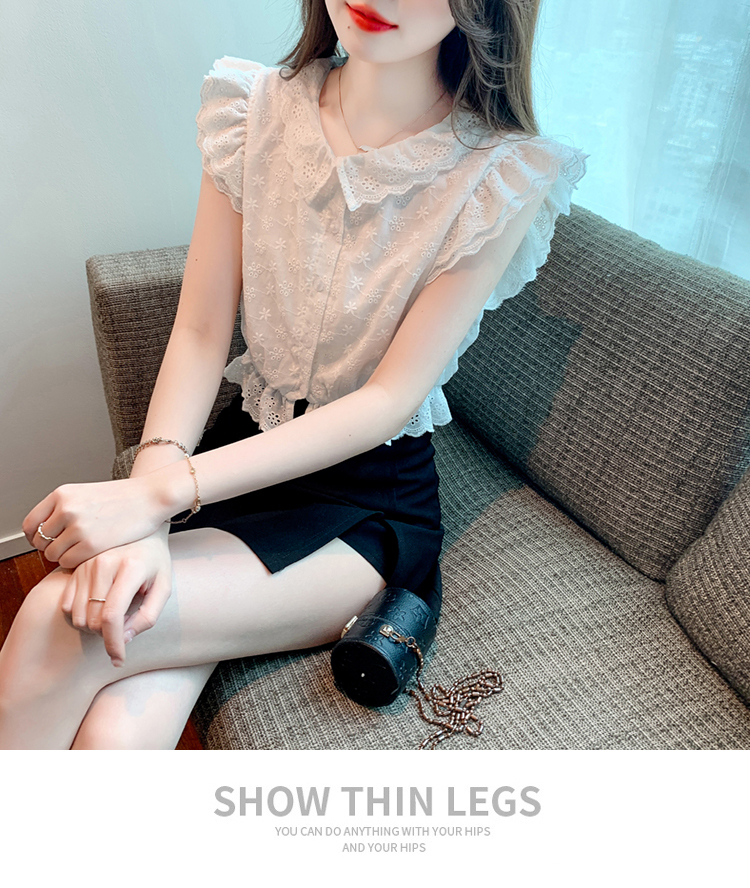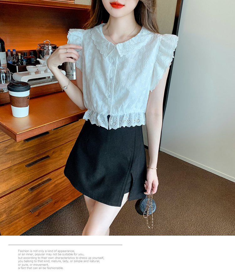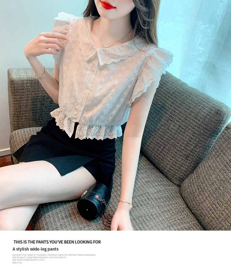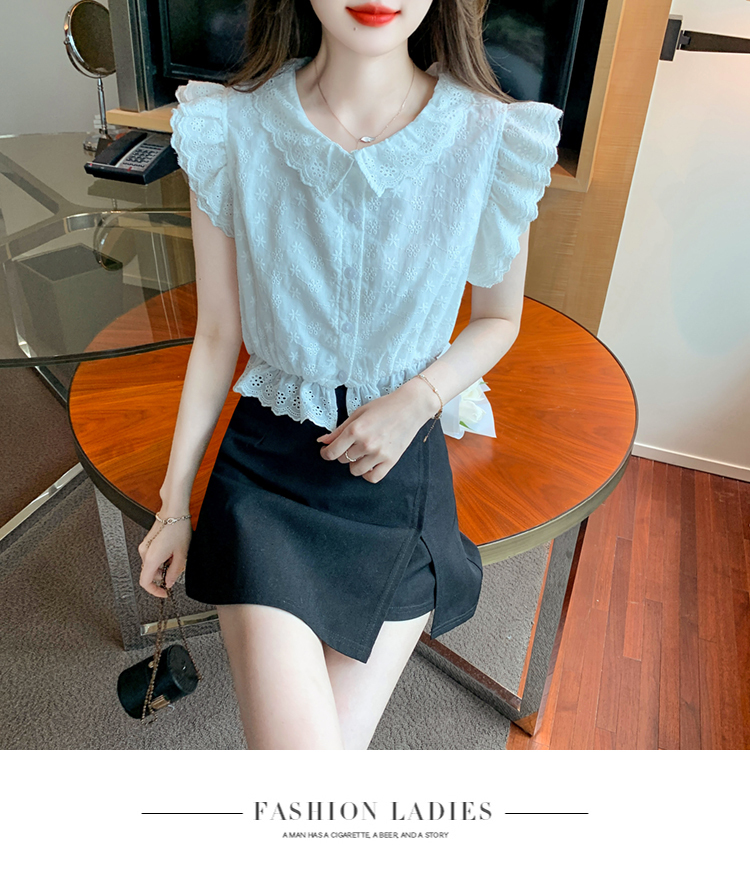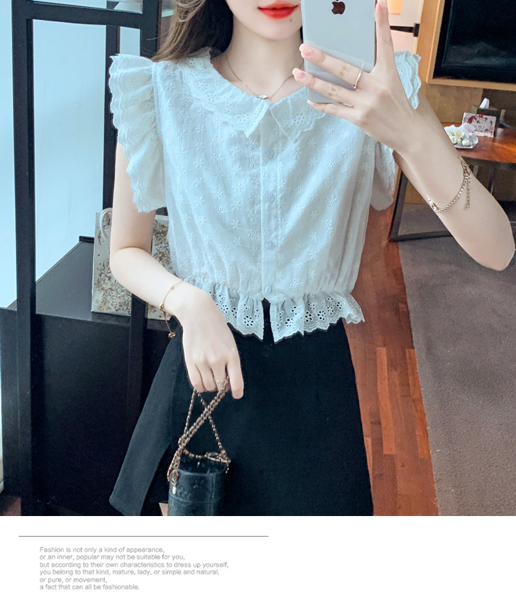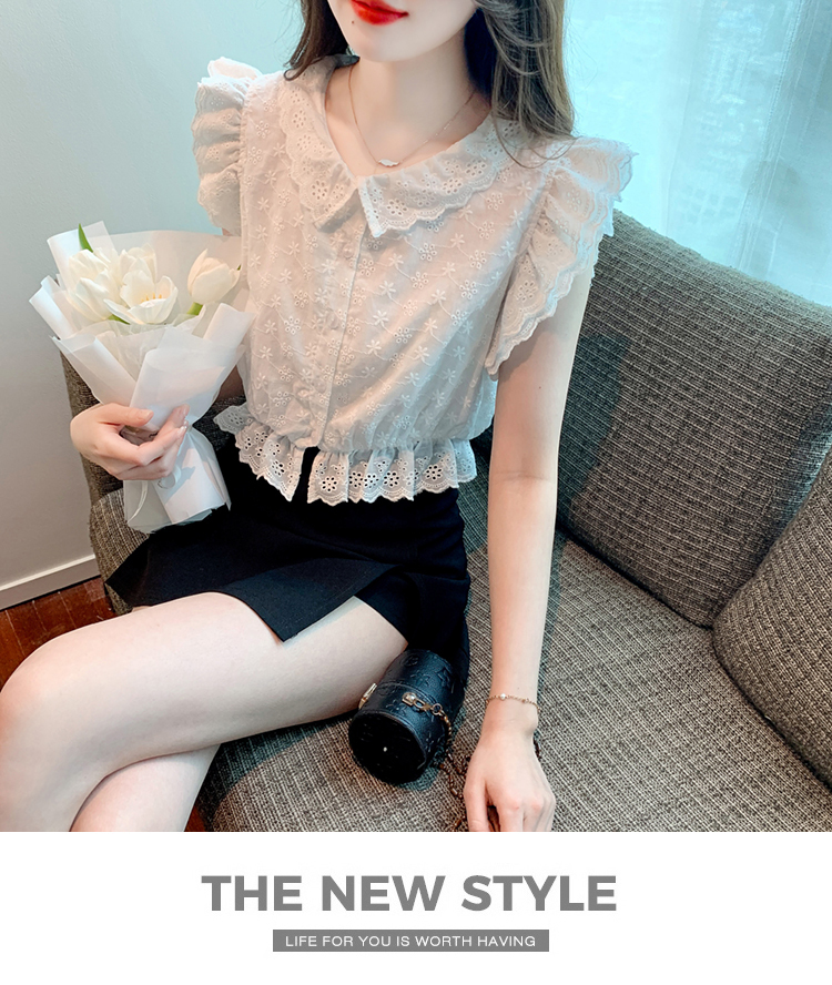 限量特惠|氣質甜美飛飛袖刺繡翻領襯衫(05H3889)