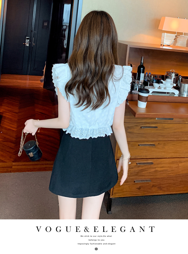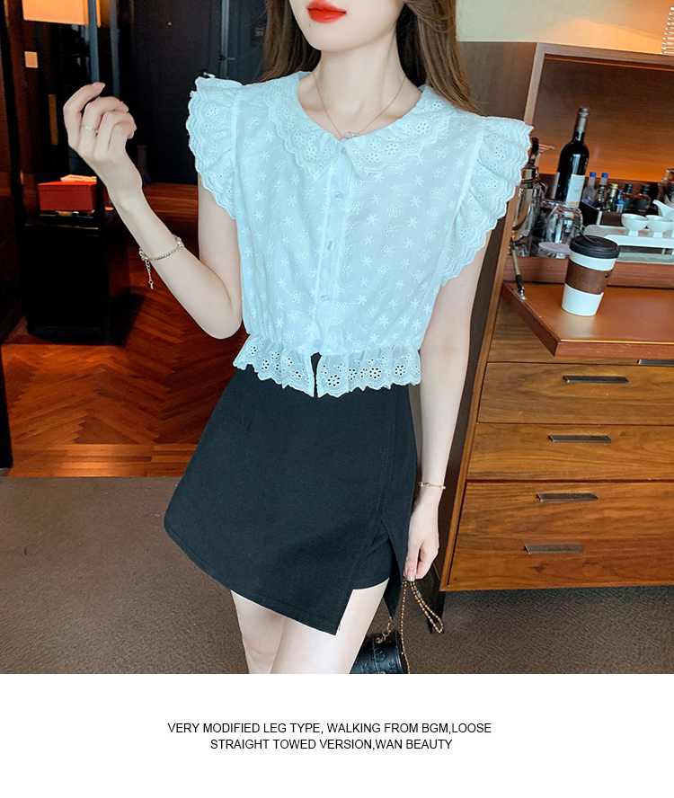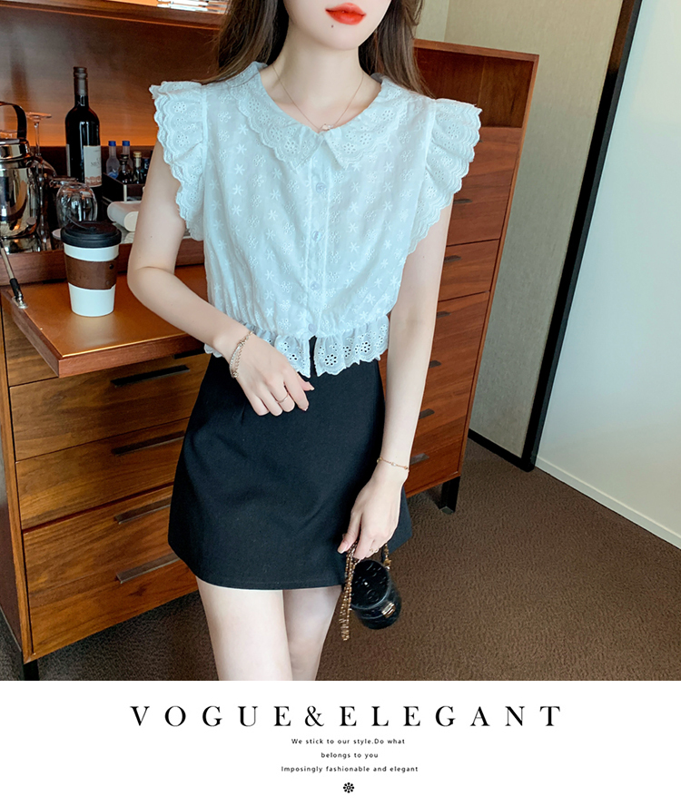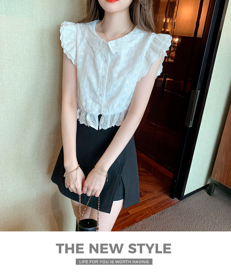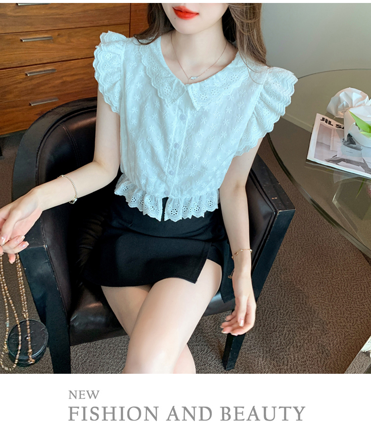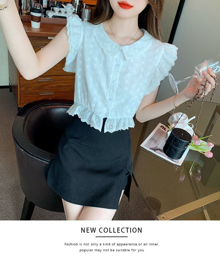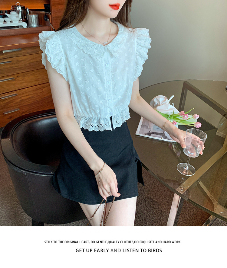 限量特惠|氣質甜美飛飛袖刺繡翻領襯衫(05H3889)