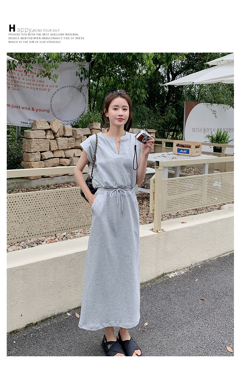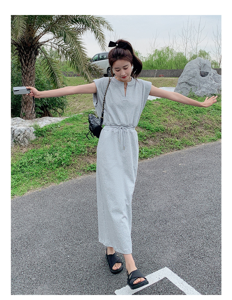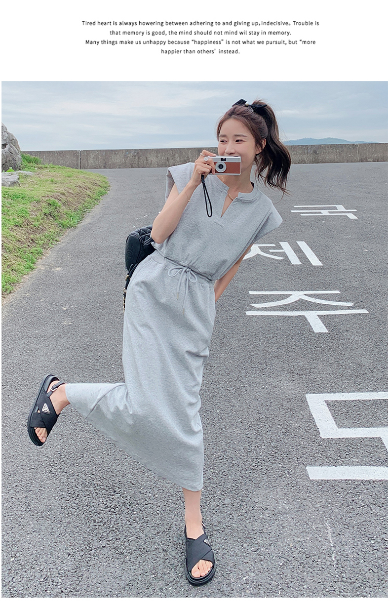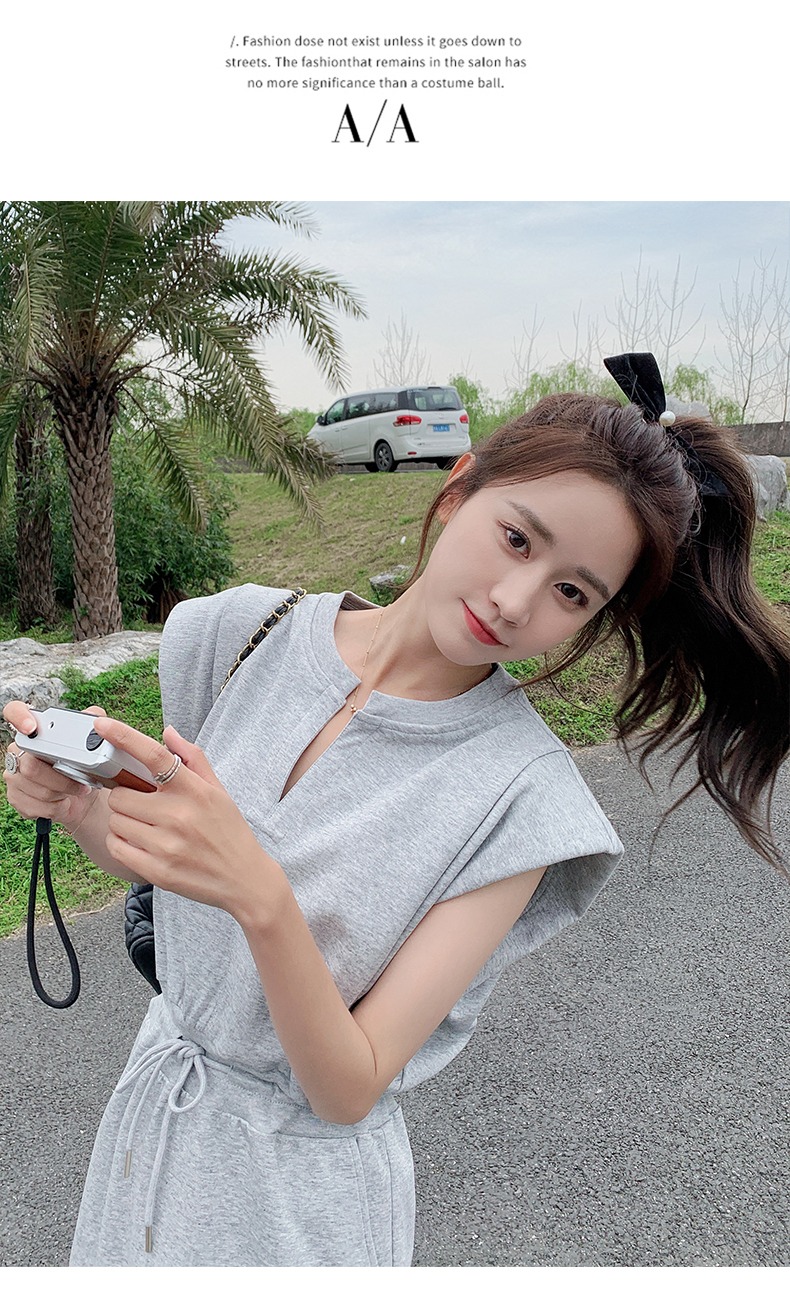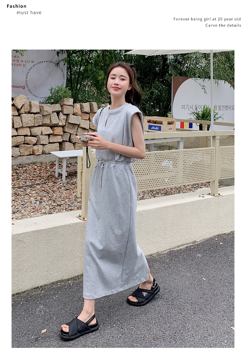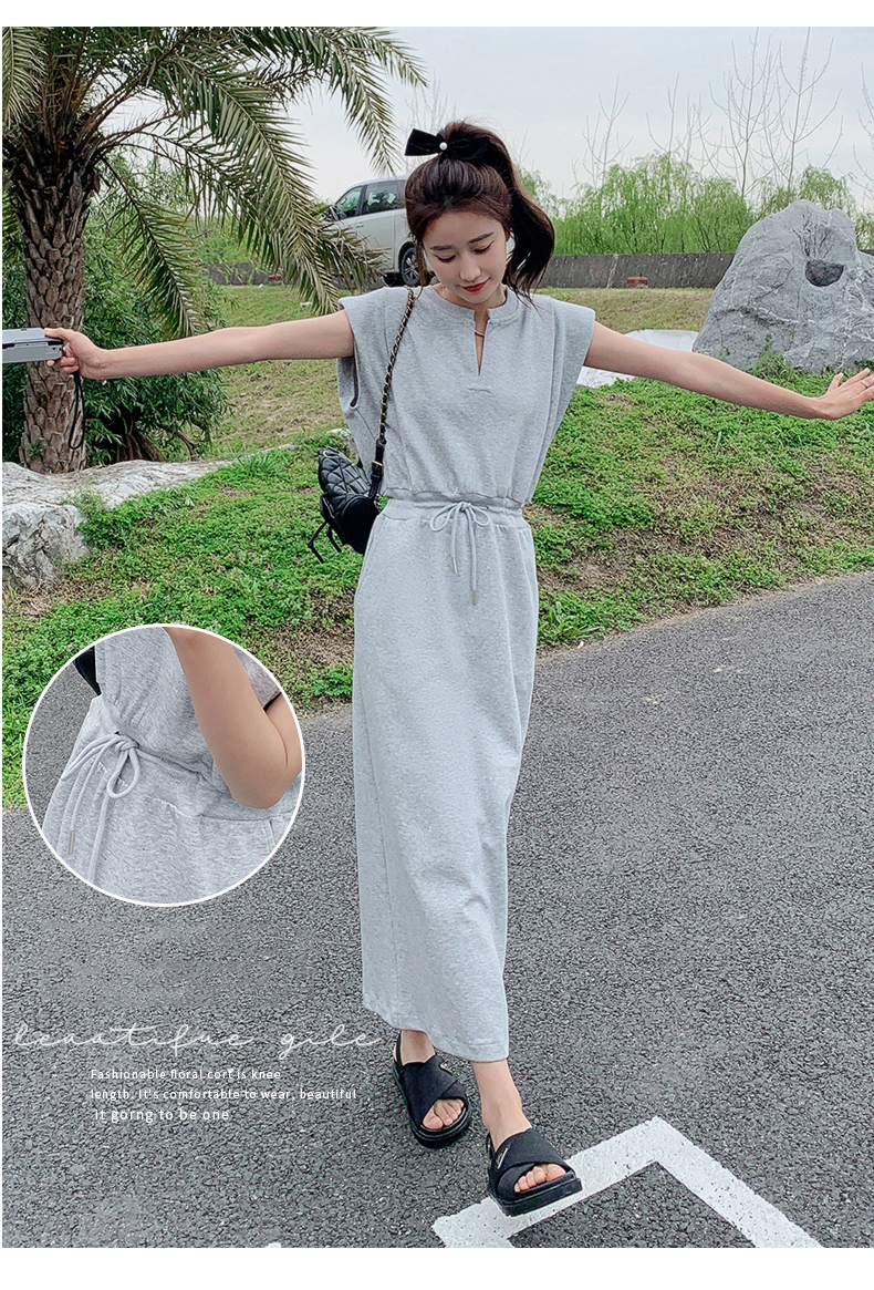 獨家訂製│韓系休閒感V領抽繩收腰開叉坎肩連身裙(05H3892)