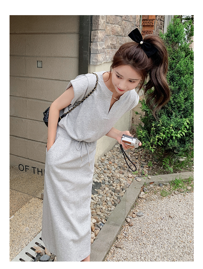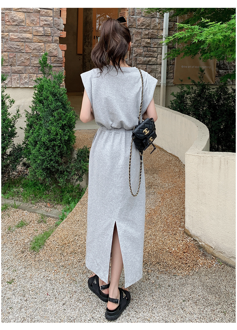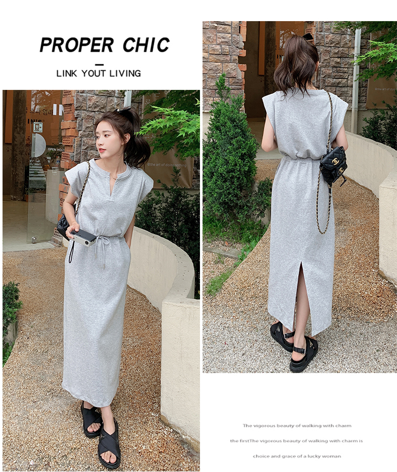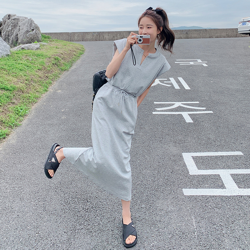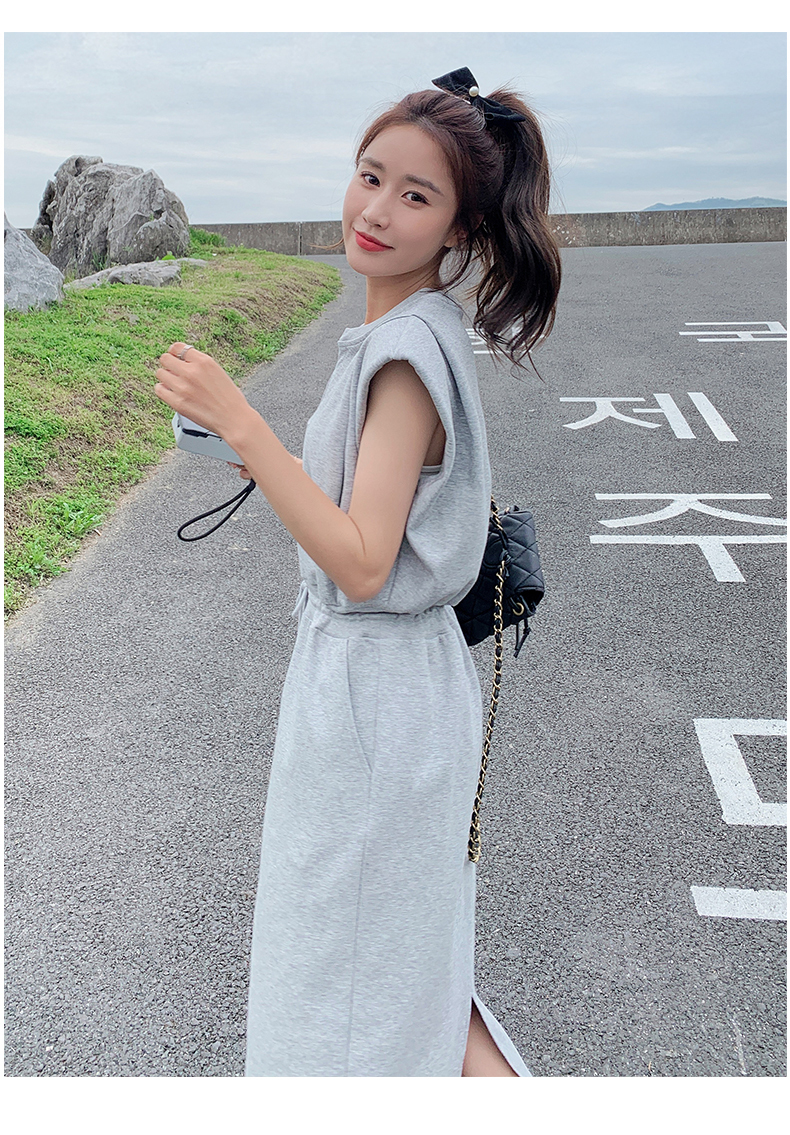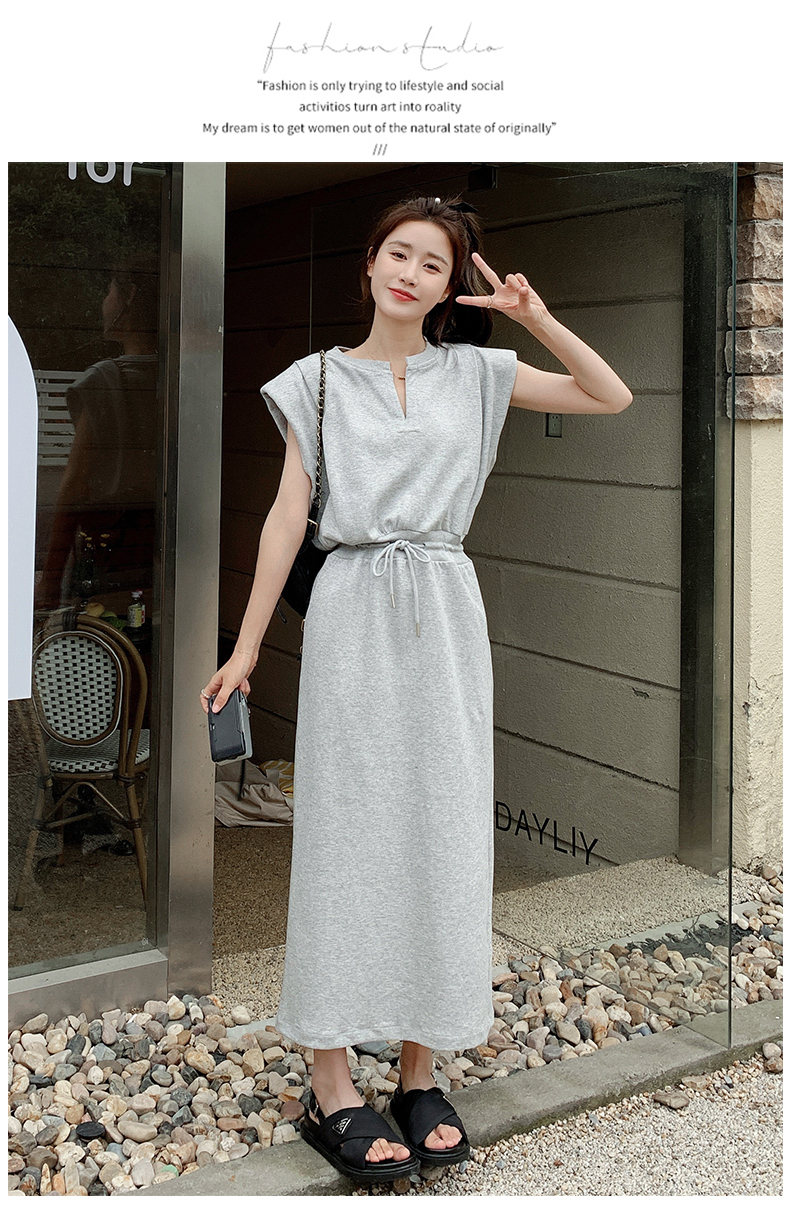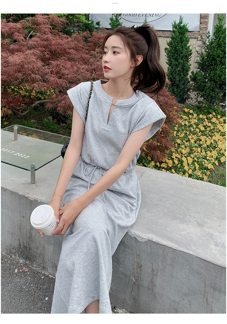 獨家訂製│韓系休閒感V領抽繩收腰開叉坎肩連身裙(05H3892)