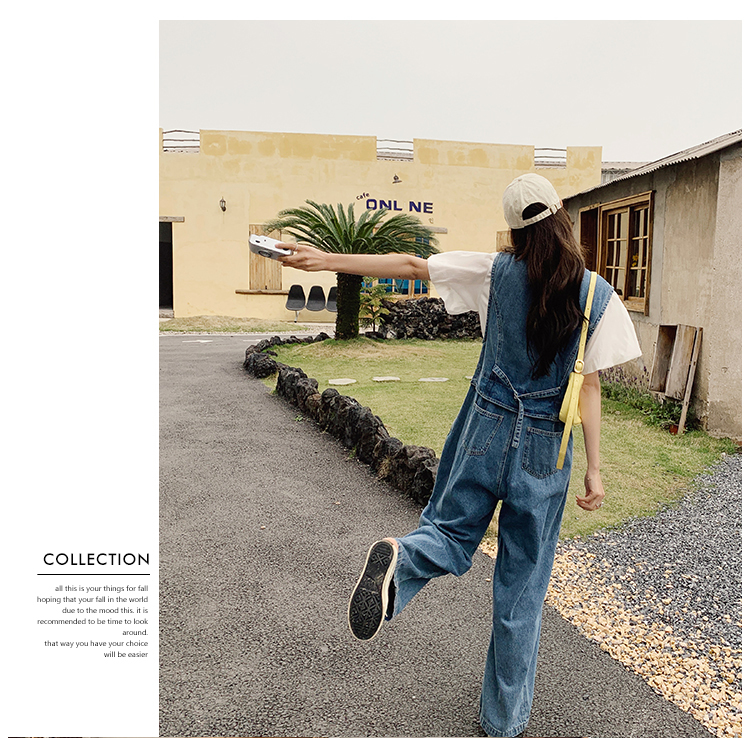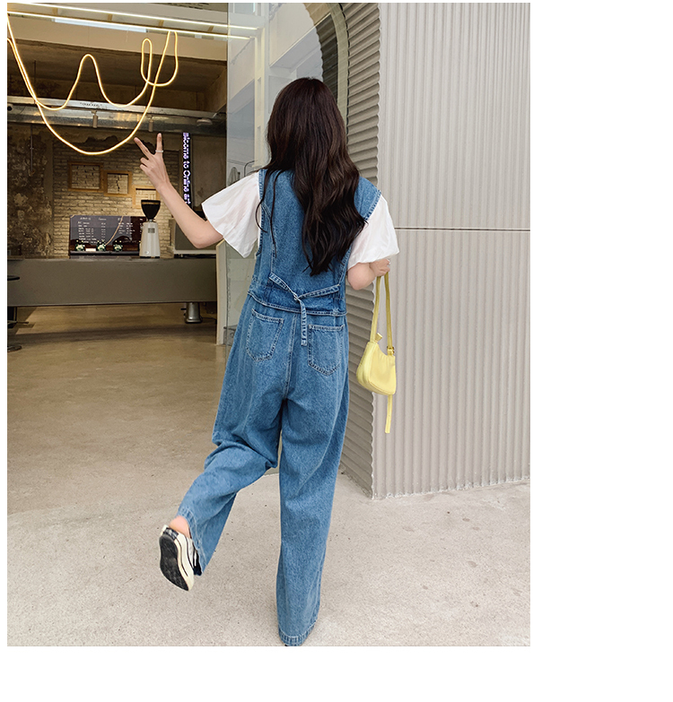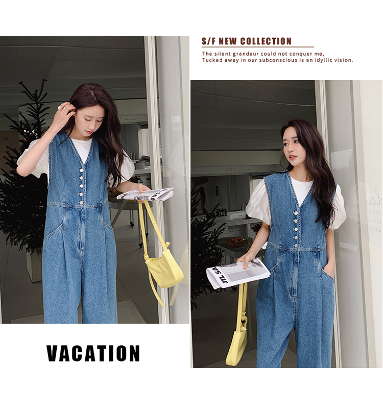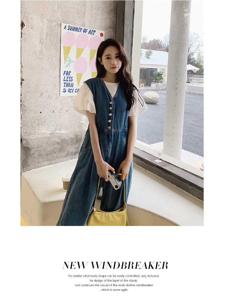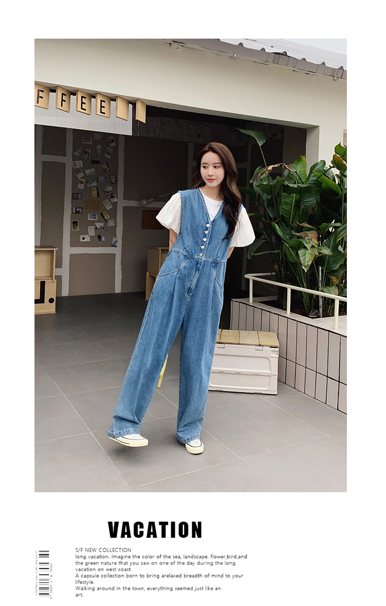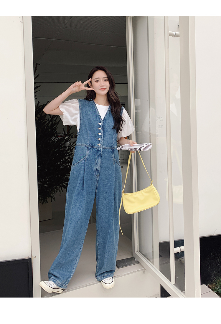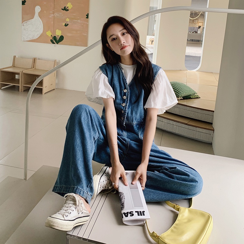 獨家訂製│韓系甜酷風單排釦牛仔吊帶褲(05H3911)