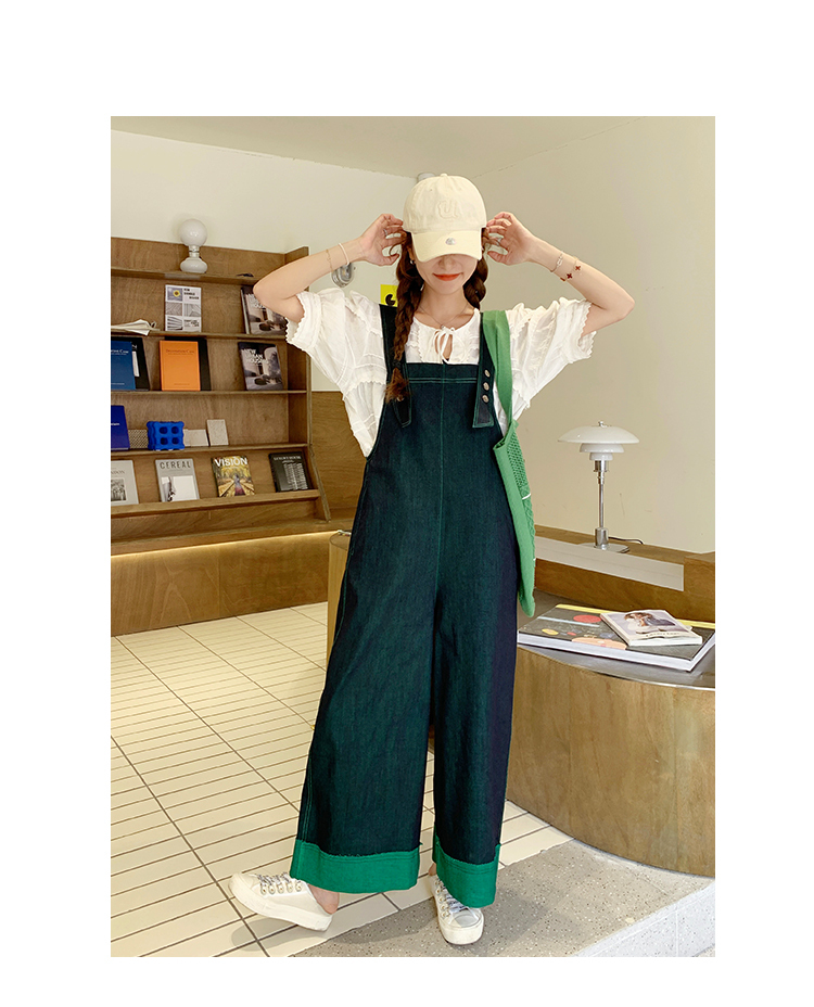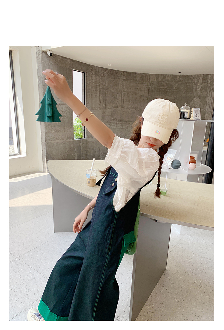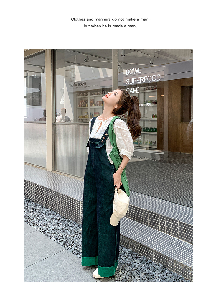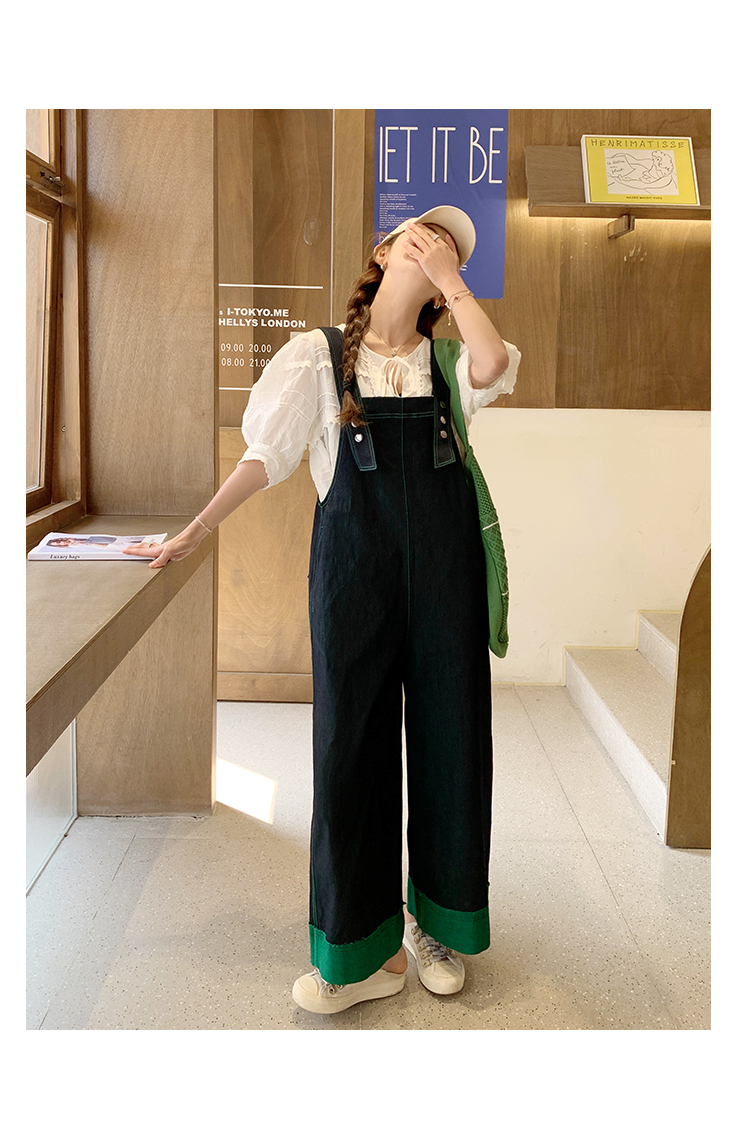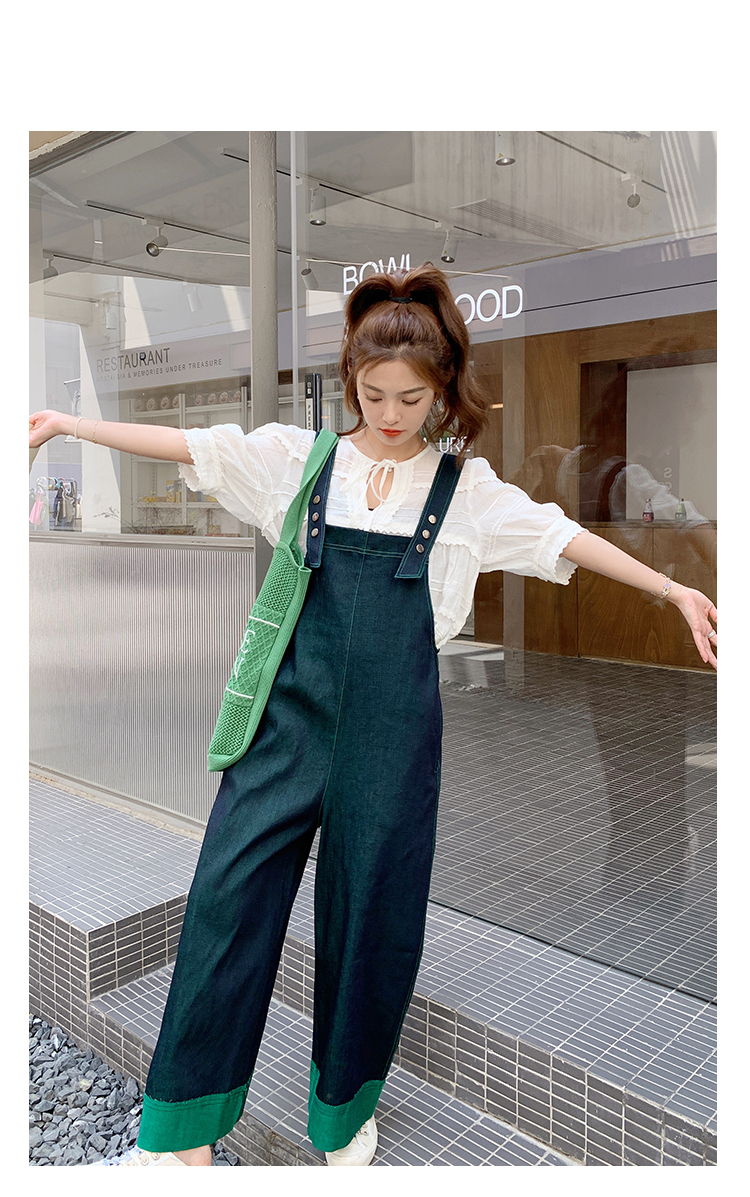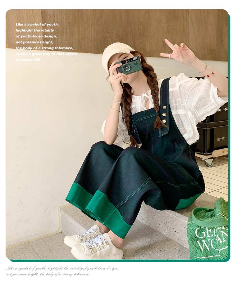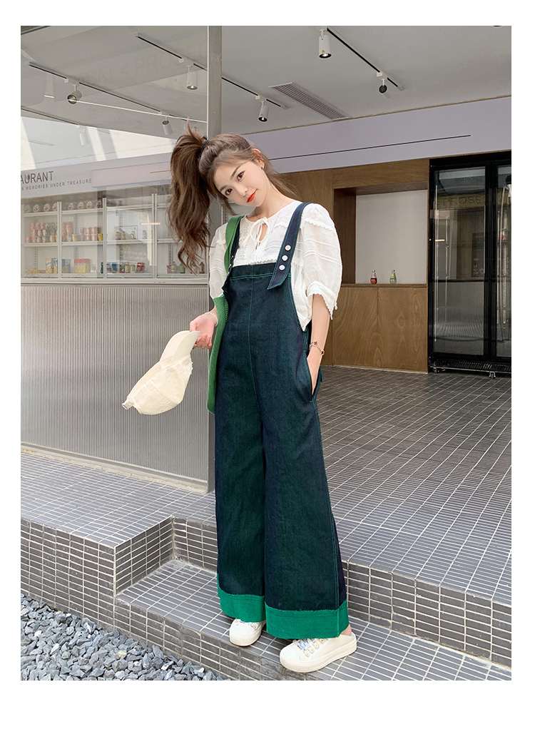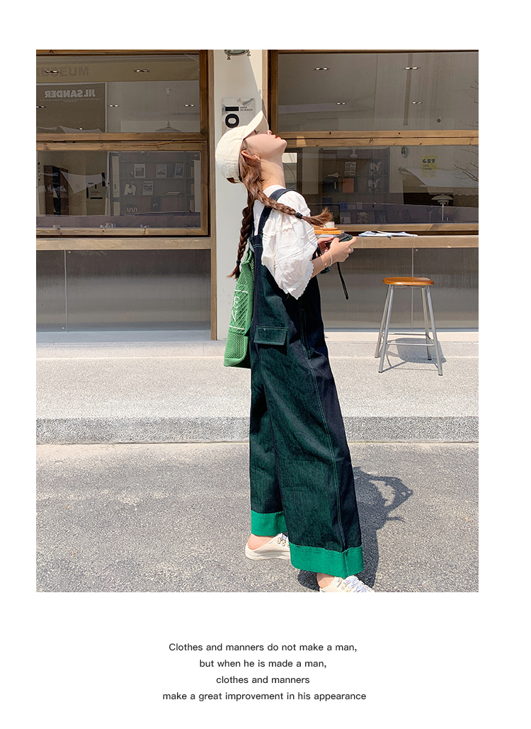 獨家訂製│韓系甜酷風撞色拼接大闊腿牛仔吊帶褲(05H3912)