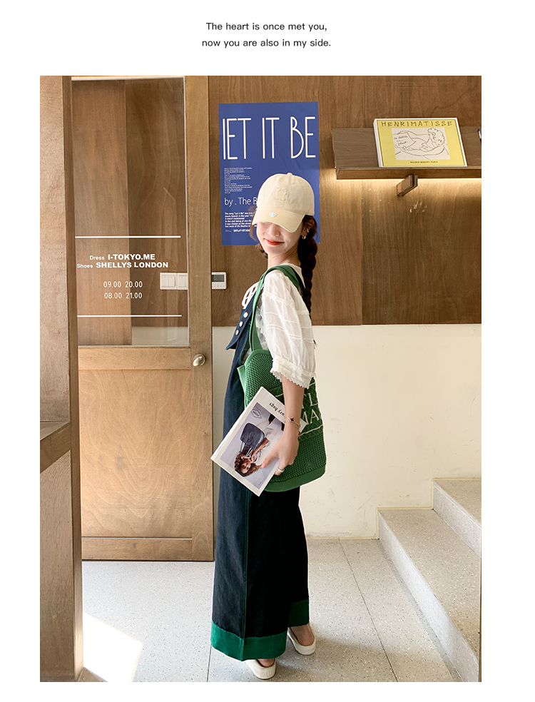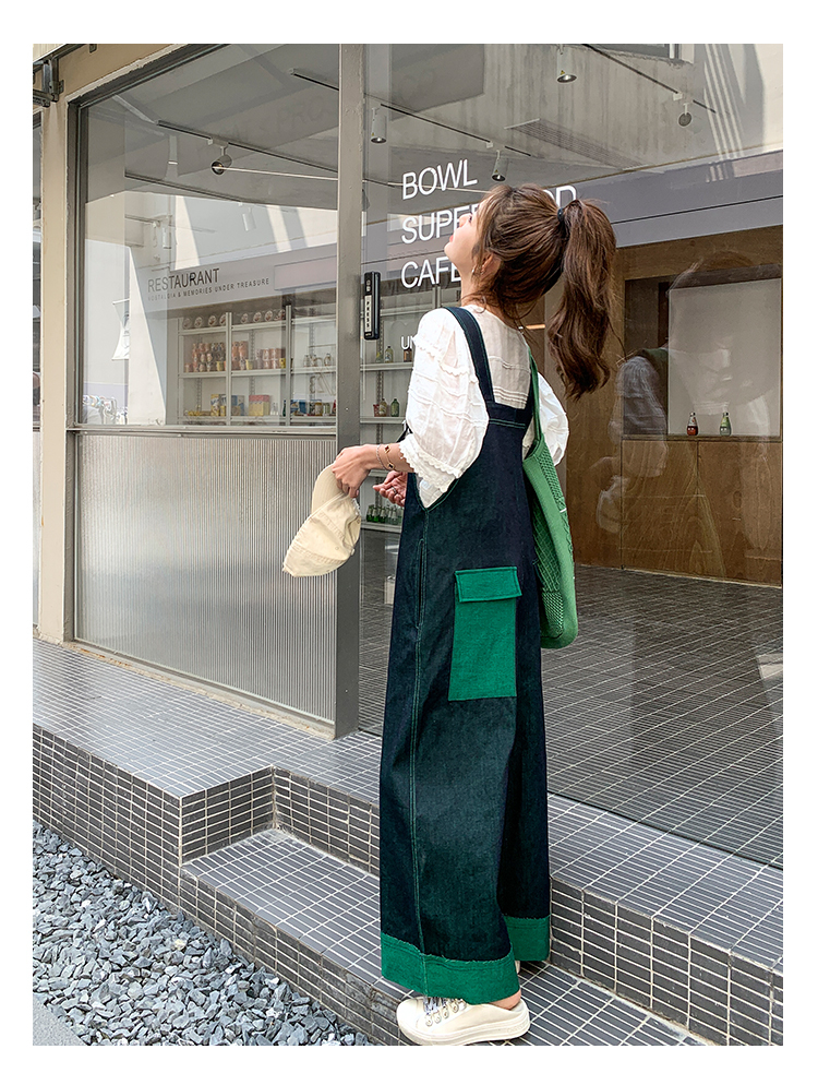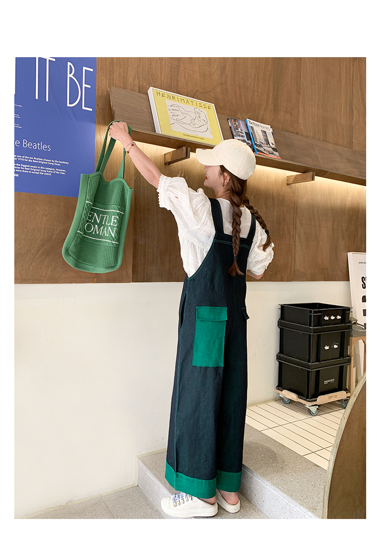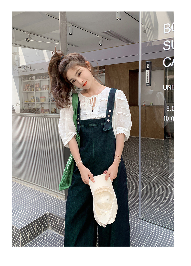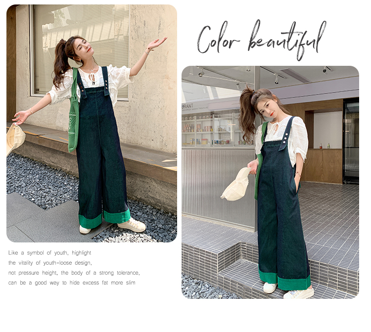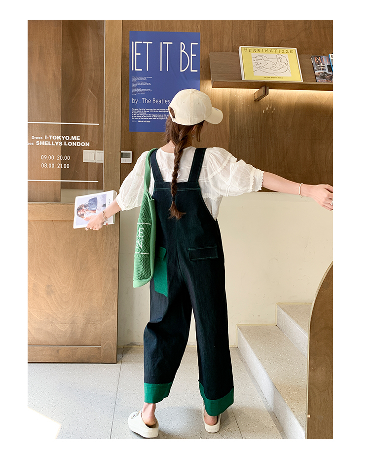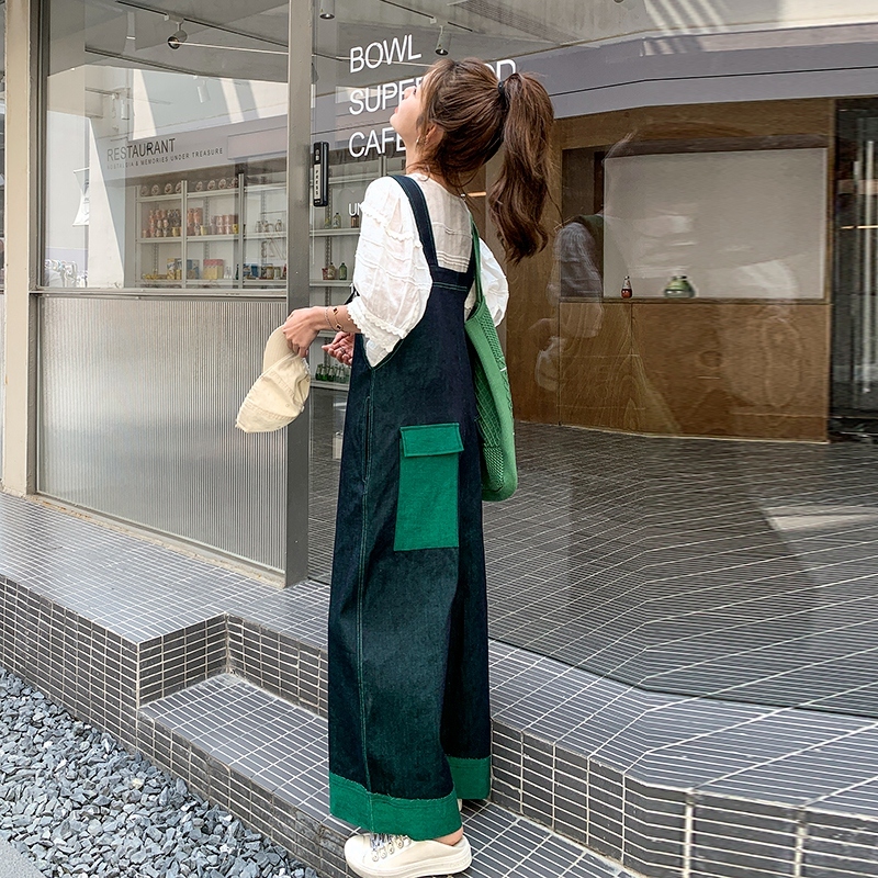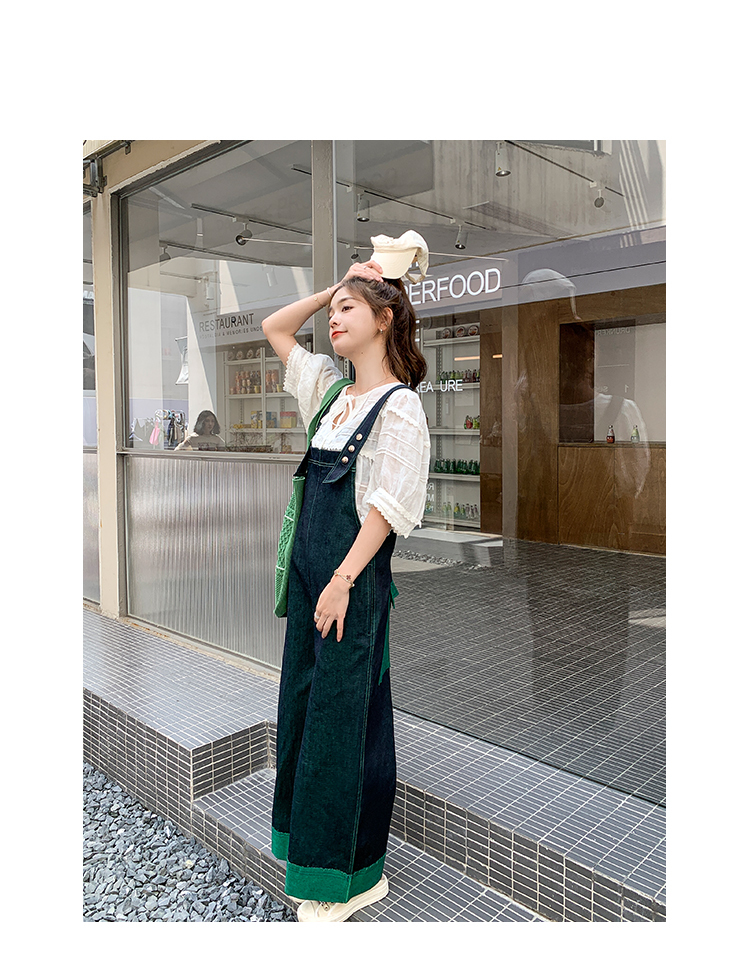 獨家訂製│韓系甜酷風撞色拼接大闊腿牛仔吊帶褲(05H3912)