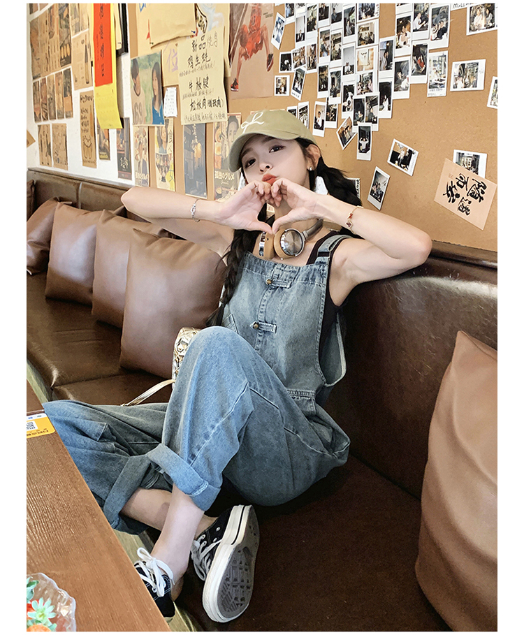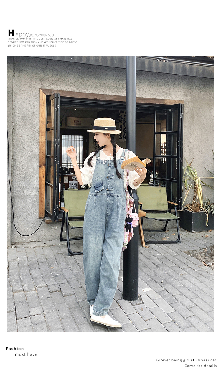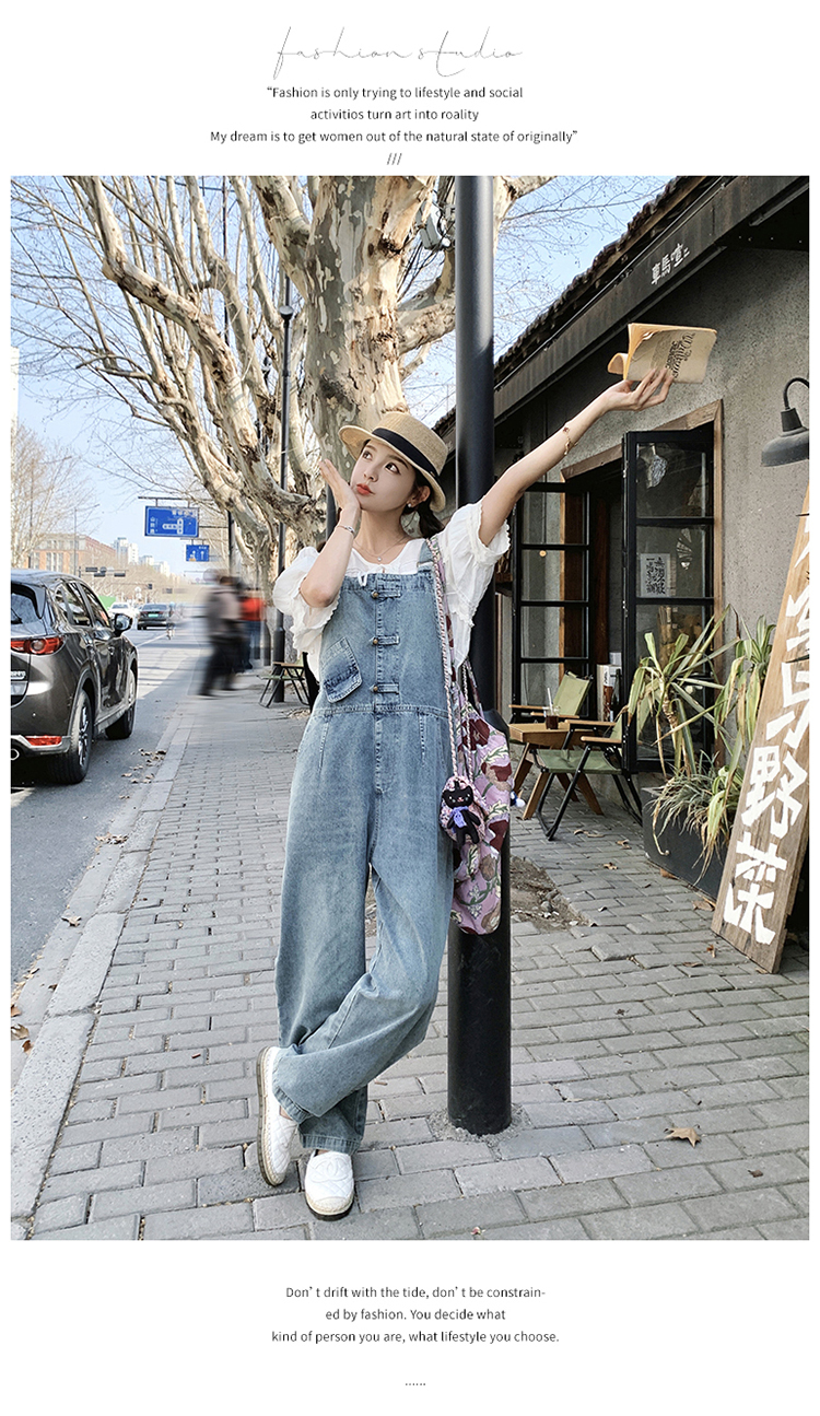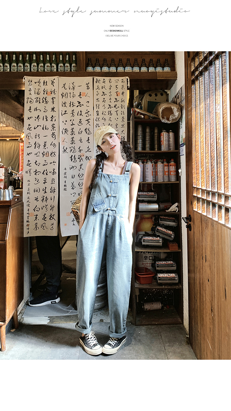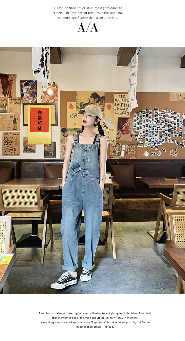 獨家訂製│韓系甜酷風立體口袋盤釦造型牛仔吊帶褲(05H6183)