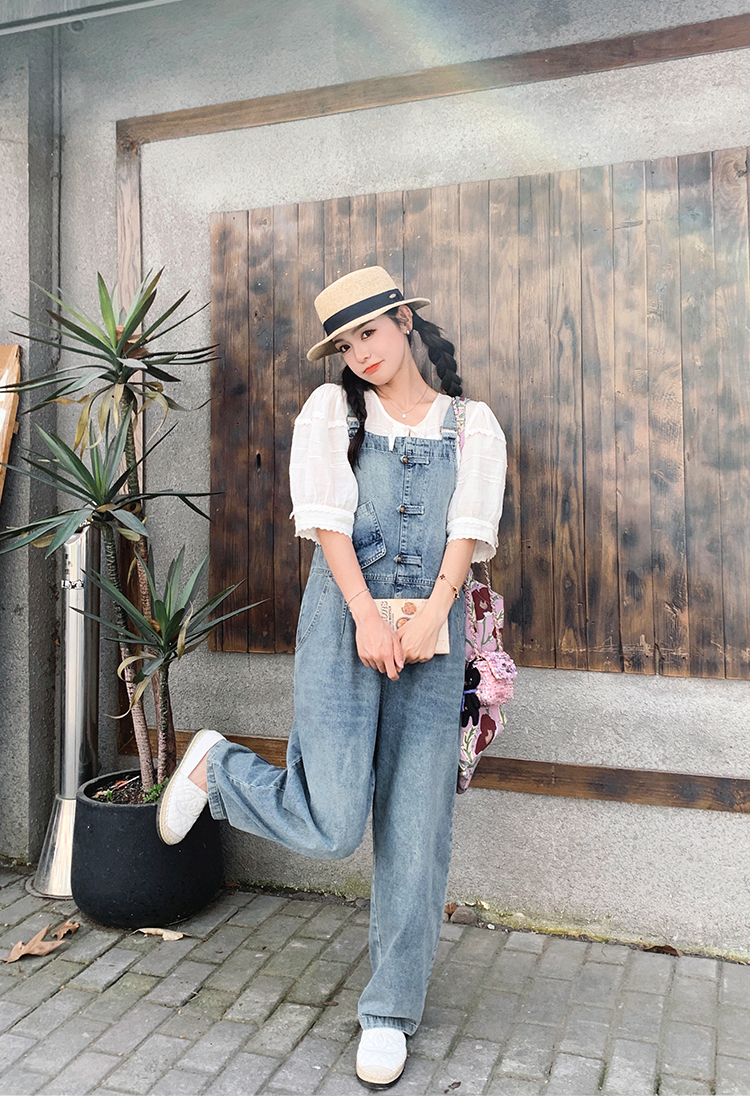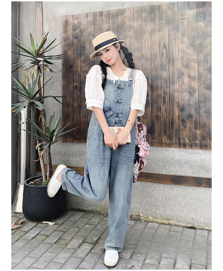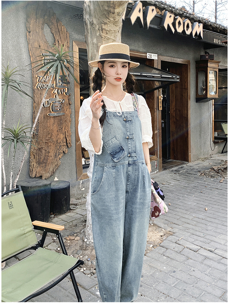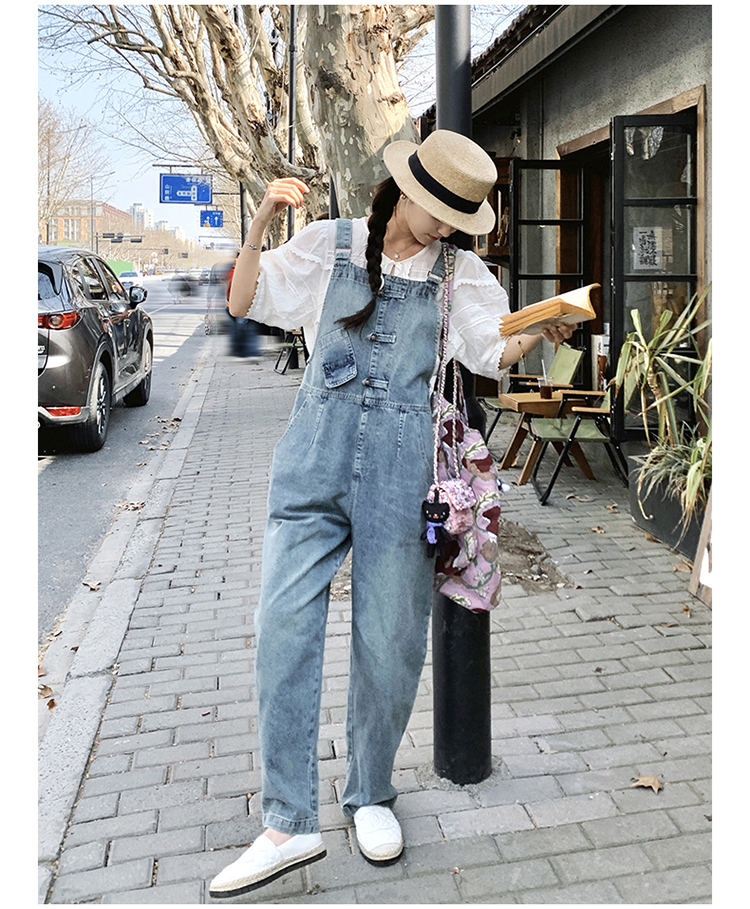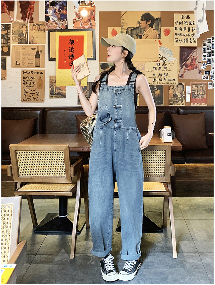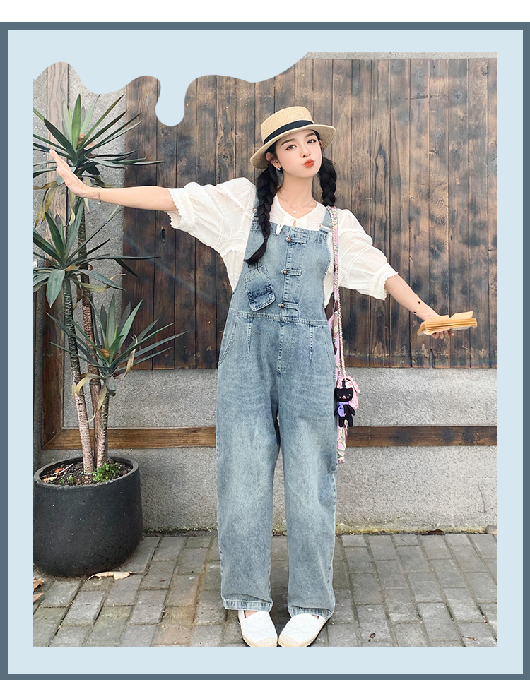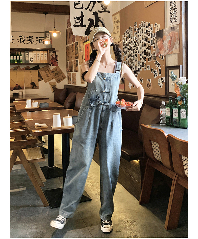 獨家訂製│韓系甜酷風立體口袋盤釦造型牛仔吊帶褲(05H6183)