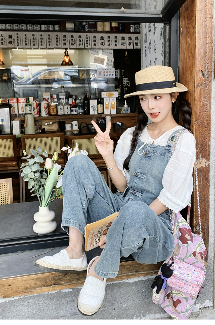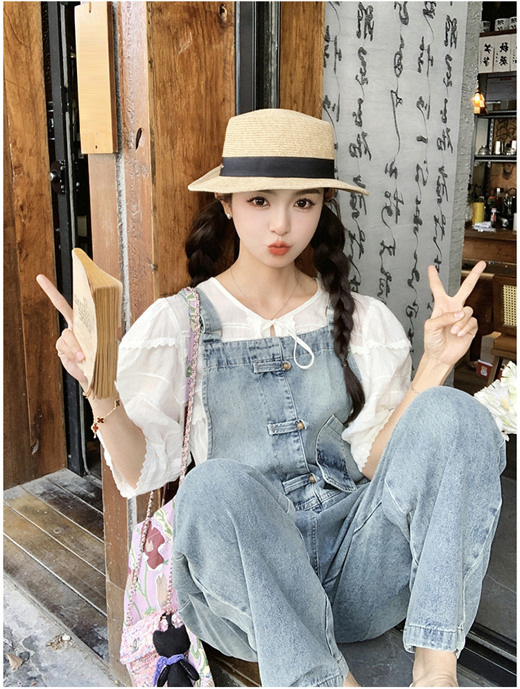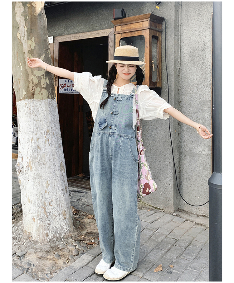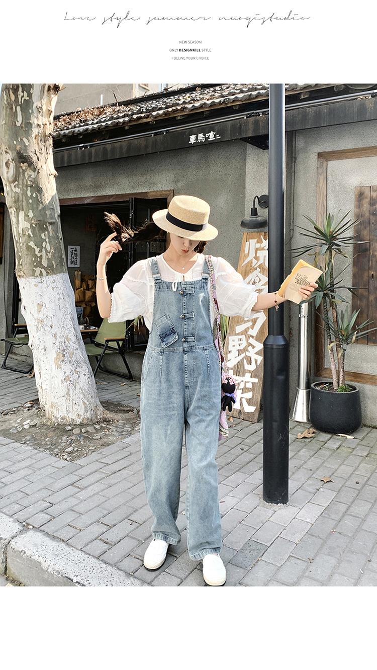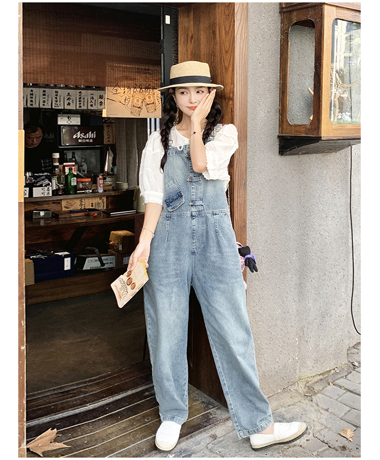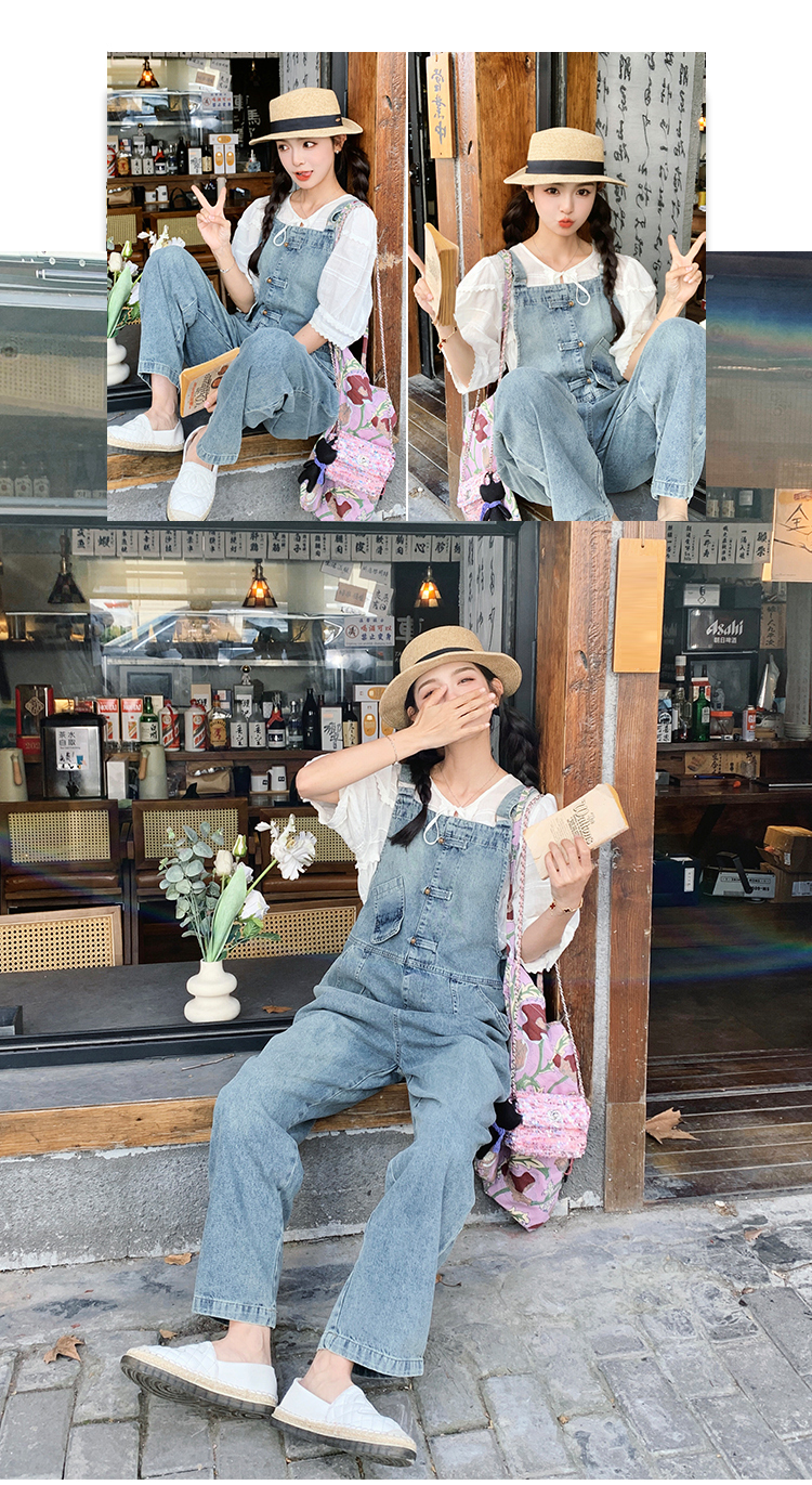 獨家訂製│韓系甜酷風立體口袋盤釦造型牛仔吊帶褲(05H6183)