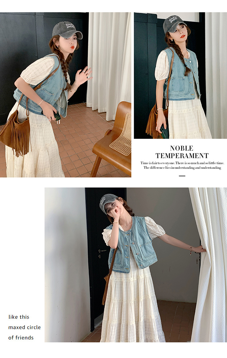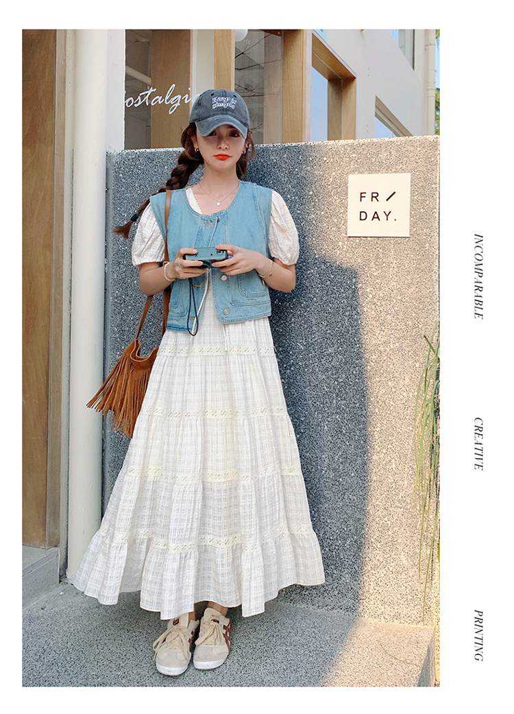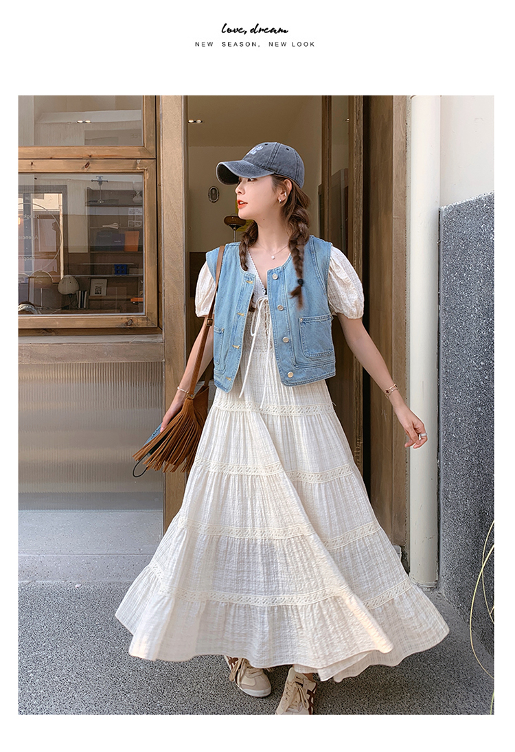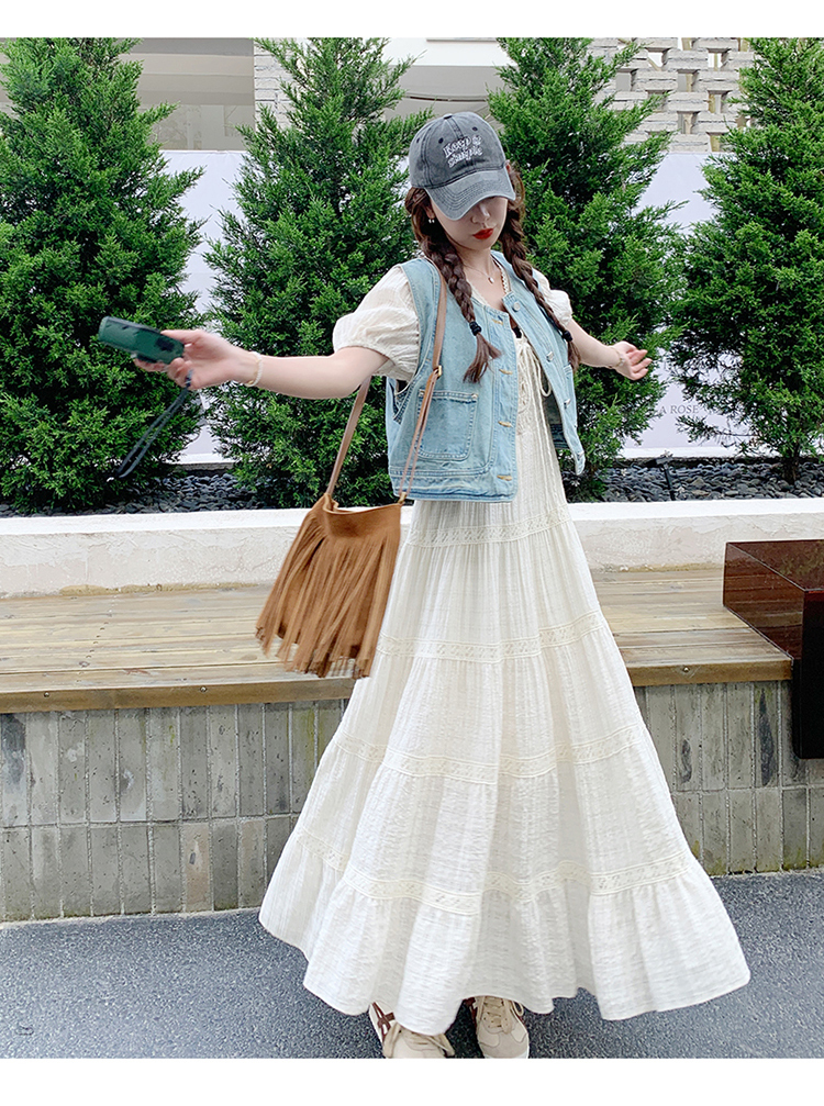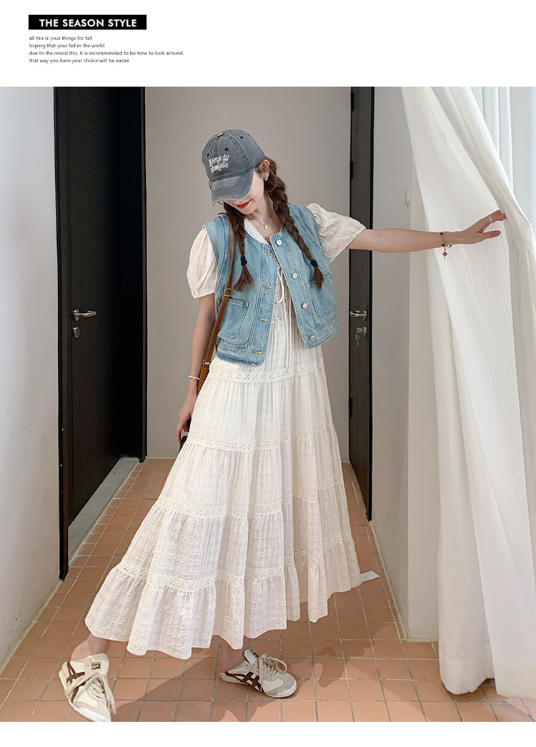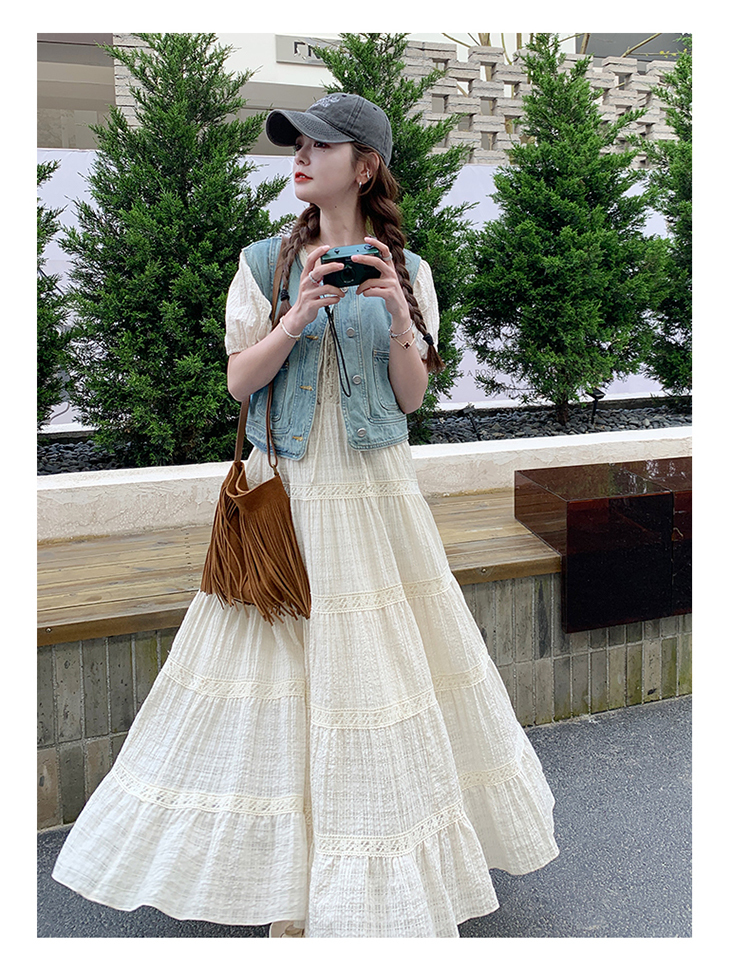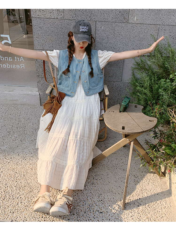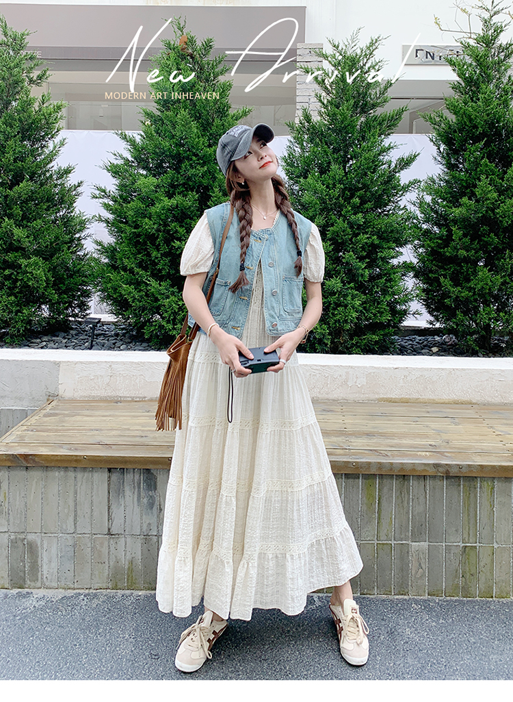 🔺面料:牛仔布+高絲雪紡+蕾絲+內襯(聚酯纖維)