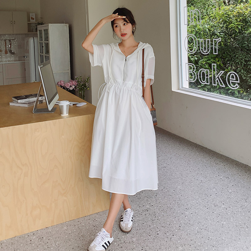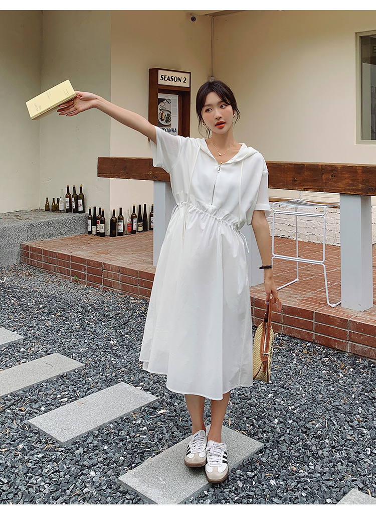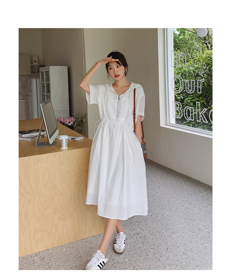 獨家訂製│韓系減齡感連帽收腰連衣裙(05H6208)