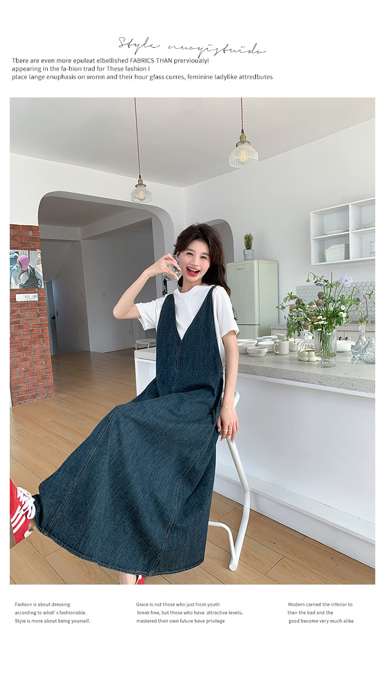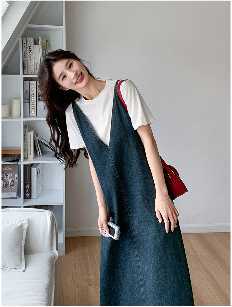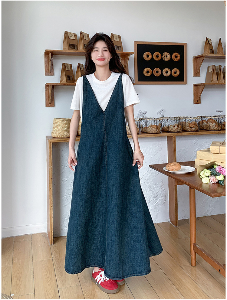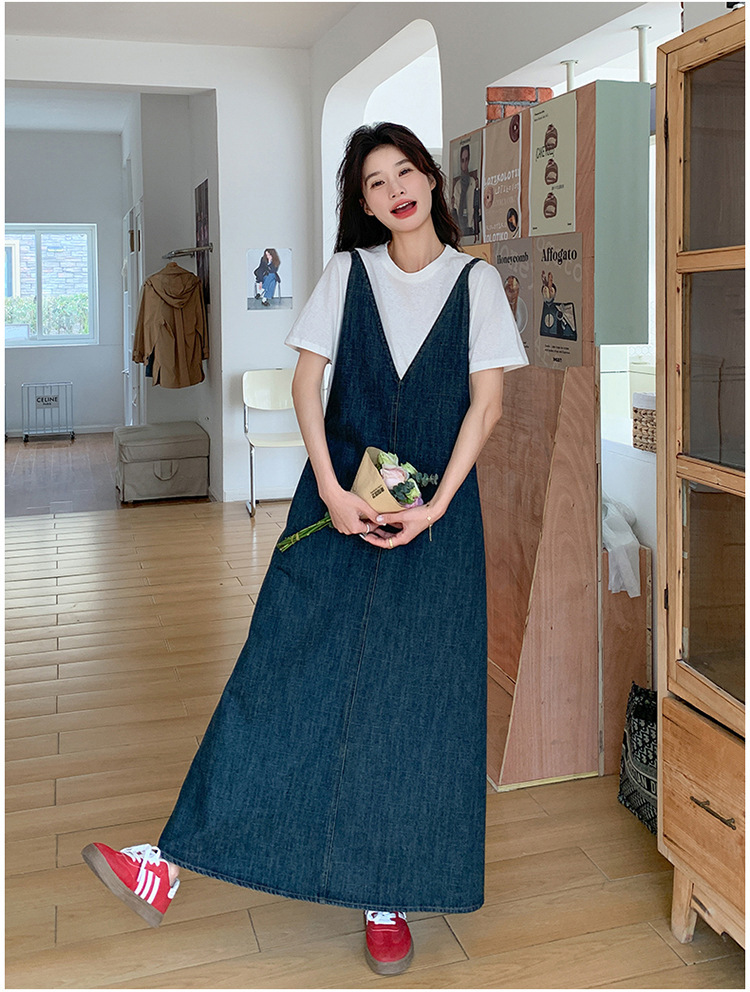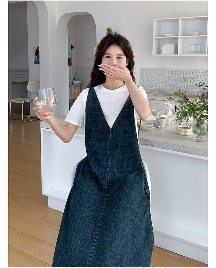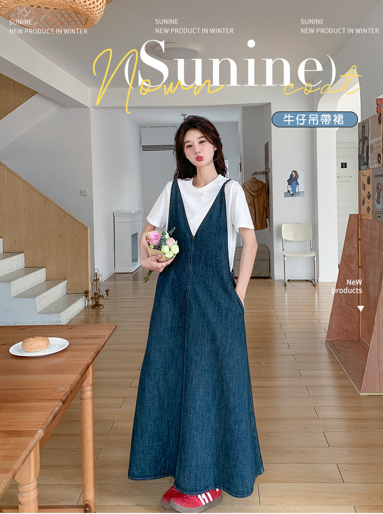 獨家訂製│韓系甜姐兒V字牛仔吊帶裙-2版型(05H6218)