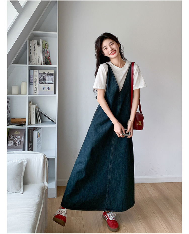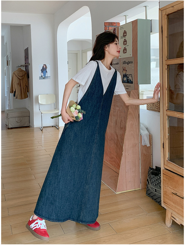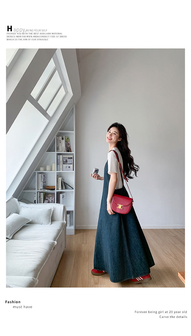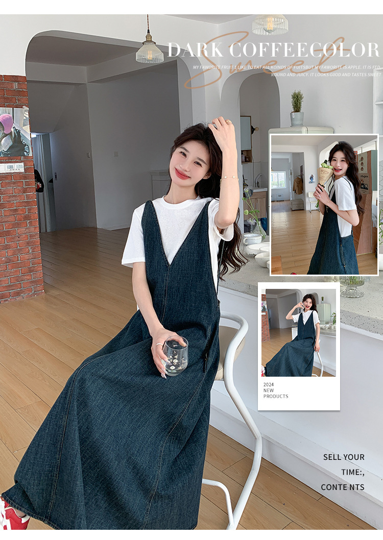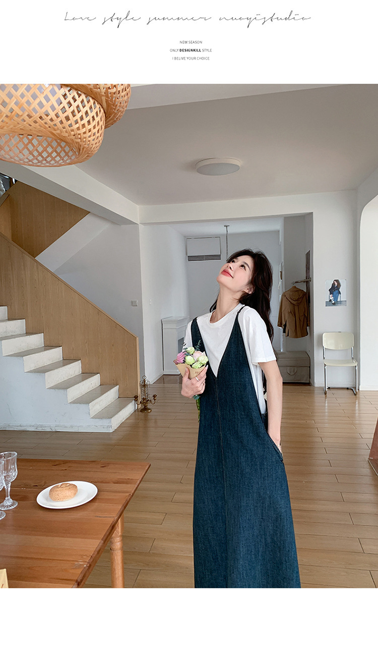 獨家訂製│韓系甜姐兒V字牛仔吊帶裙-2版型(05H6218)