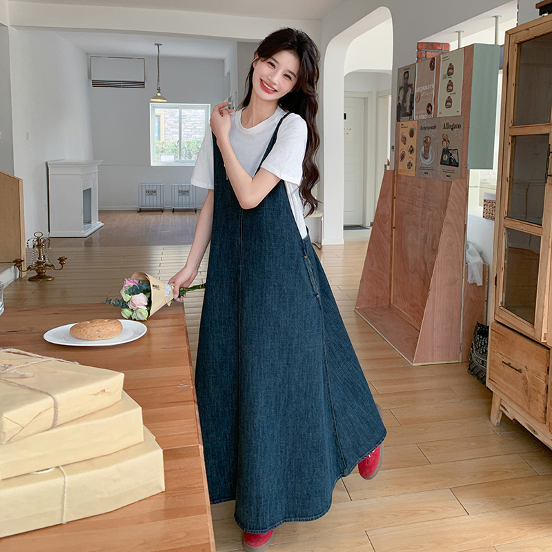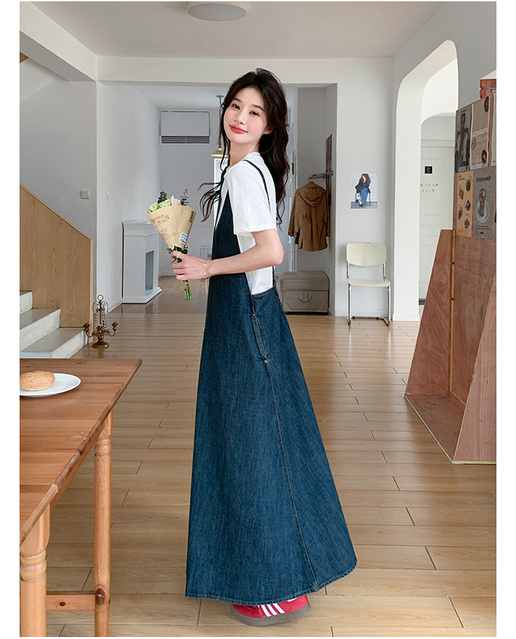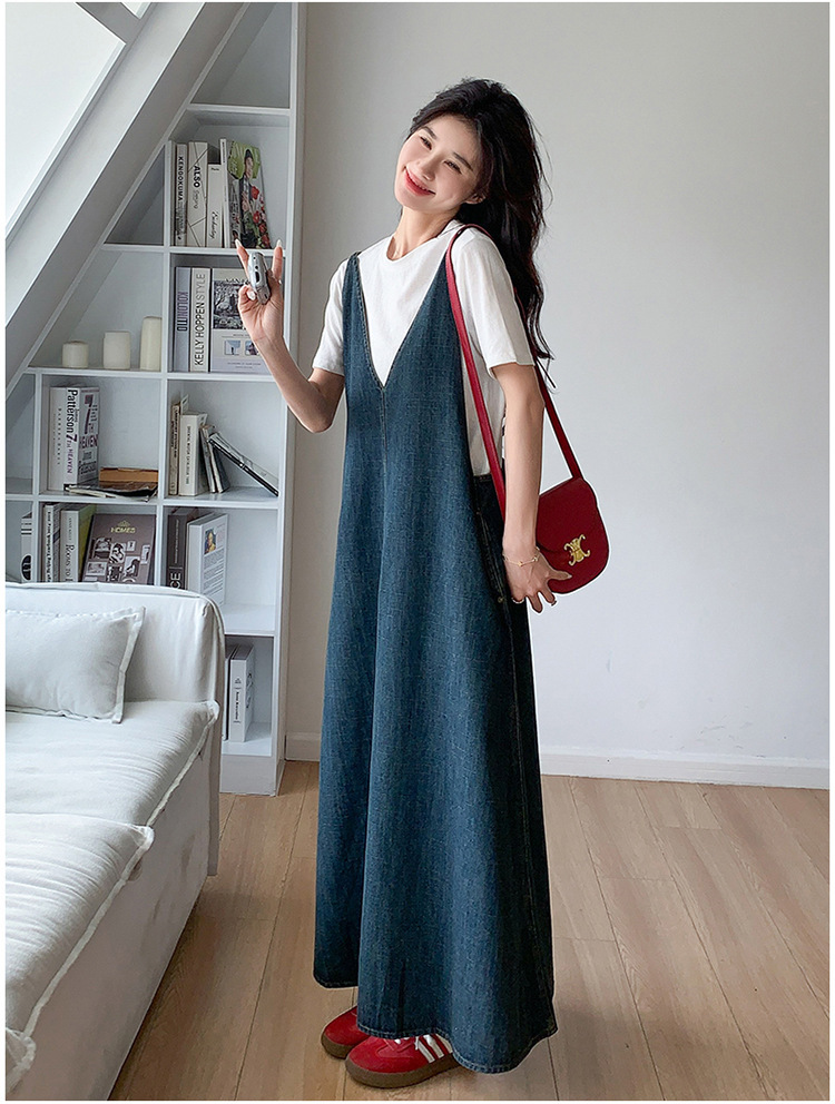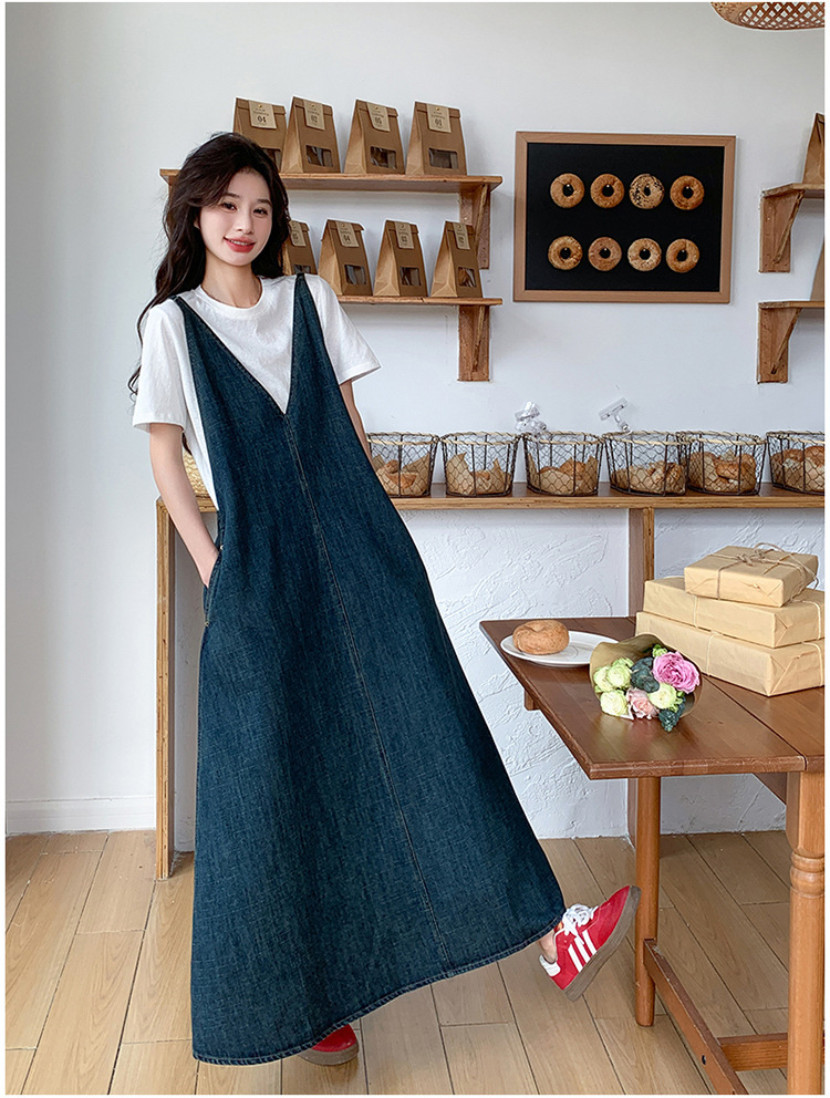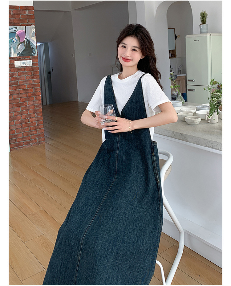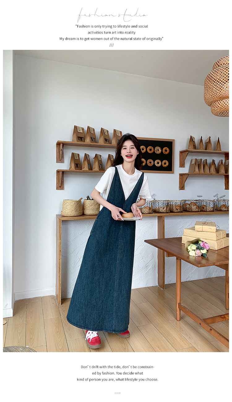 獨家訂製│韓系甜姐兒V字牛仔吊帶裙-2版型(05H6218)