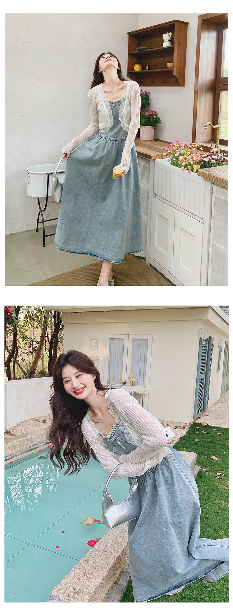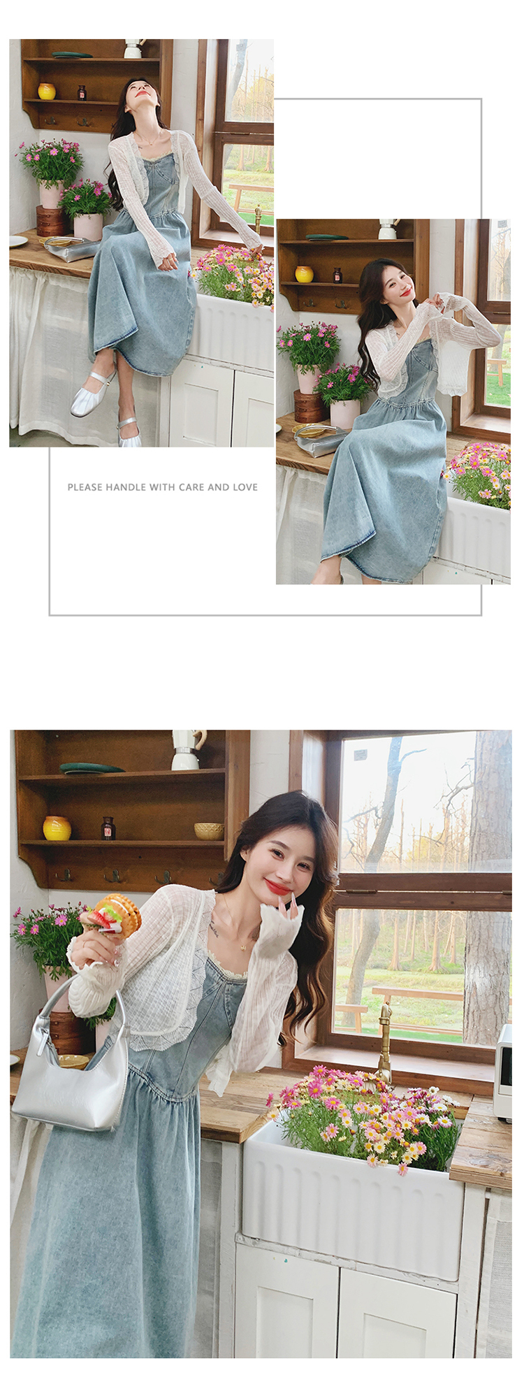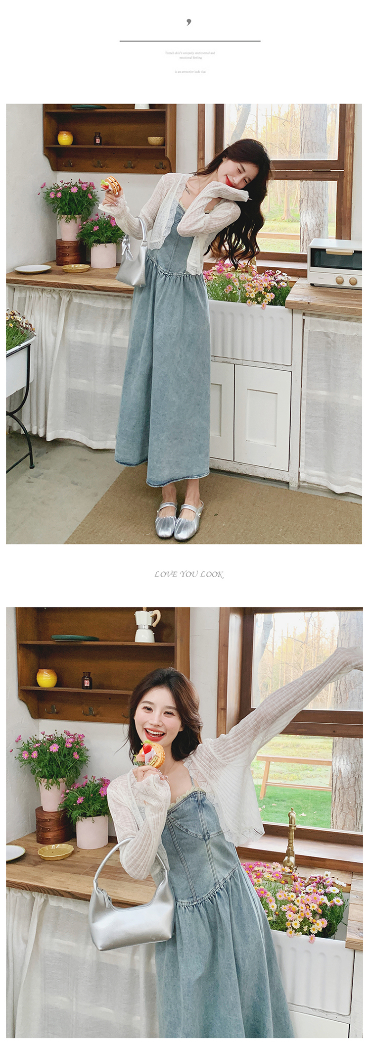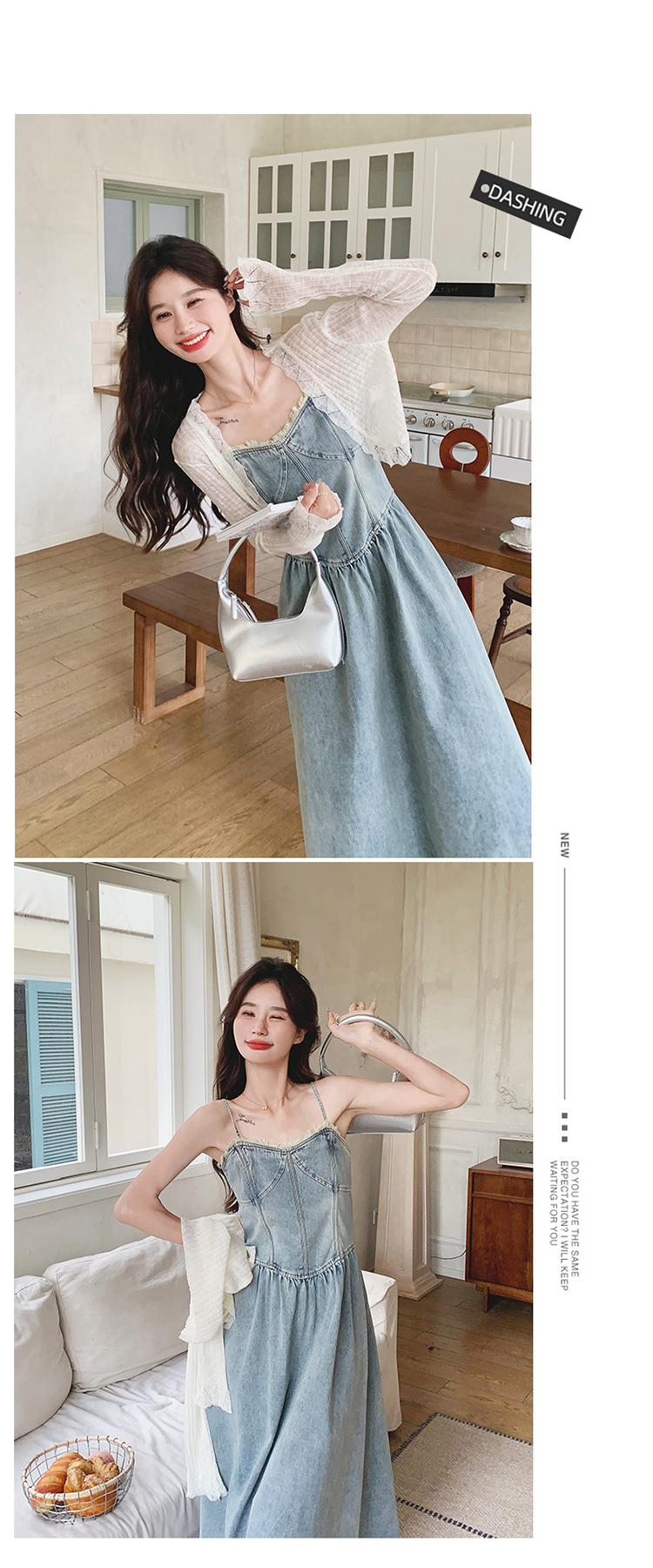 🔺面料:牛仔布+蕾絲+棉