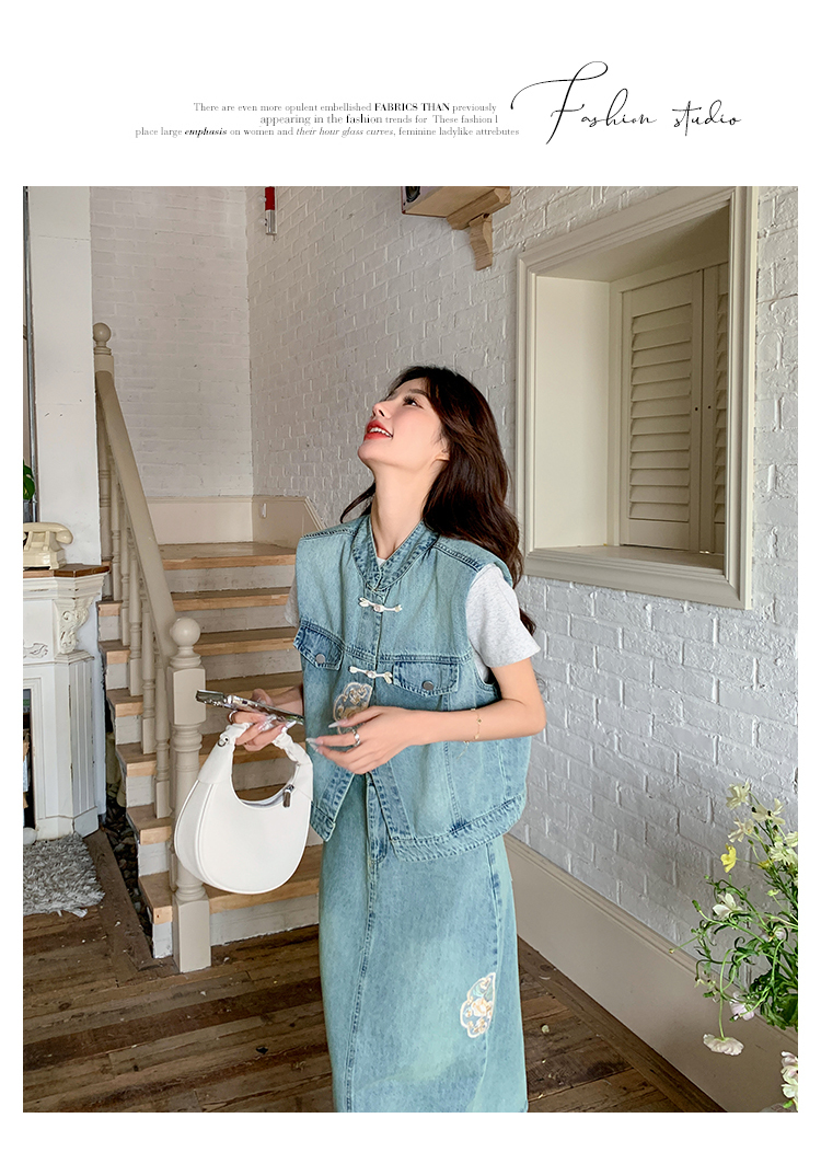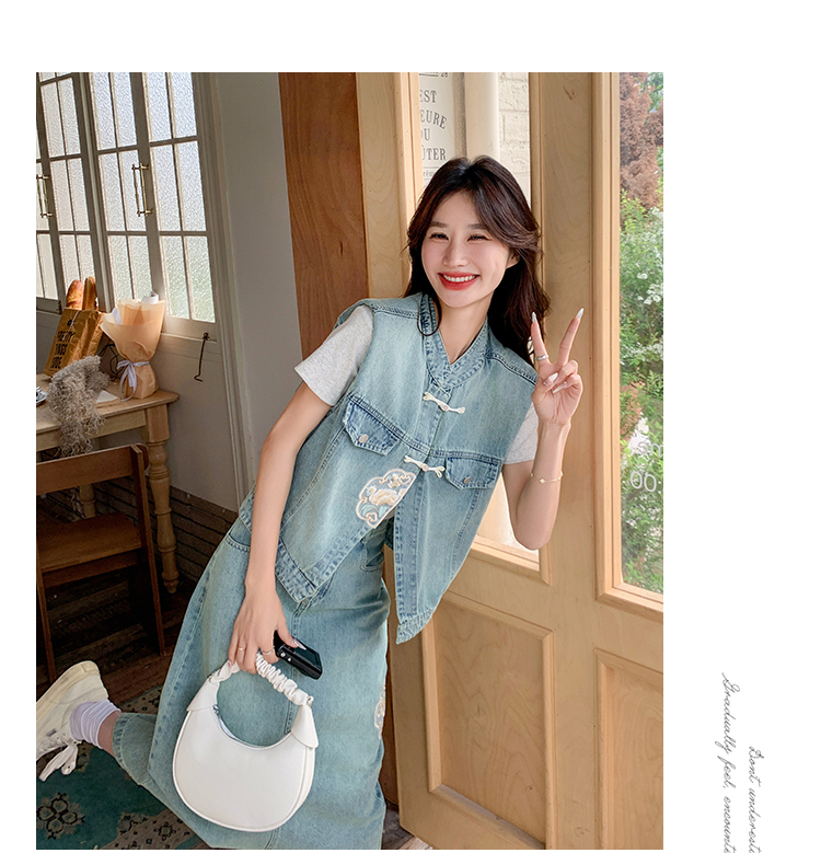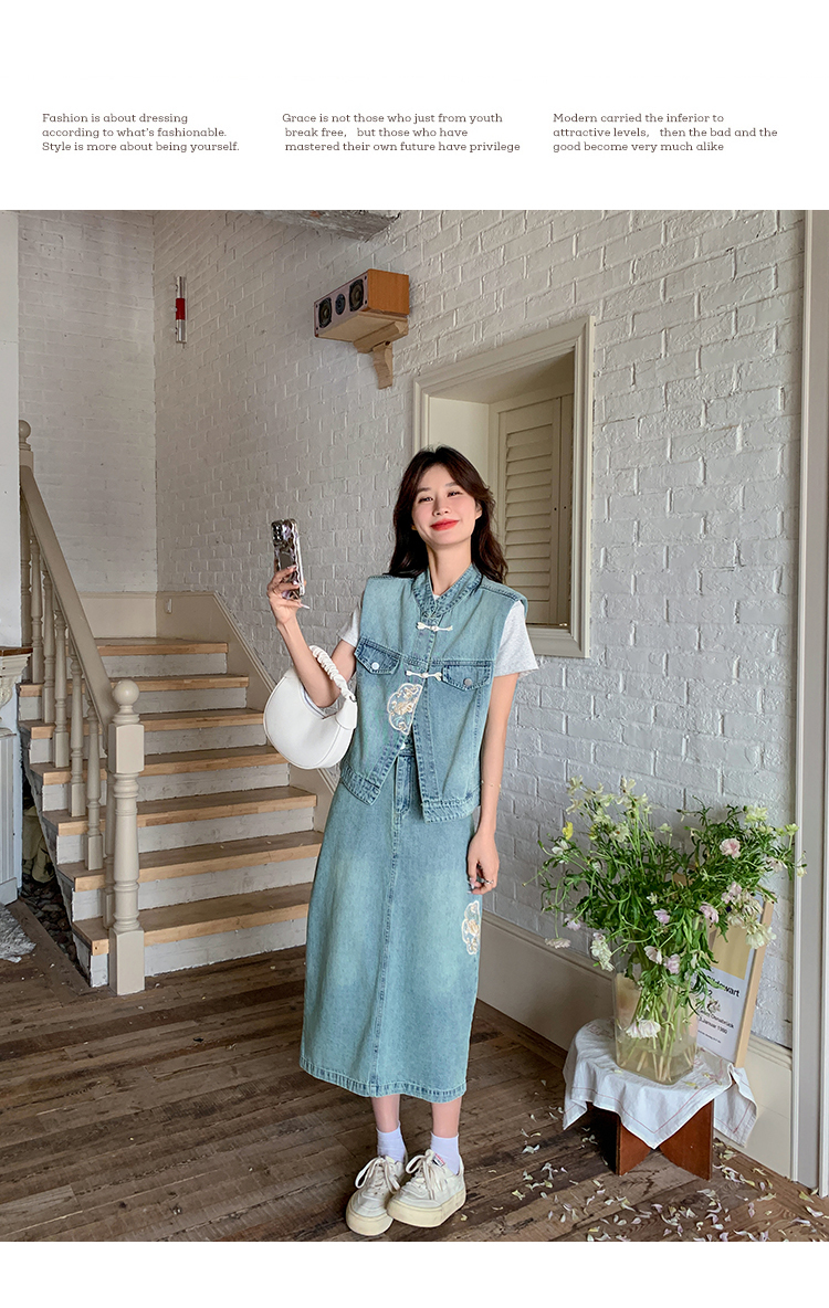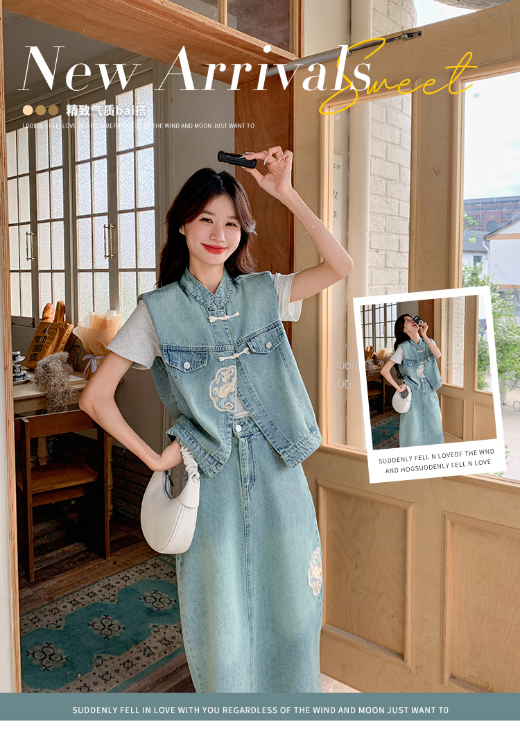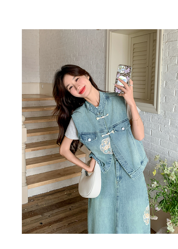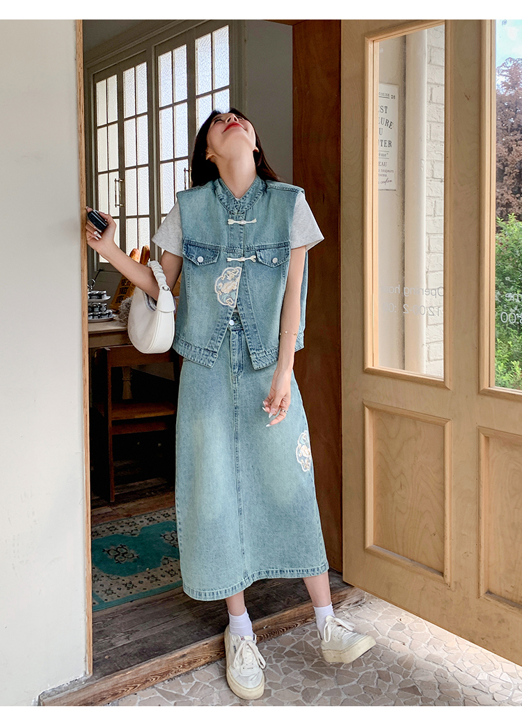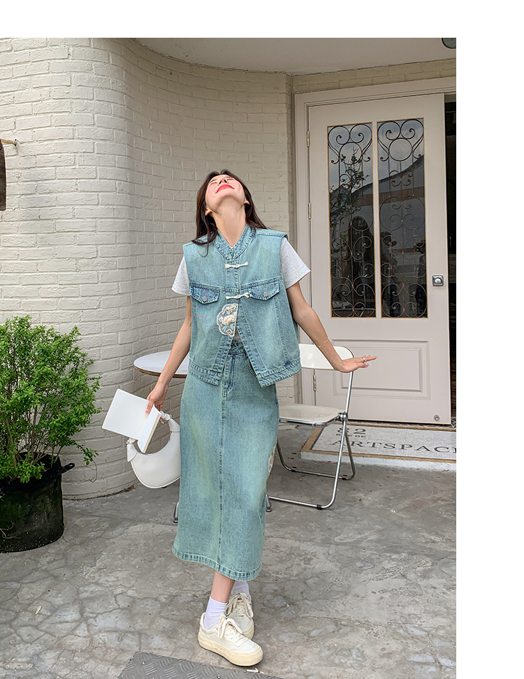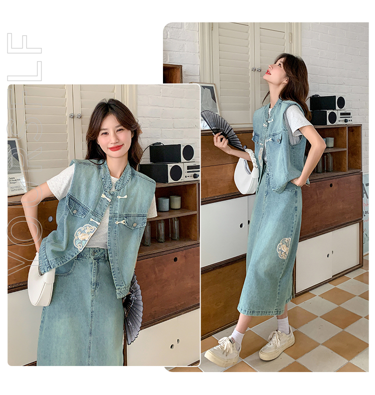 獨家訂製│韓系甜姐兒重工盤扣刺繡背心+A字裙兩件式套裝組(05H6242)